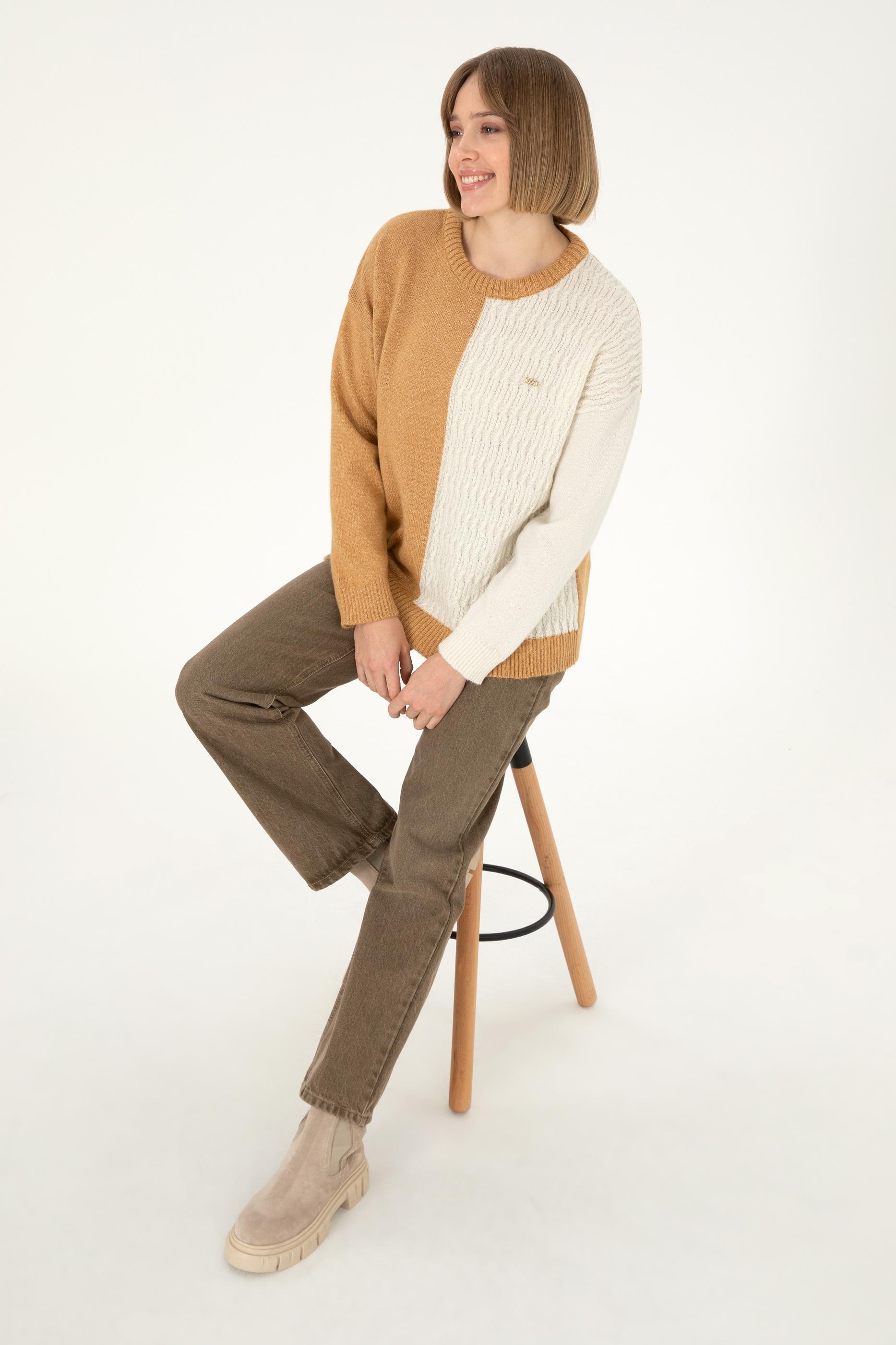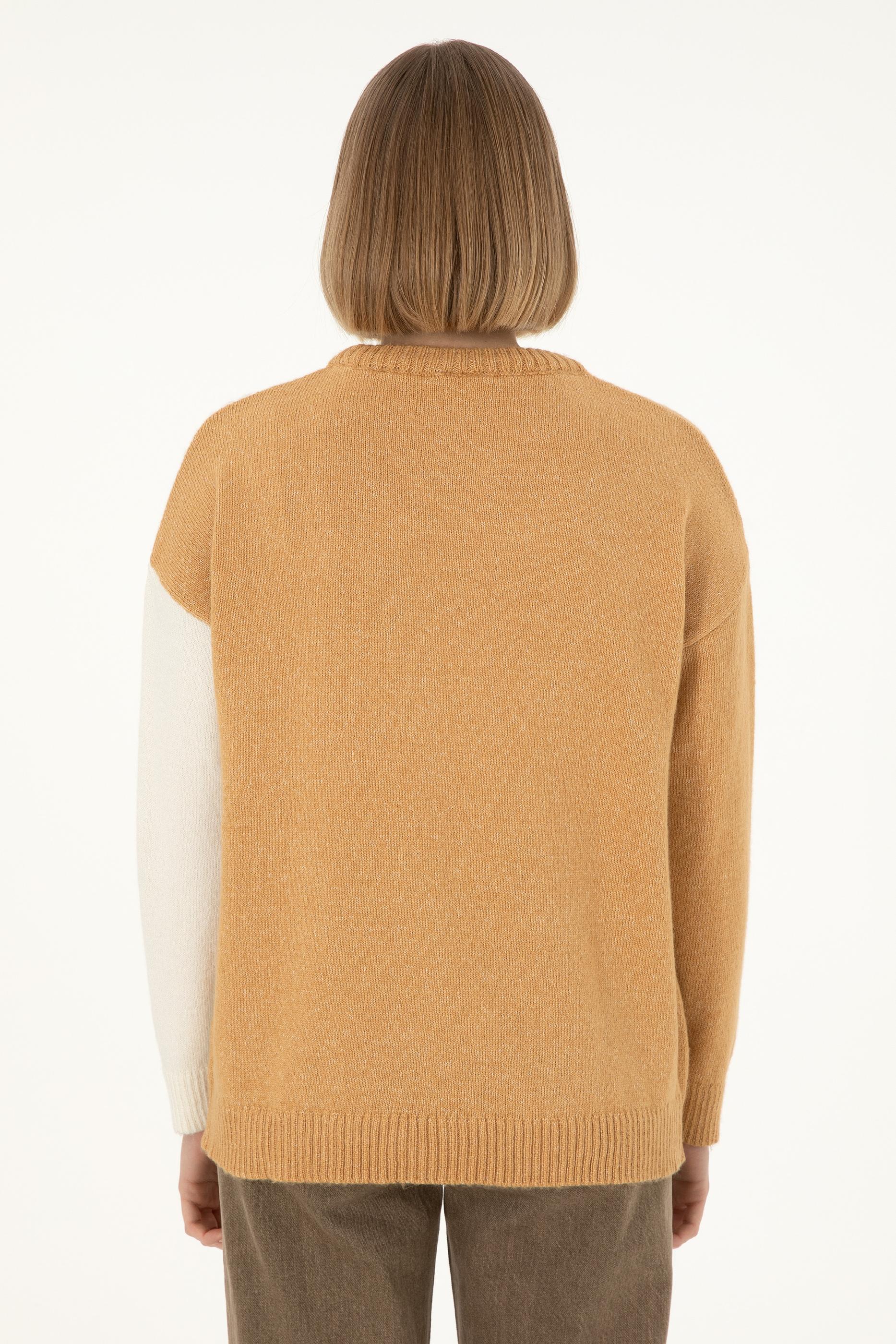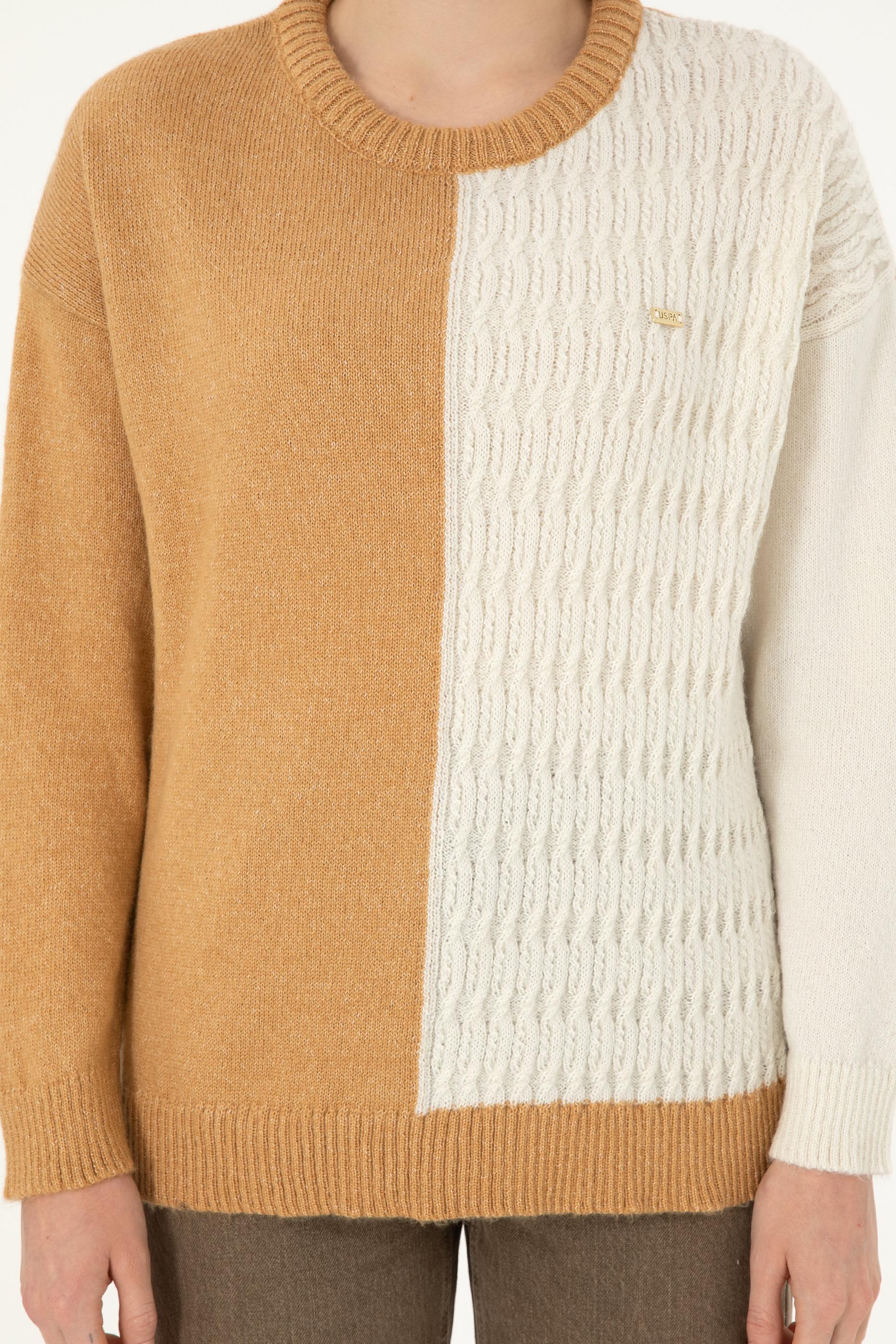 Kadın Camel Melanj Bisiklet Yaka Kazak
