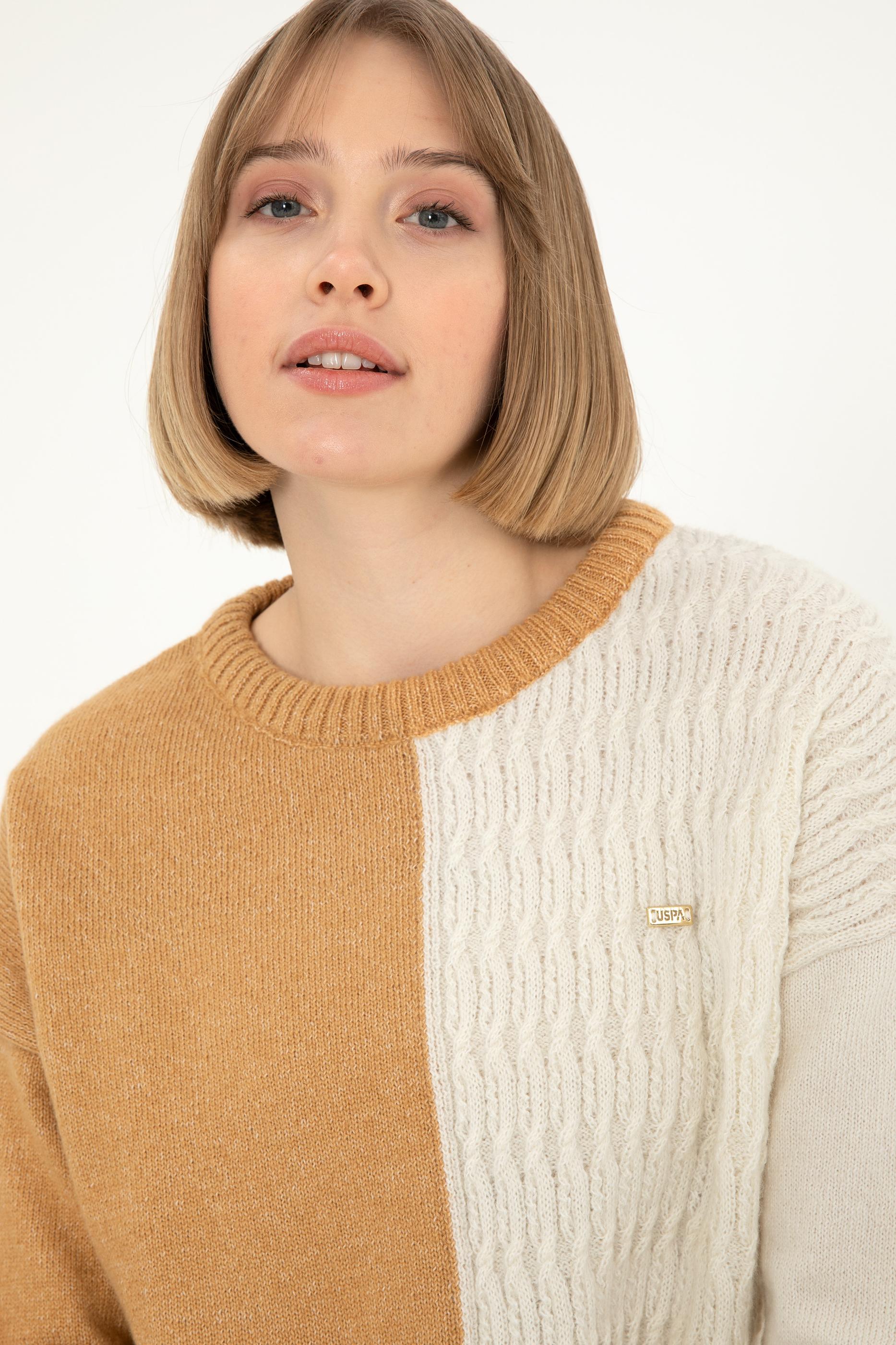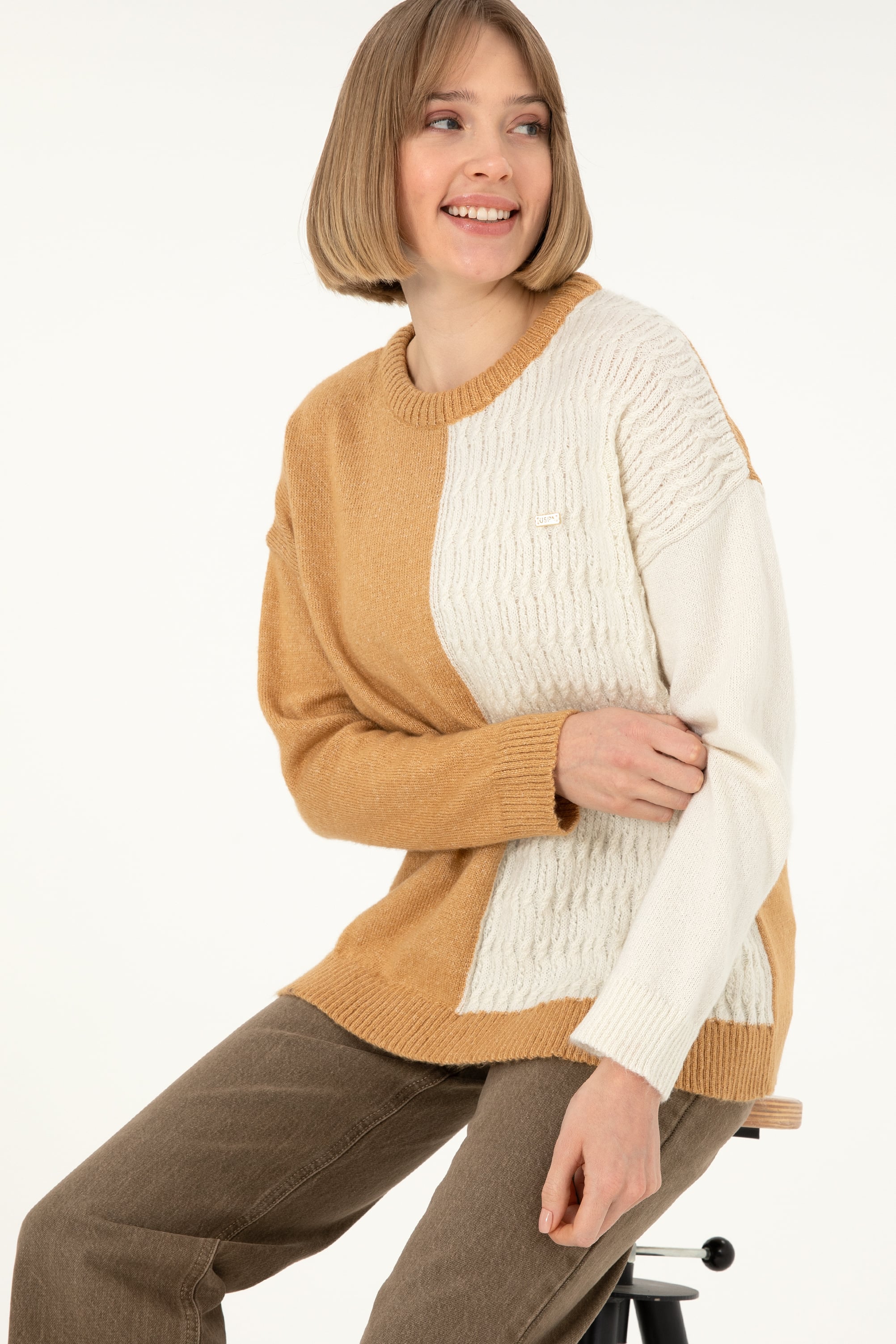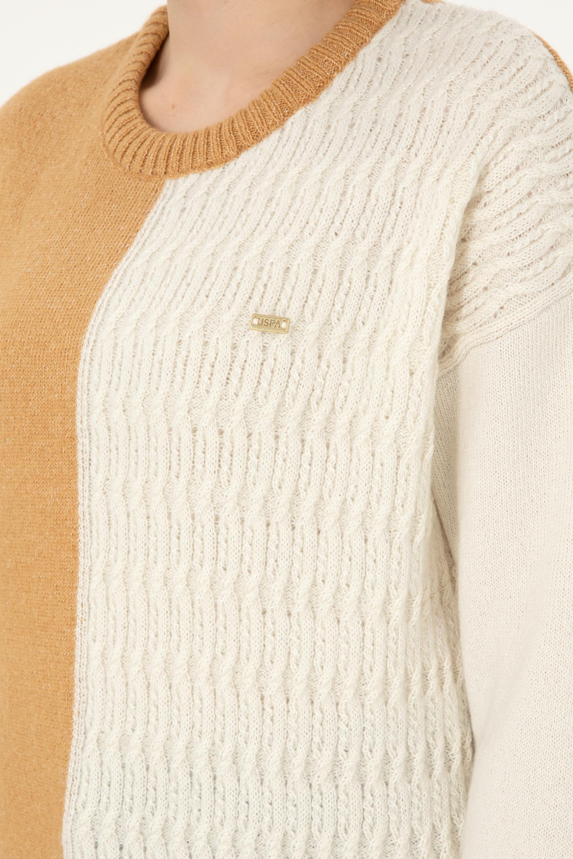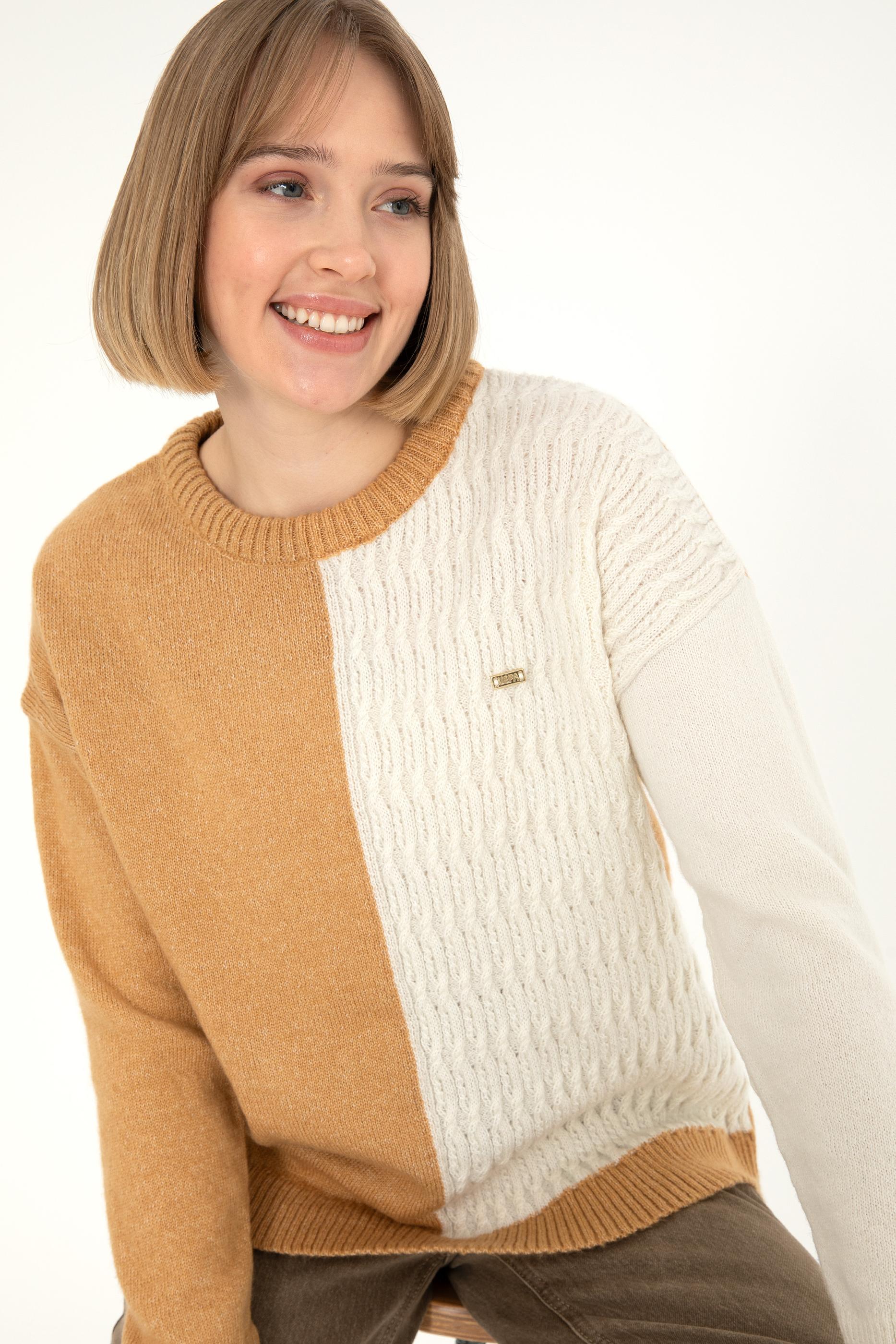 Kadın Camel Melanj Bisiklet Yaka Kazak