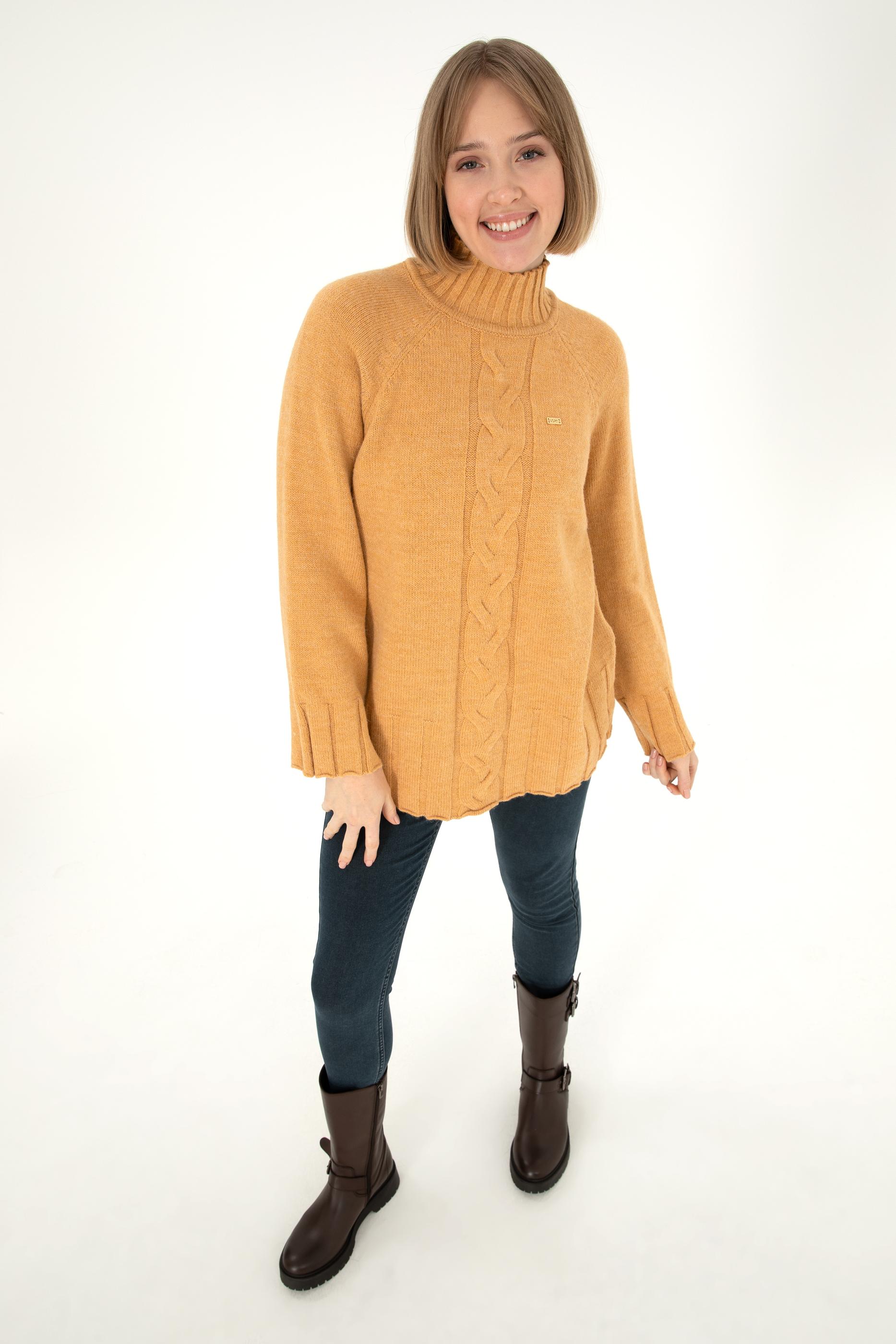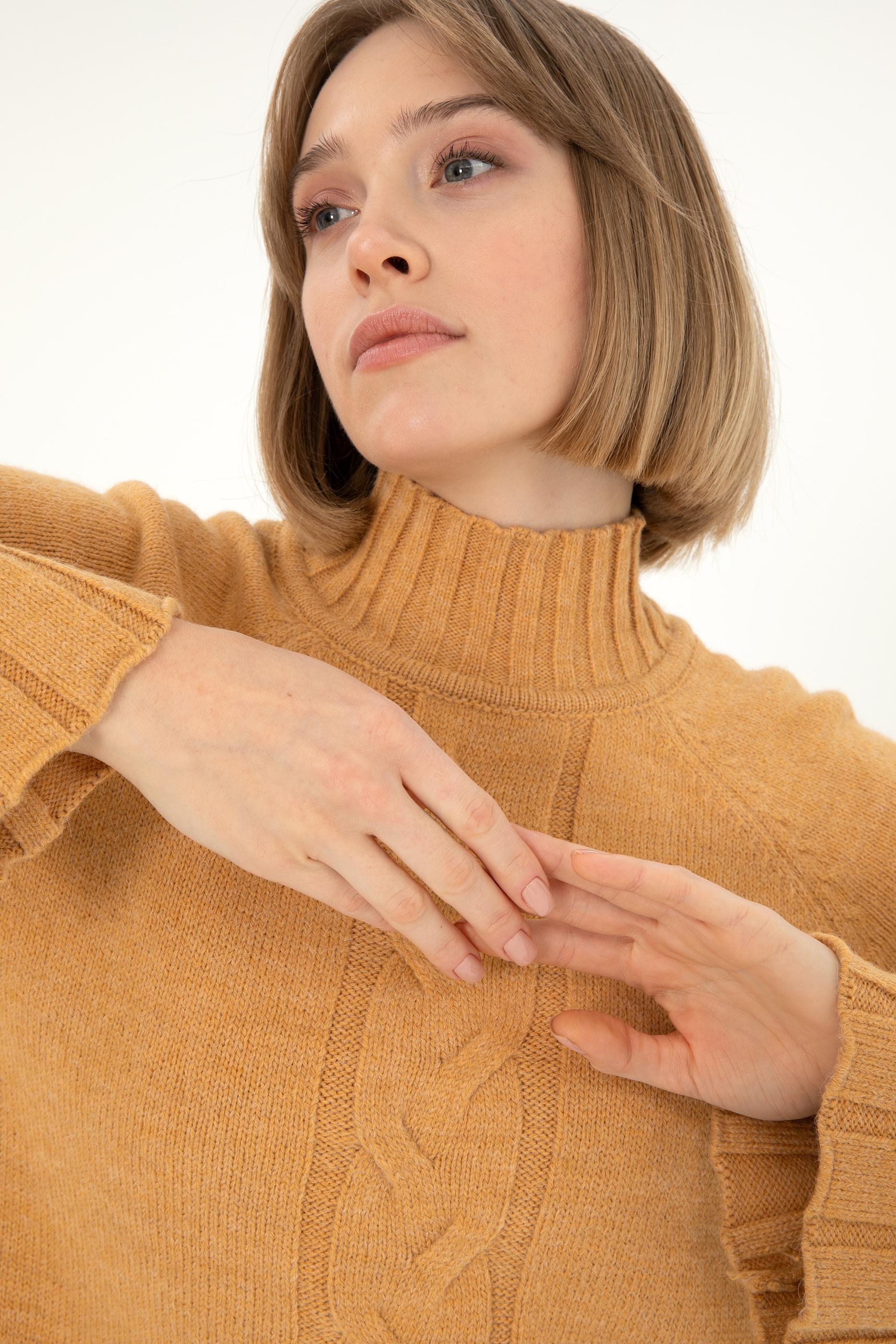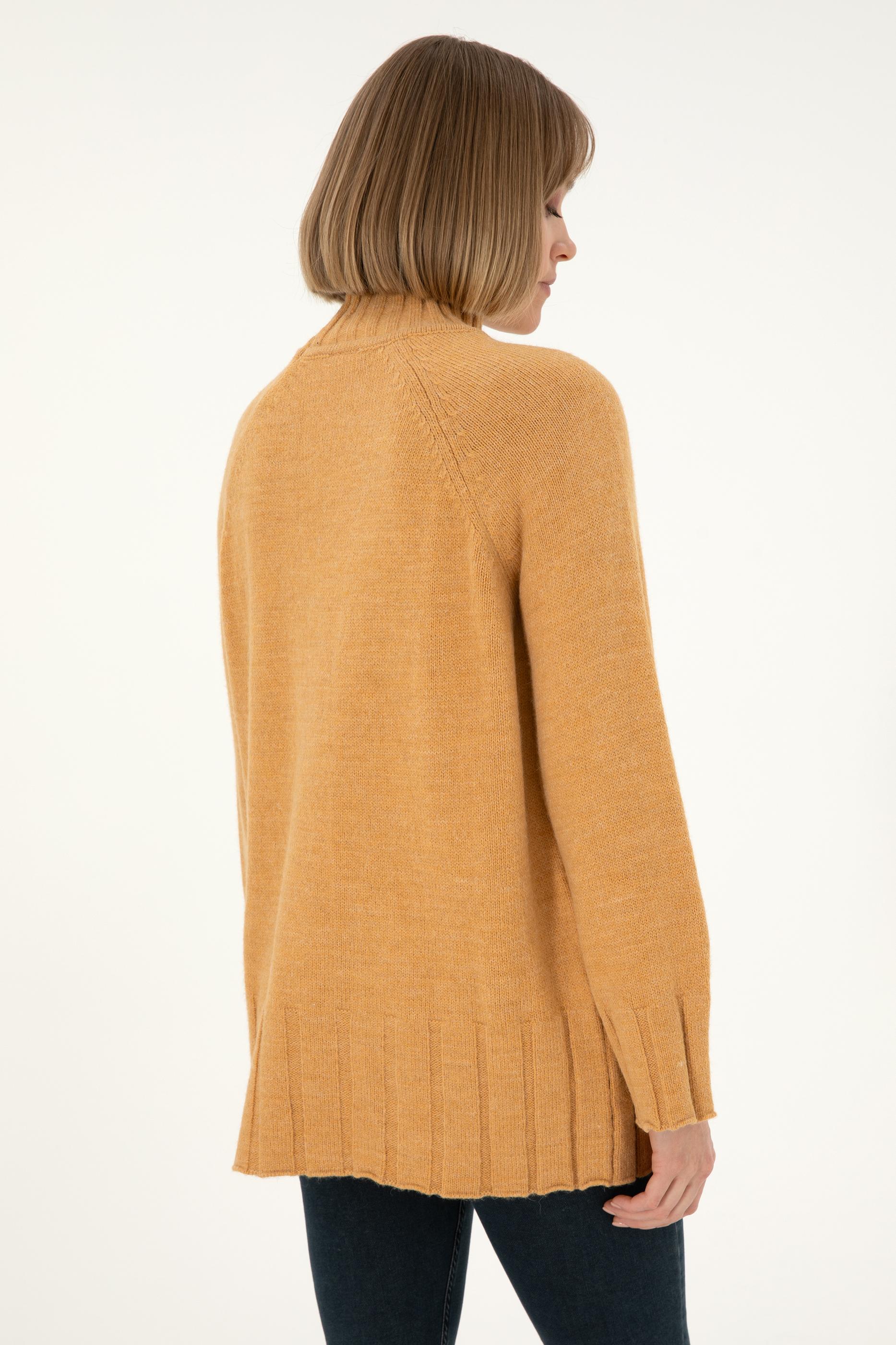 Kadın Camel Melanj Balıkçı Yaka Kazak