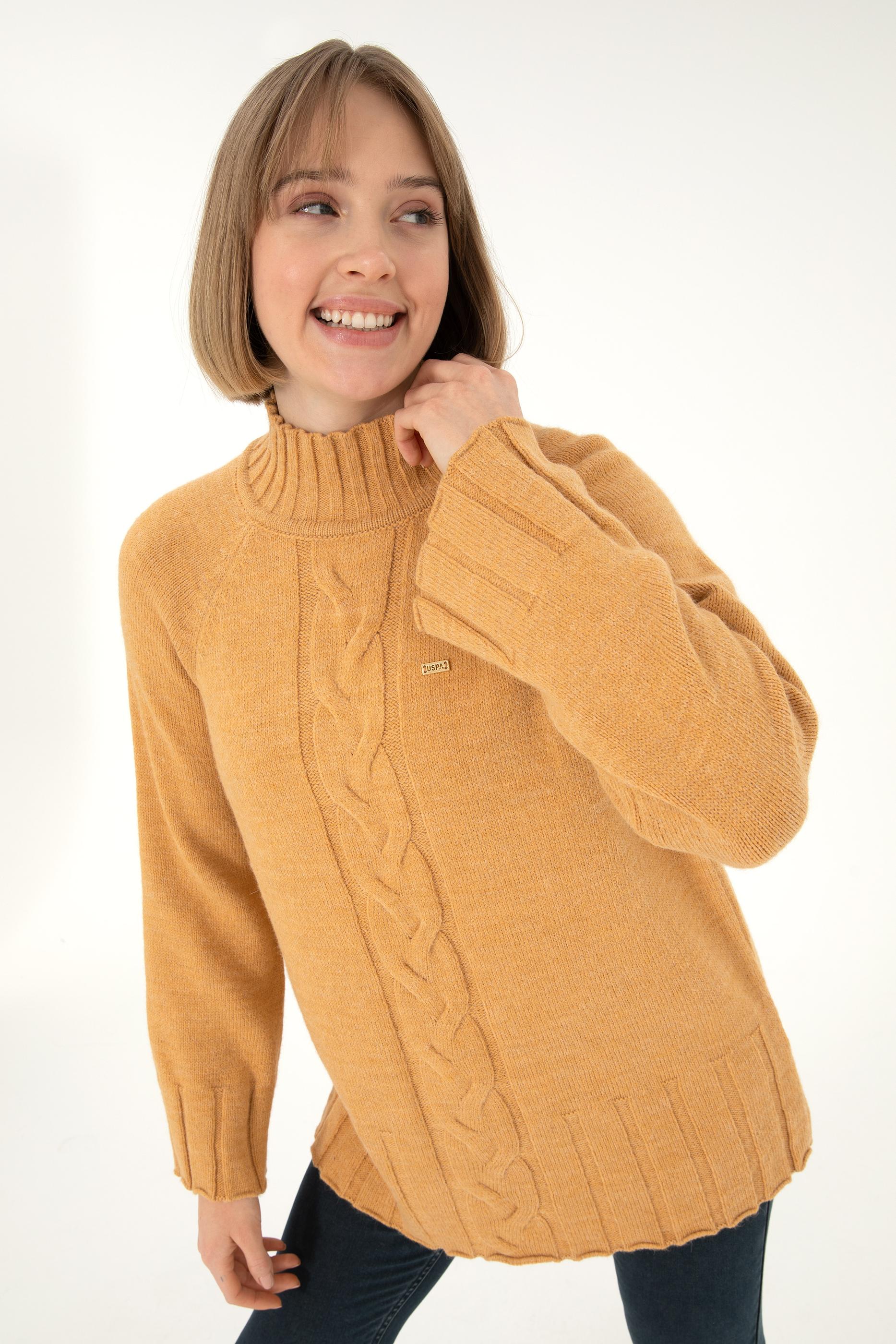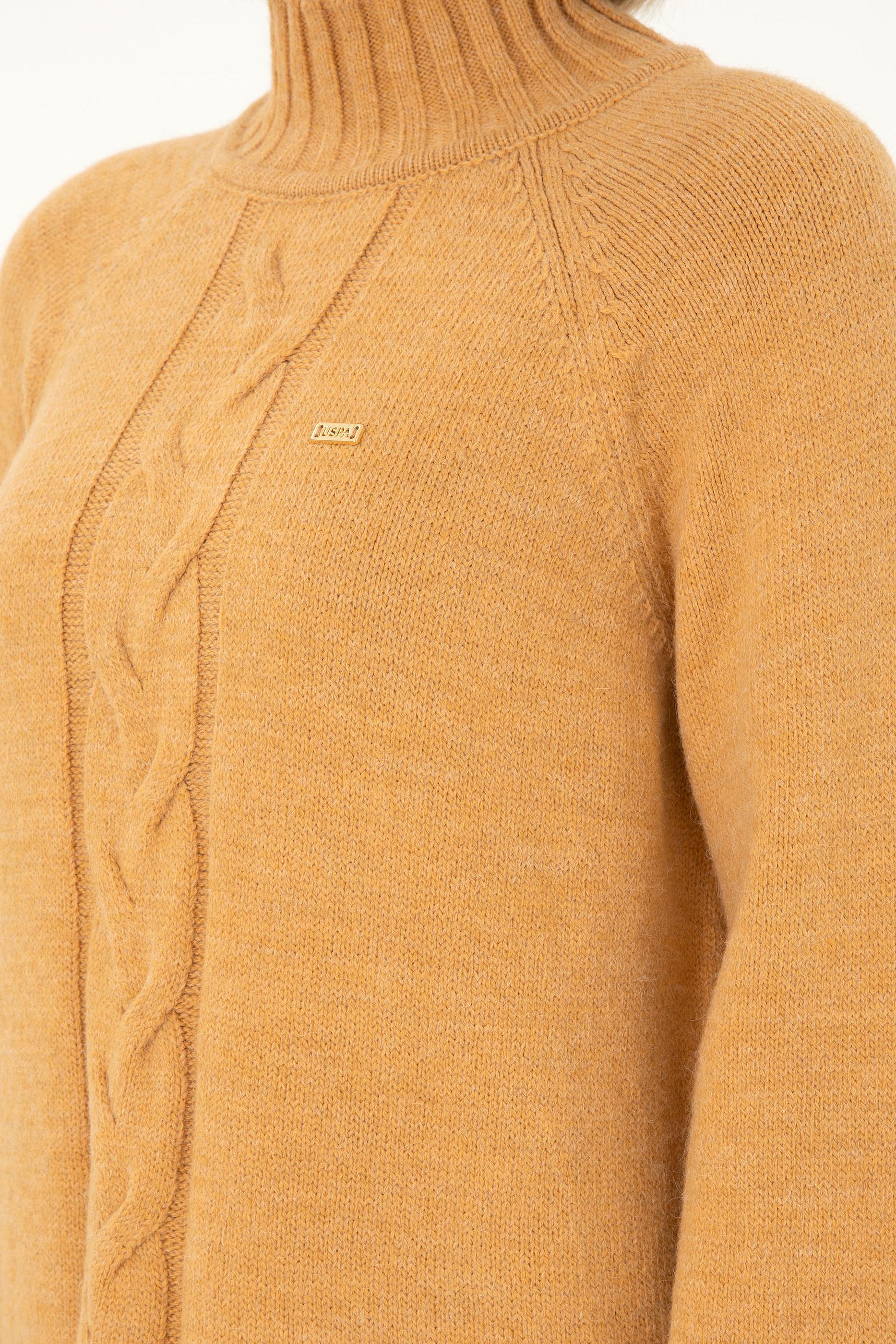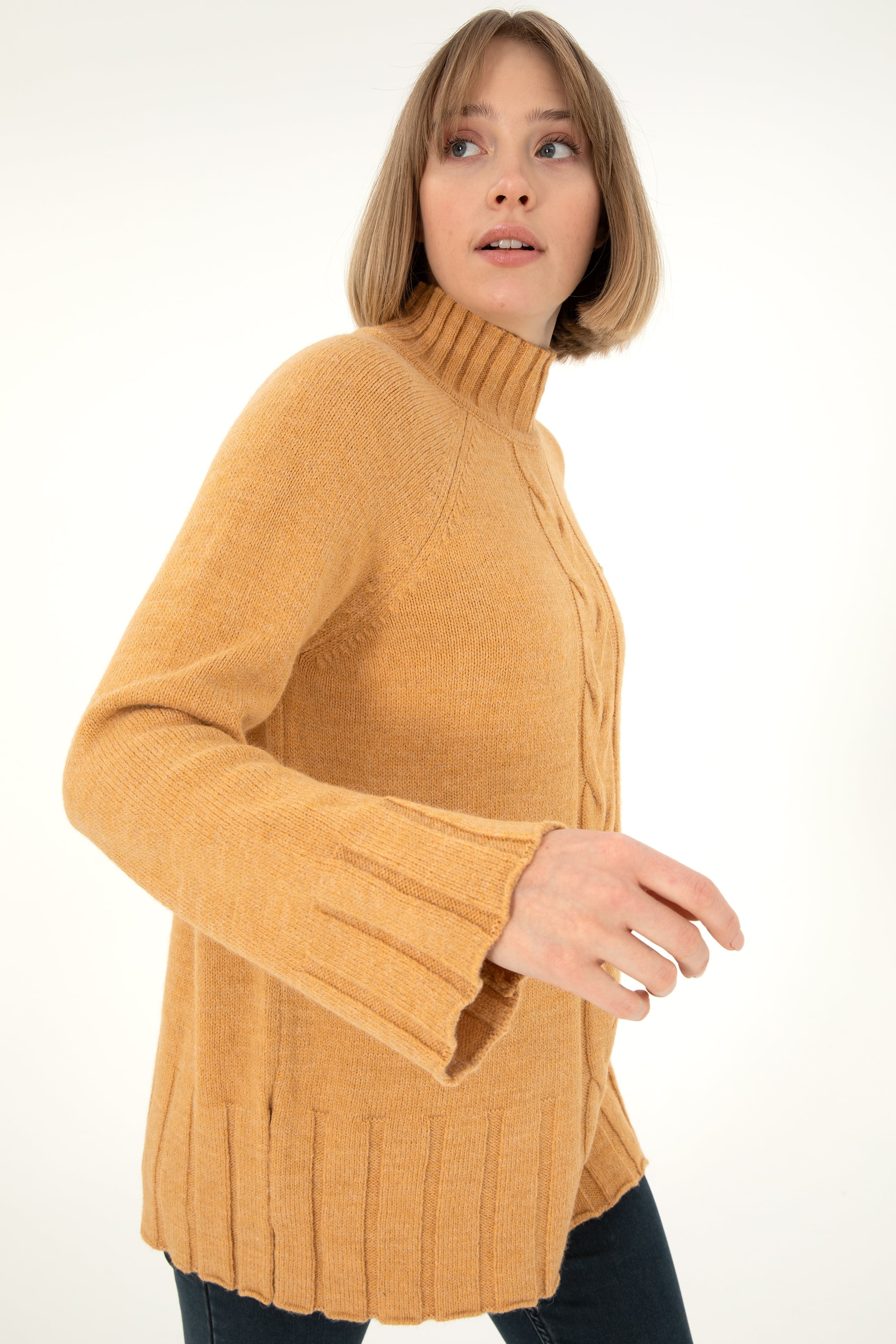 Kadın Camel Melanj Balıkçı Yaka Kazak