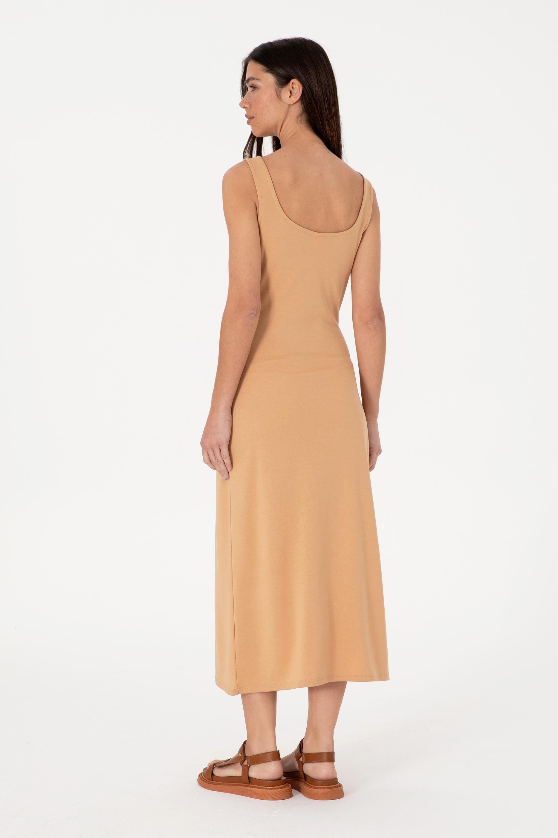 Kadın Camel Kolsuz Bisiklet Yaka Midi Boy Örme Elbise