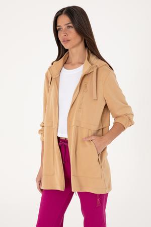 - Kadın Camel Fermuarlı Kapüşonlu Sweatshırt