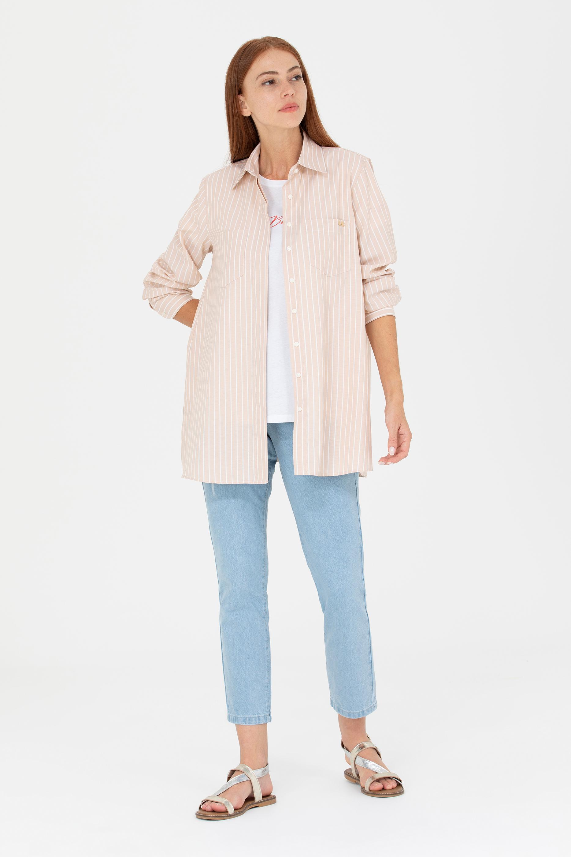 Rahat ve ferah bir kıyafet isteyen kadınlar için özellikle yaz günlerinde önemli bir yeri olan tunikler, gün boyu konforlu bir kullanım sunar. Sadece online mağazada satılan bu tunik, comfort kalıbıyla size hareket özgürlüğü sunar. Bayan tunik modelleri içinde cepli ve çizgili tasarımıyla öne çıkan yazlık tunik %61 pamuk ve %39 poliester karışımından üretilmiştir. Modern ve şık bir görünüme kavuşmak isteyen kadınlar, gardıroplarında tunik modellerine mutlaka yer vermeli.