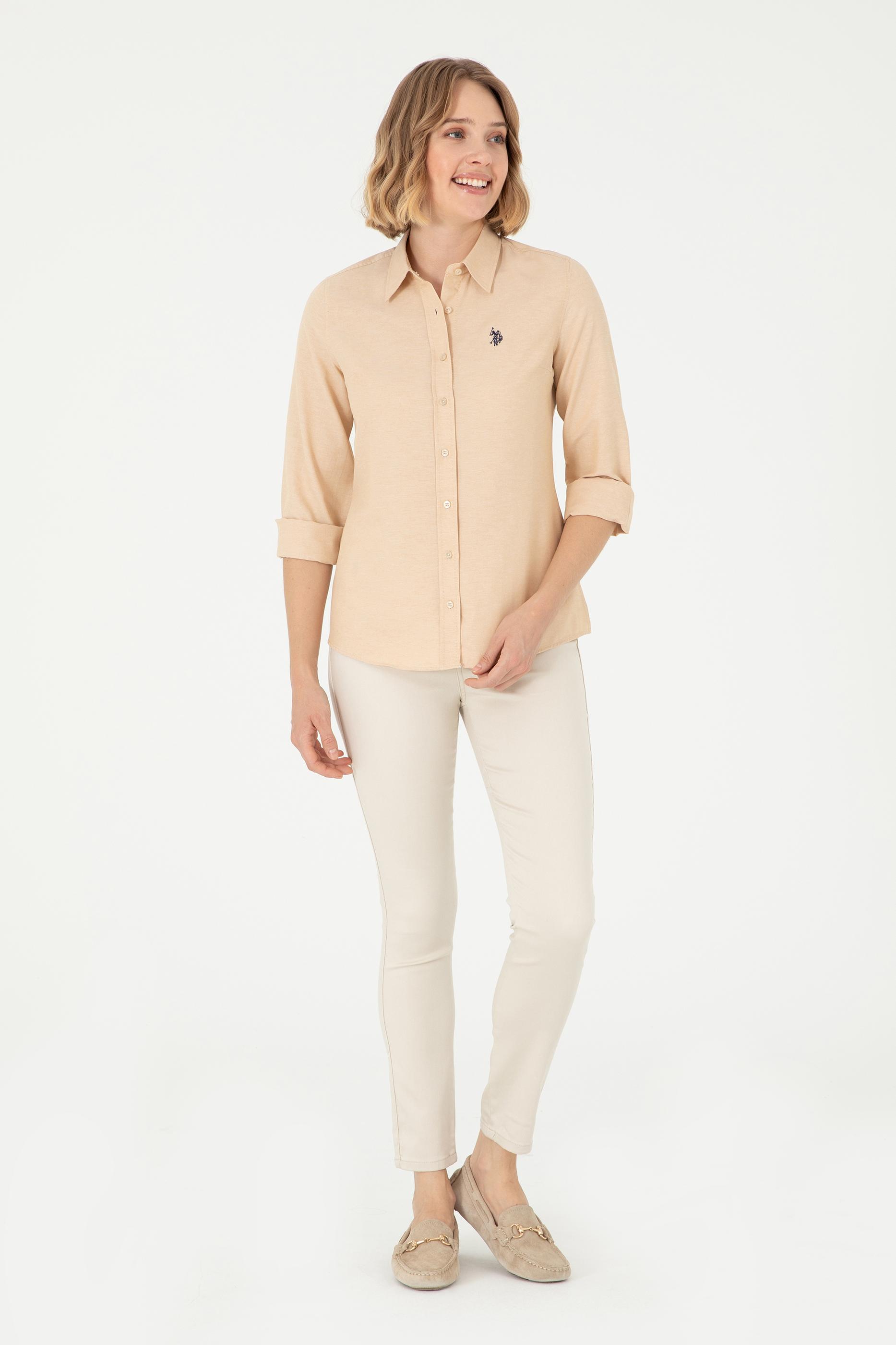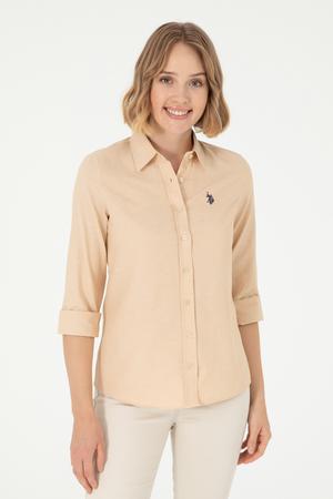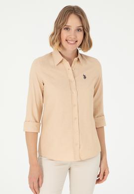 - Kadın Camel Uzun Kollu Basic Gömlek
