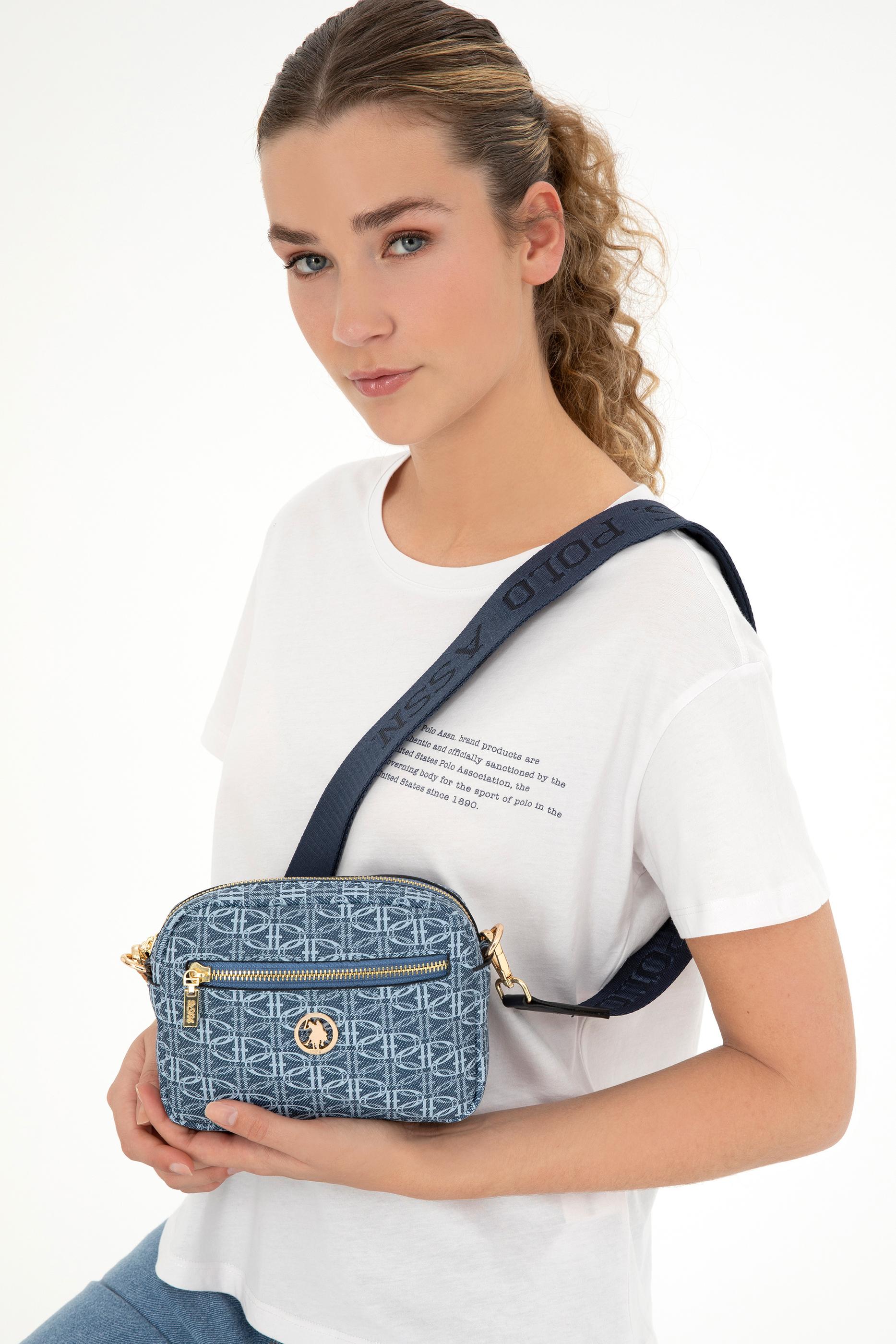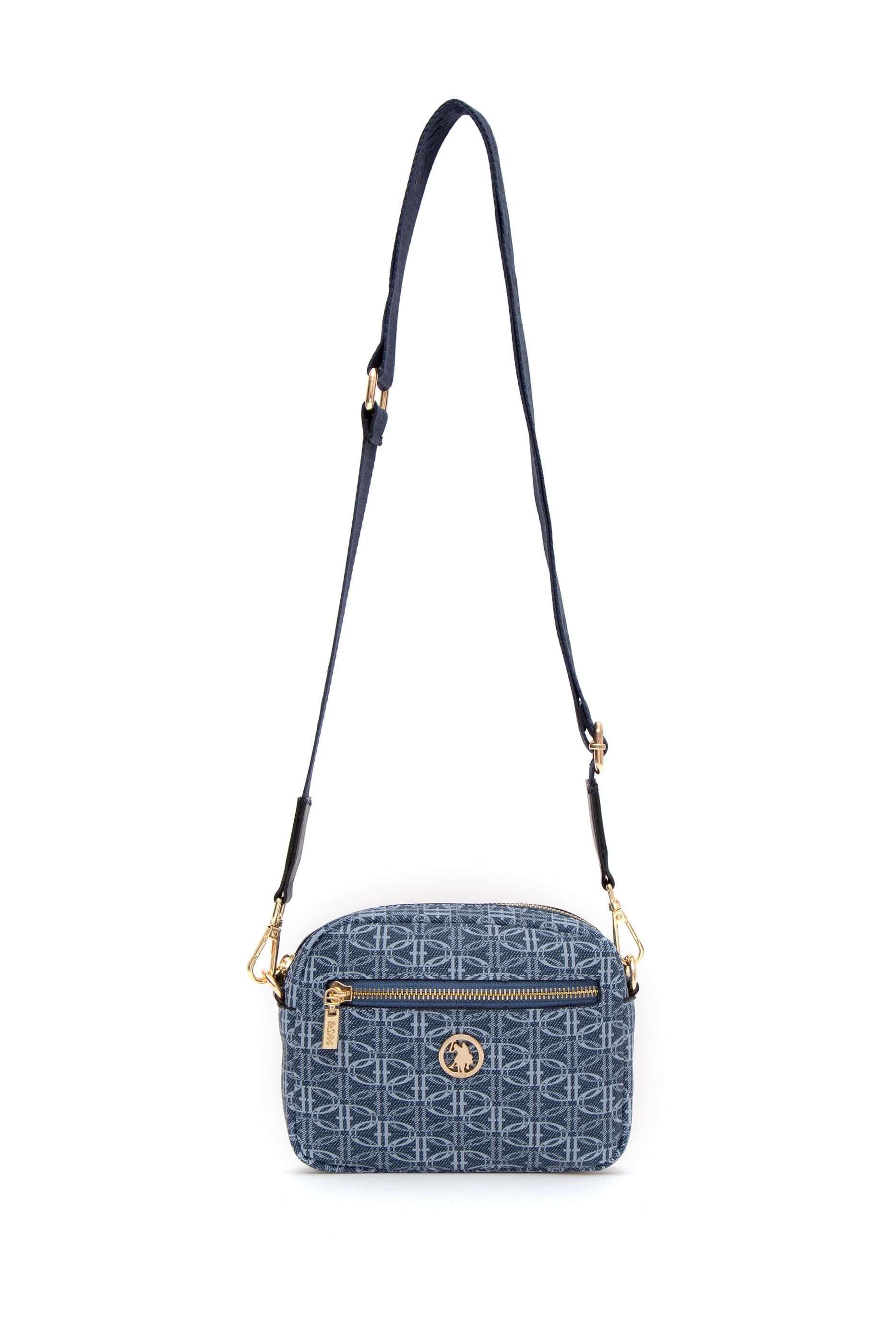 U.S. Polo Assn. denim çapraz çanta, kutu formdaki yapısıyla hem modern hem de fonksiyonel bir görünüm sunar. Mavi denim görünümlü zemin üzerine uygulanan monogram desen baskısı, yüzeye hareket katar. Altın renkli fermuar ve arma detayları tasarıma şıklık katarken, kalın dokulu omuz askısı çantaya sportif bir karakter kazandırır. Yapısı sert ve formunu koruyan bu model, küçük boyutuna rağmen işlevsel bölmeleriyle günlük kullanım için pratik bir alternatif sunar.