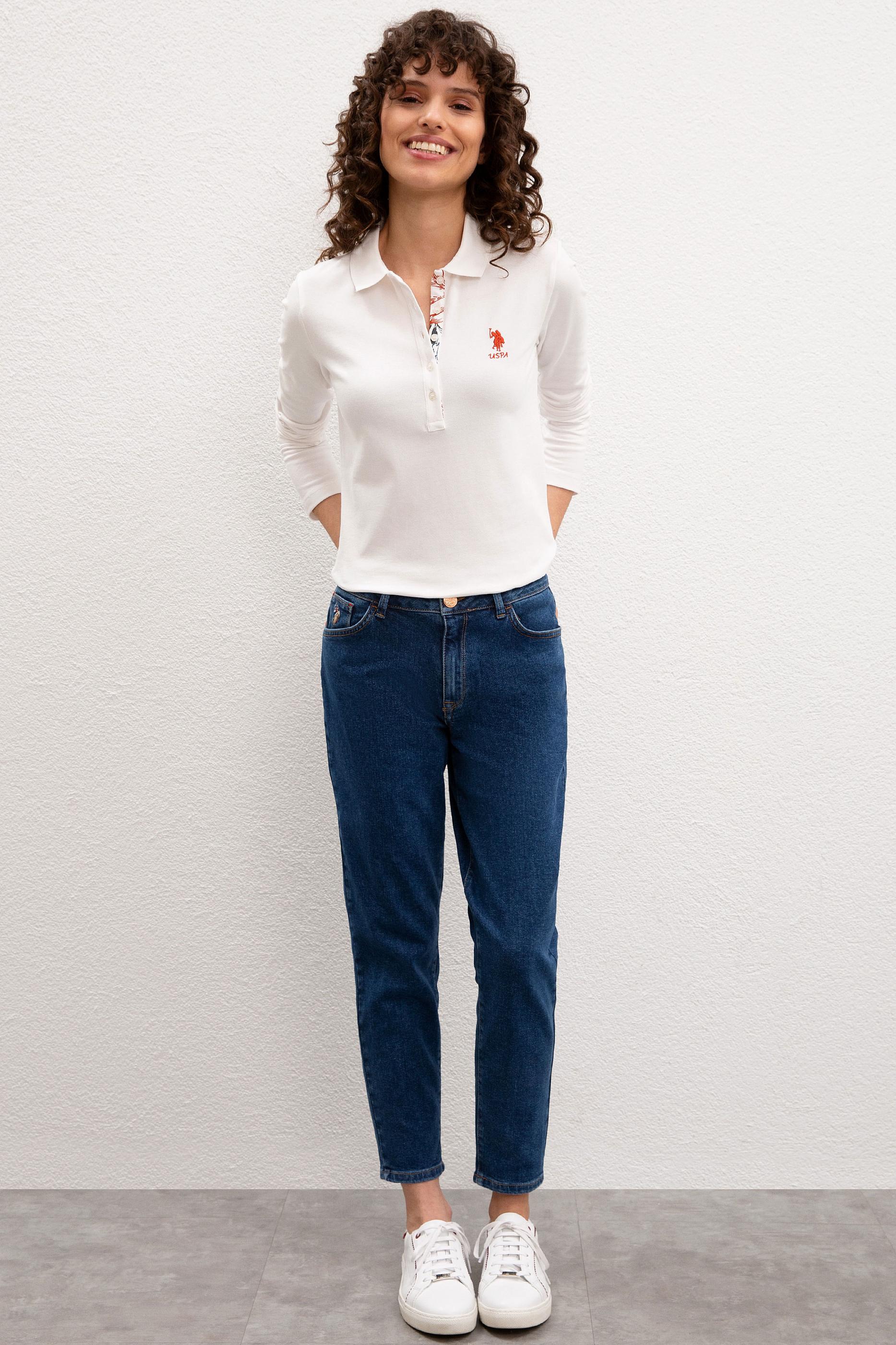 Kadın Ekru Basic Polo Yaka Sweatshirt