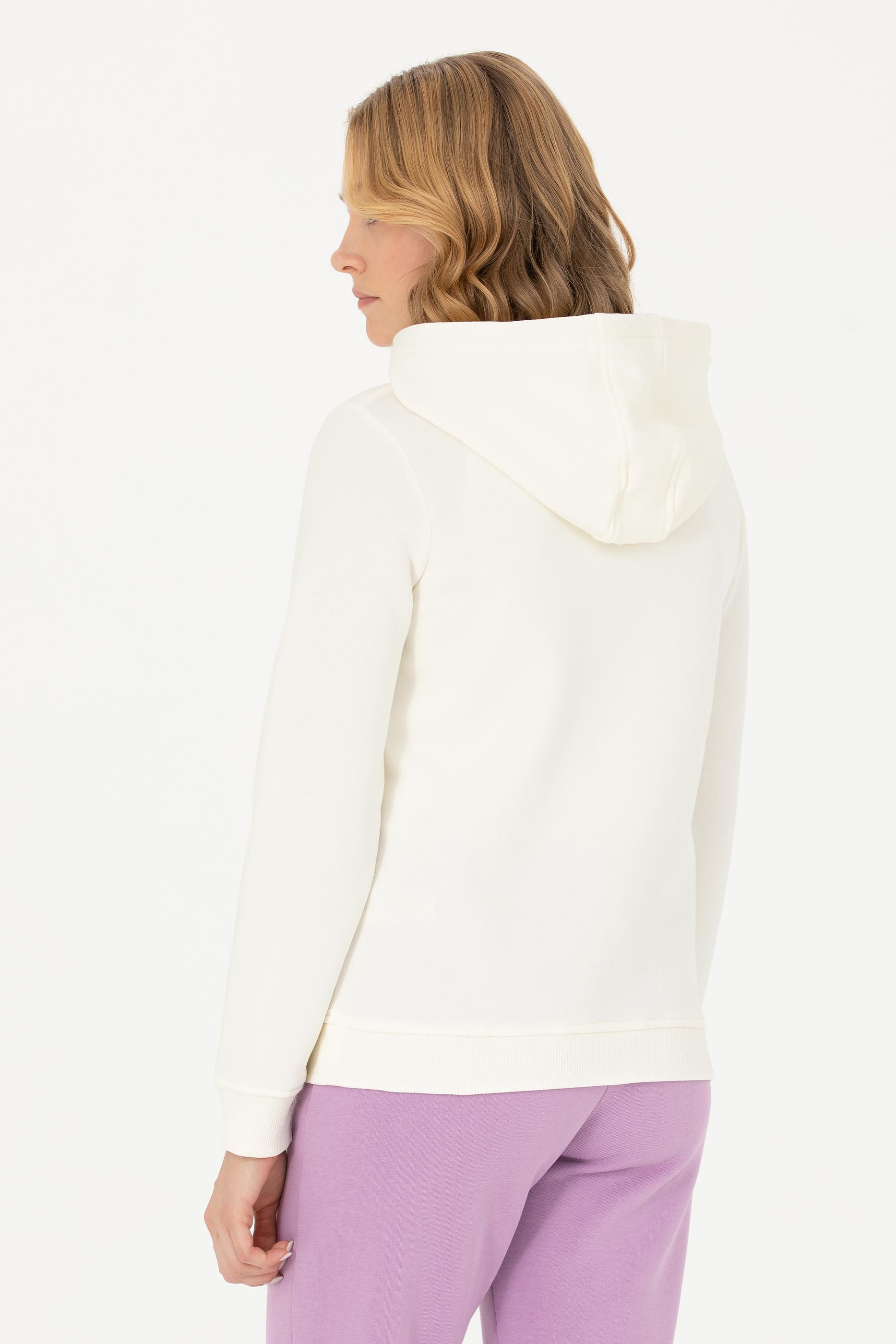 Kadın Ekru Kapüşonlu Basic Sweatshirt