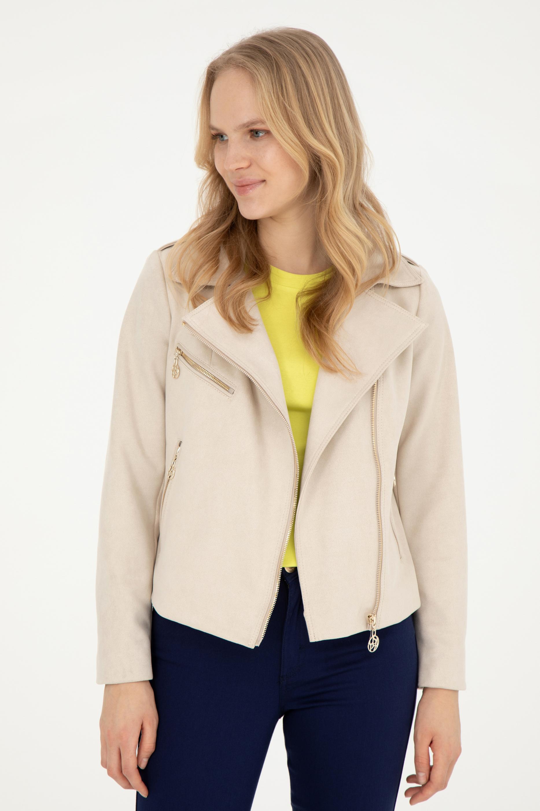 Kadın Ekru Deri Ceket - 50288623012