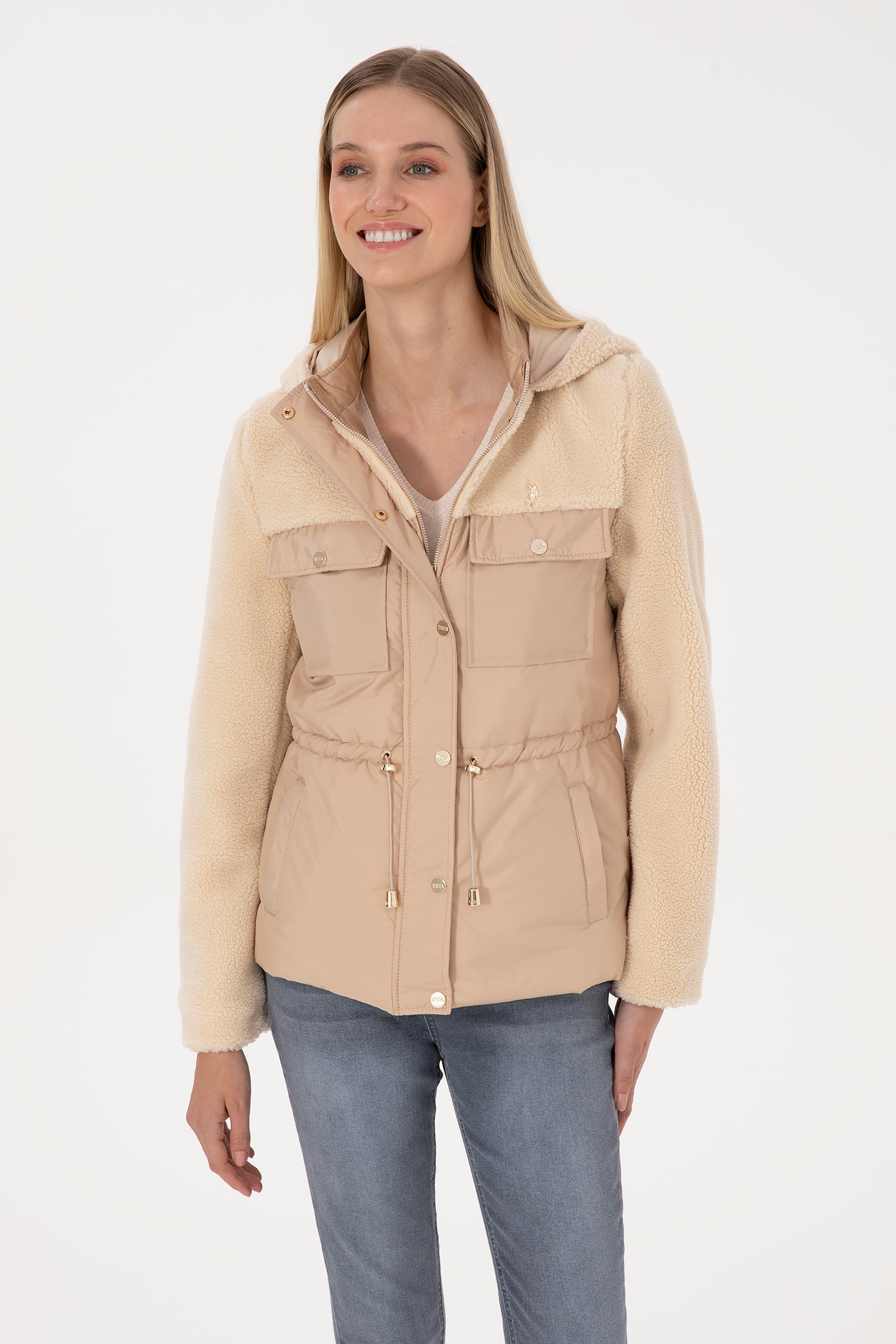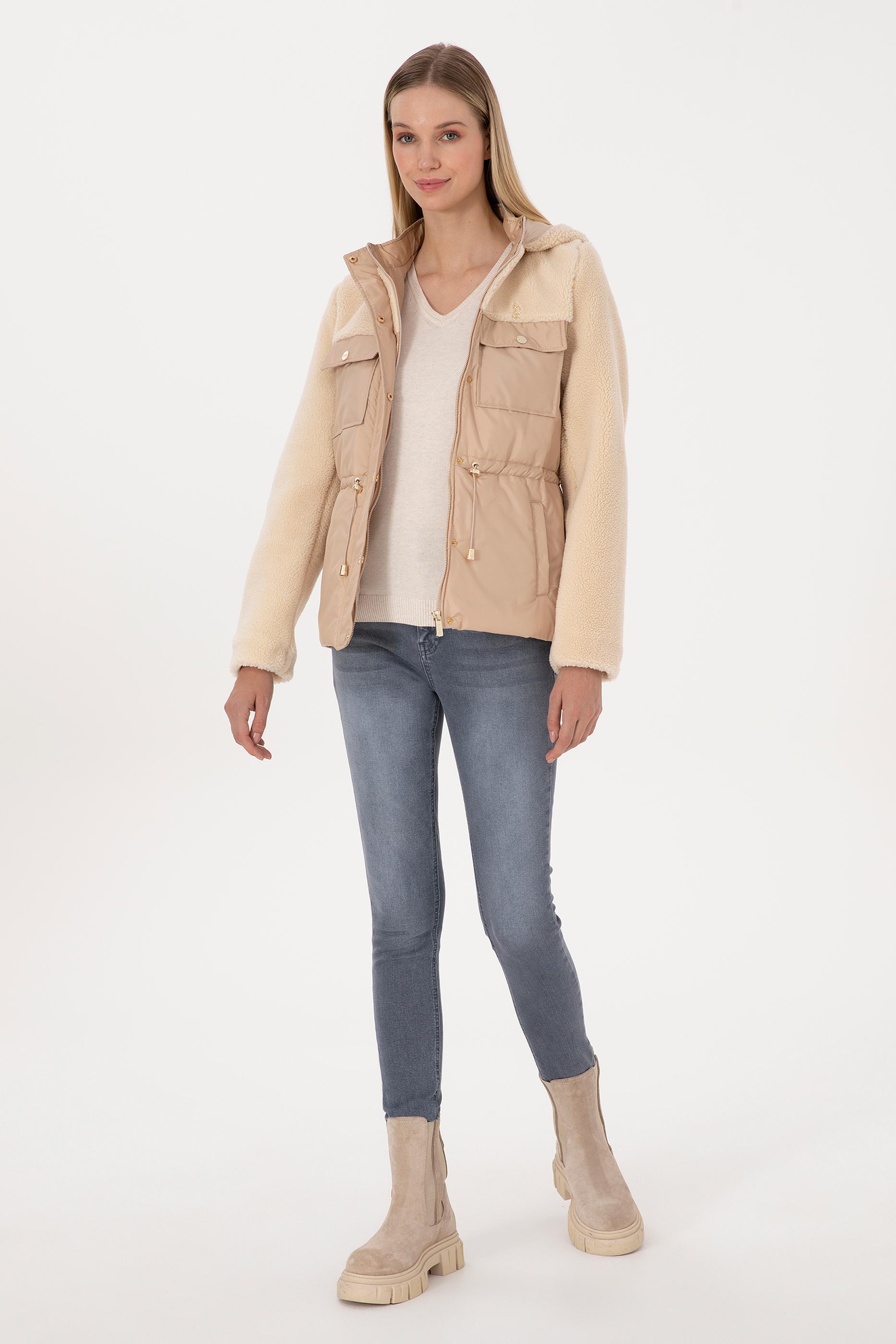 - Kadın Ekru Deri Ceket