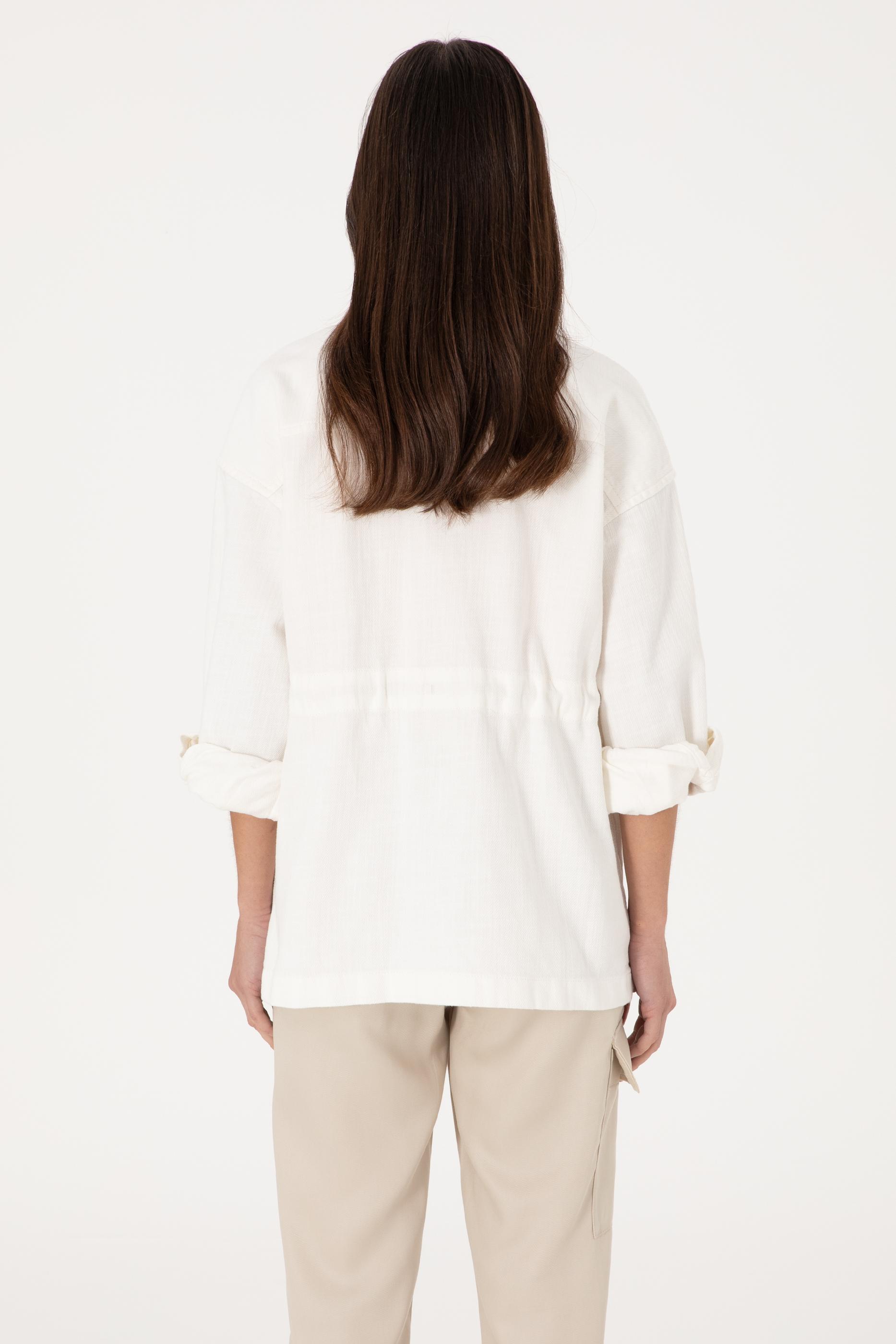 Mezurayı kol evinin altından, göğsün tepe noktasına yerleştirerek, yere parelel ölçüm alınız.