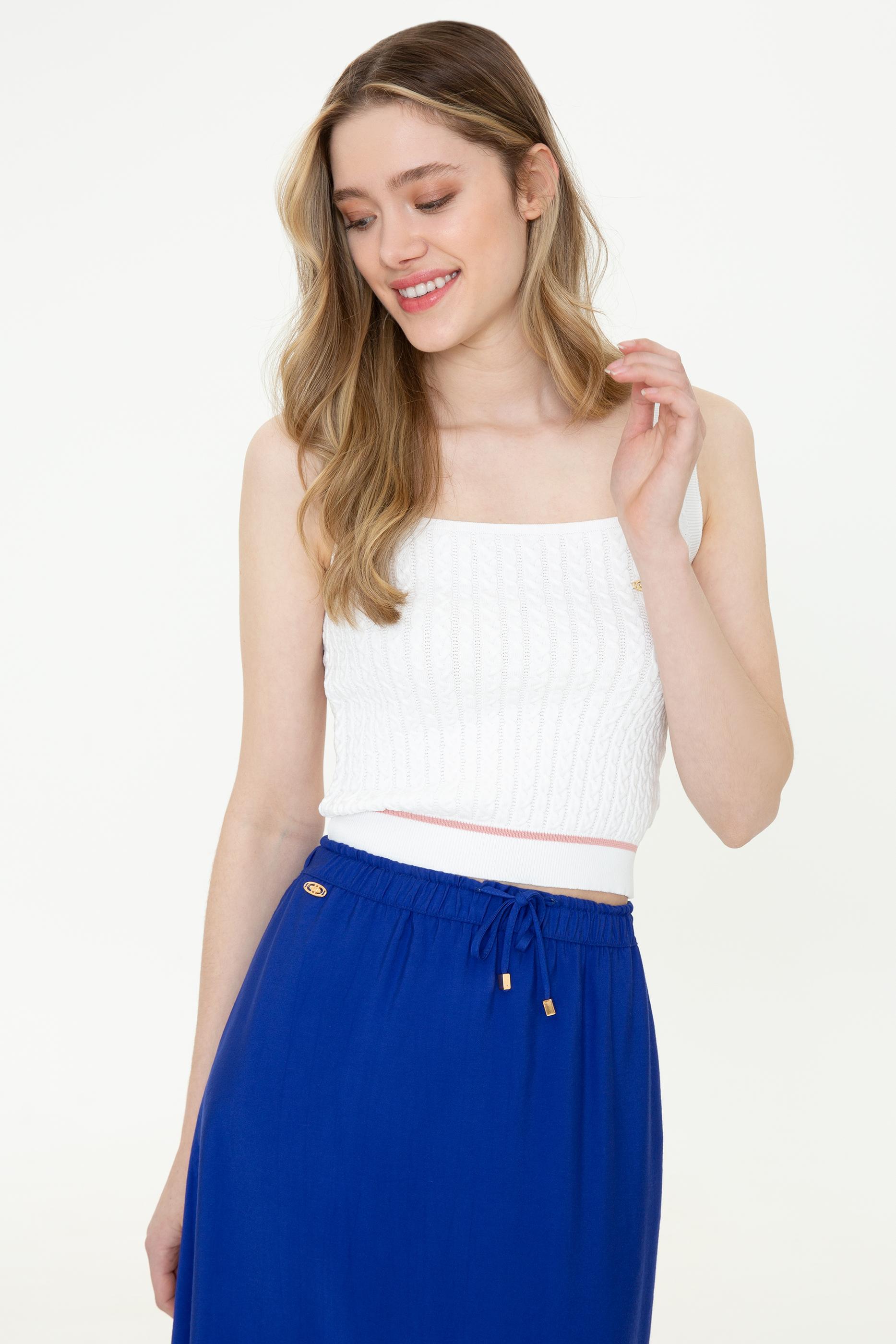 Yaz kombinlerinde dahi triko dokunuşlarla taçlandırılan parçalar giyebileceğinizi biliyor muydunuz? Ekstra slim fit kadın triko kazak tasarımımız ile yaz kombinlerinize iddialı bir yansıma kazandırabilirsiniz. %100 polyester karışımlı askılı kadın triko kazağımızla dilerseniz tek başına dilerseniz tişörtlerin üzerine giyerek kıyafet eşleştirmeleri yapabilirsiniz. Sıradan görünümlerden uzak, beli şerit detaylı kadın triko kazağımız sadece Online’da!