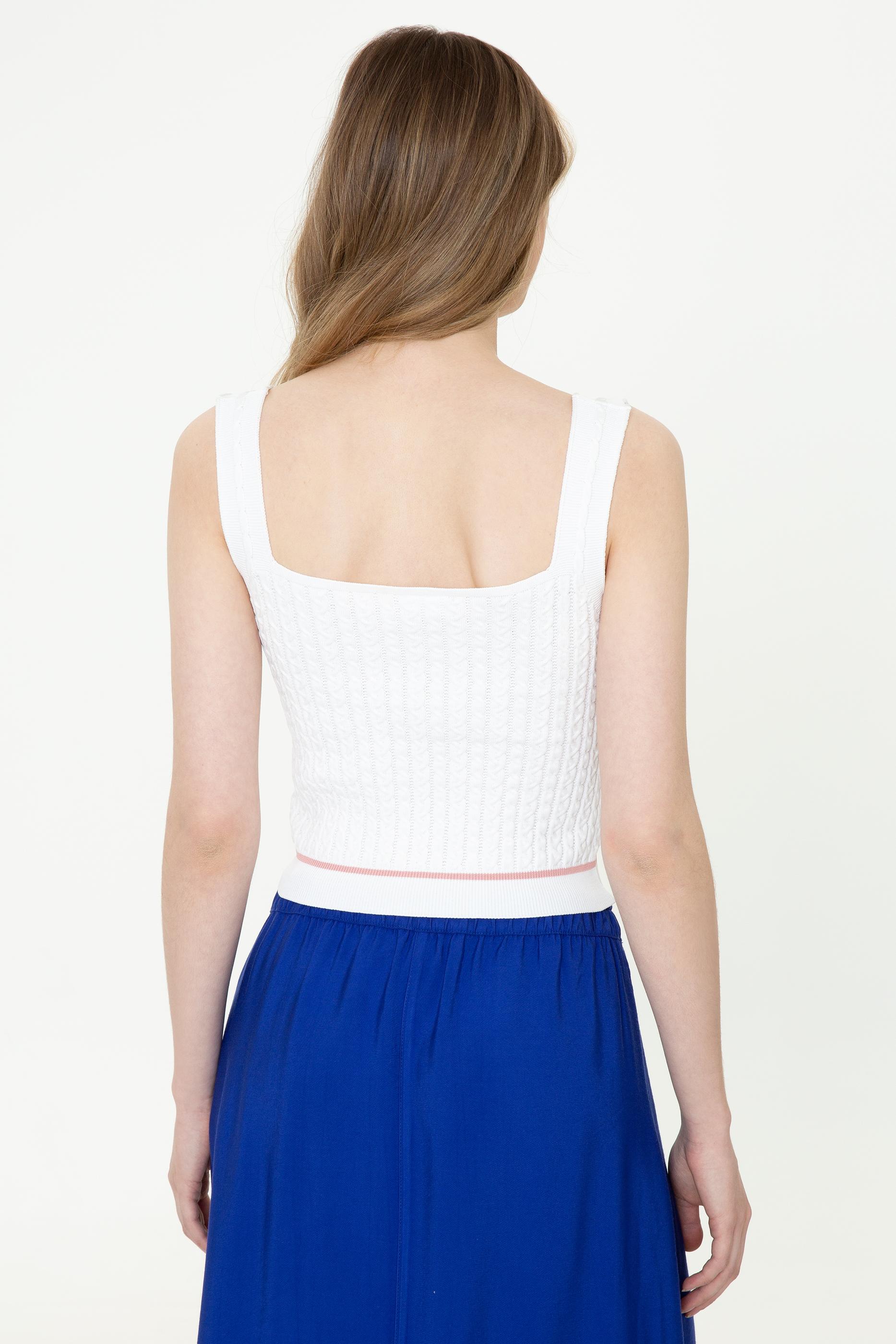 Ekstra slim fit kadın triko kazak tasarımımız ile yaz kombinlerinize iddialı bir yansıma kazandırabilirsiniz.
