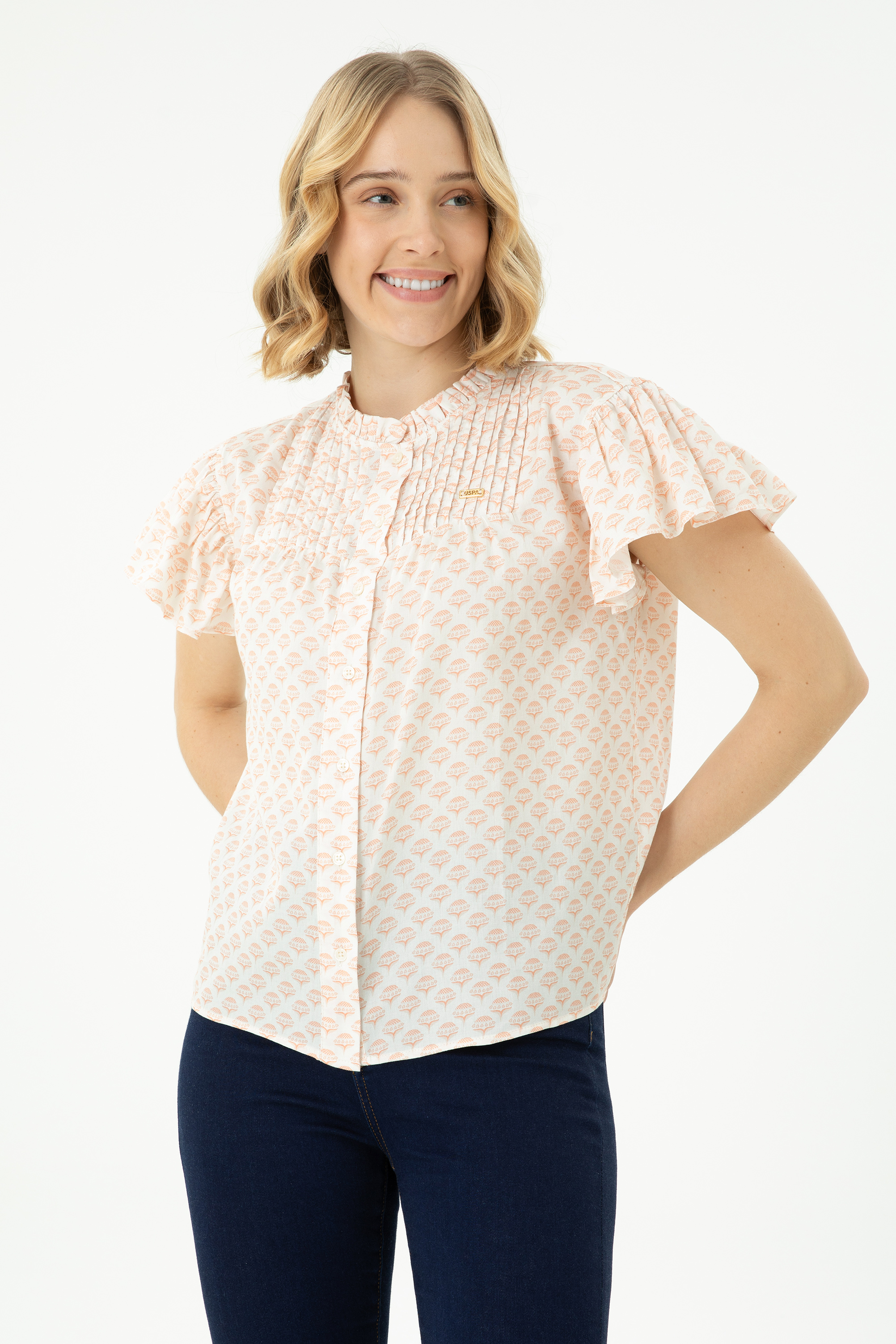 - Kadın Ekru Kısa Kollu Gömlek