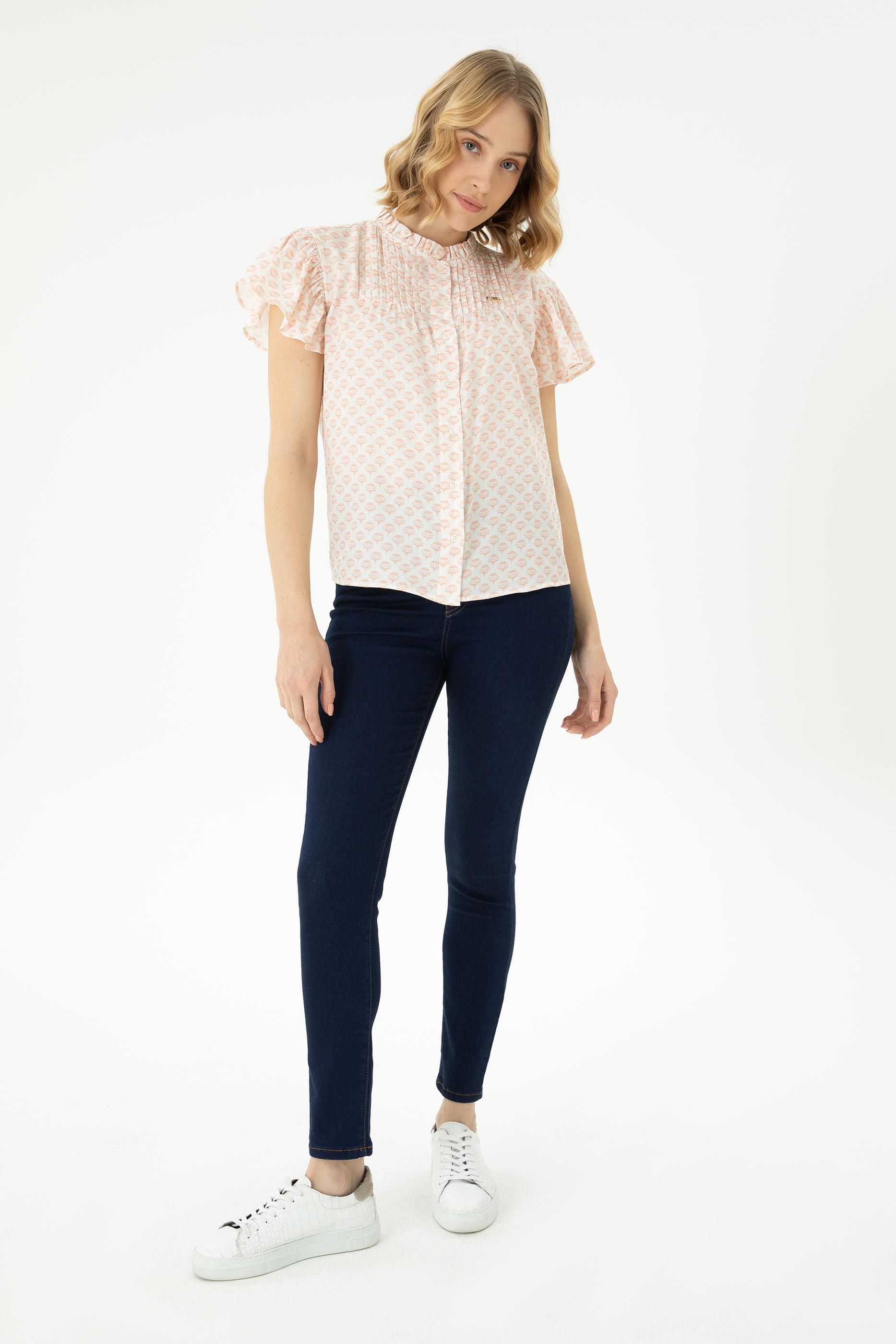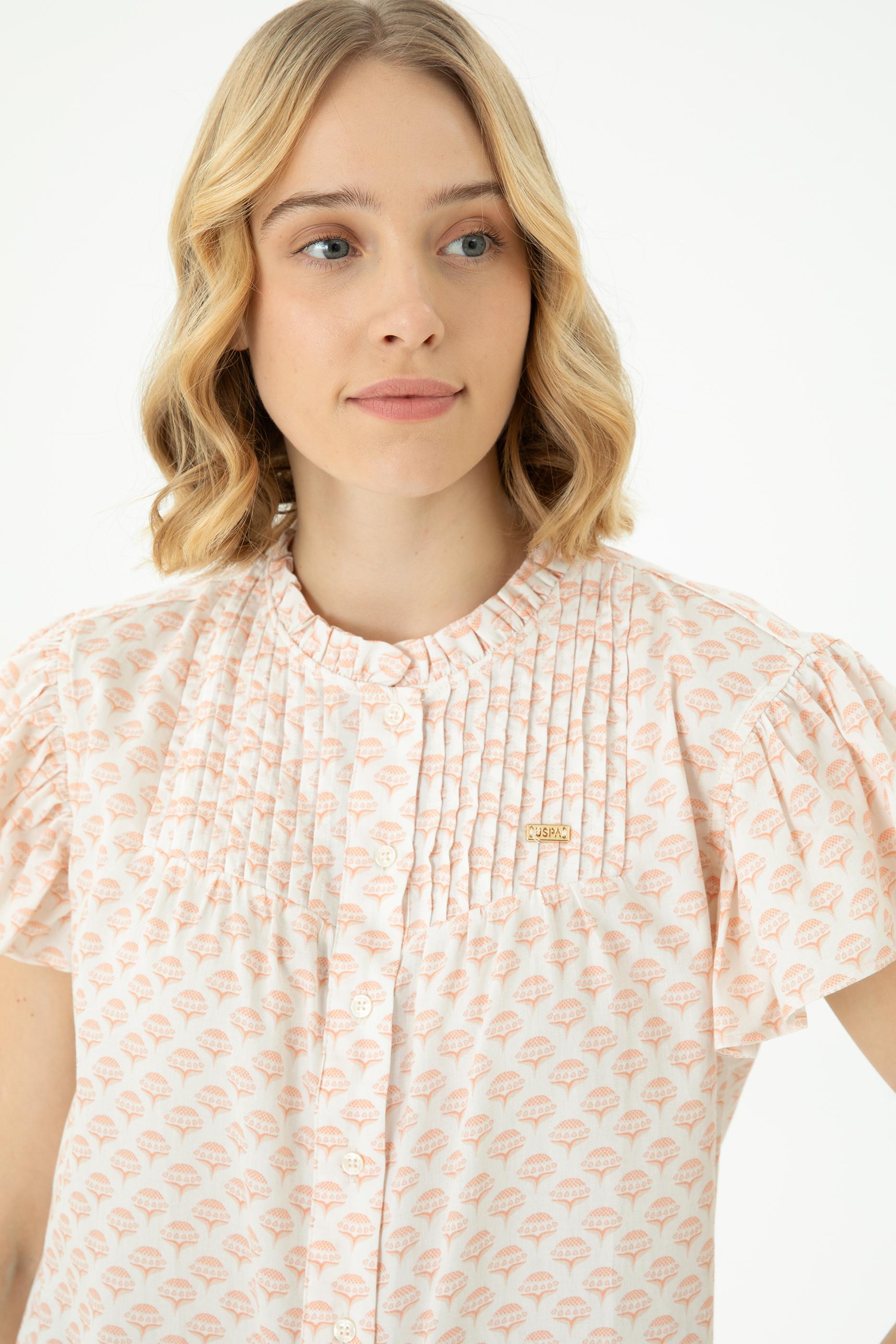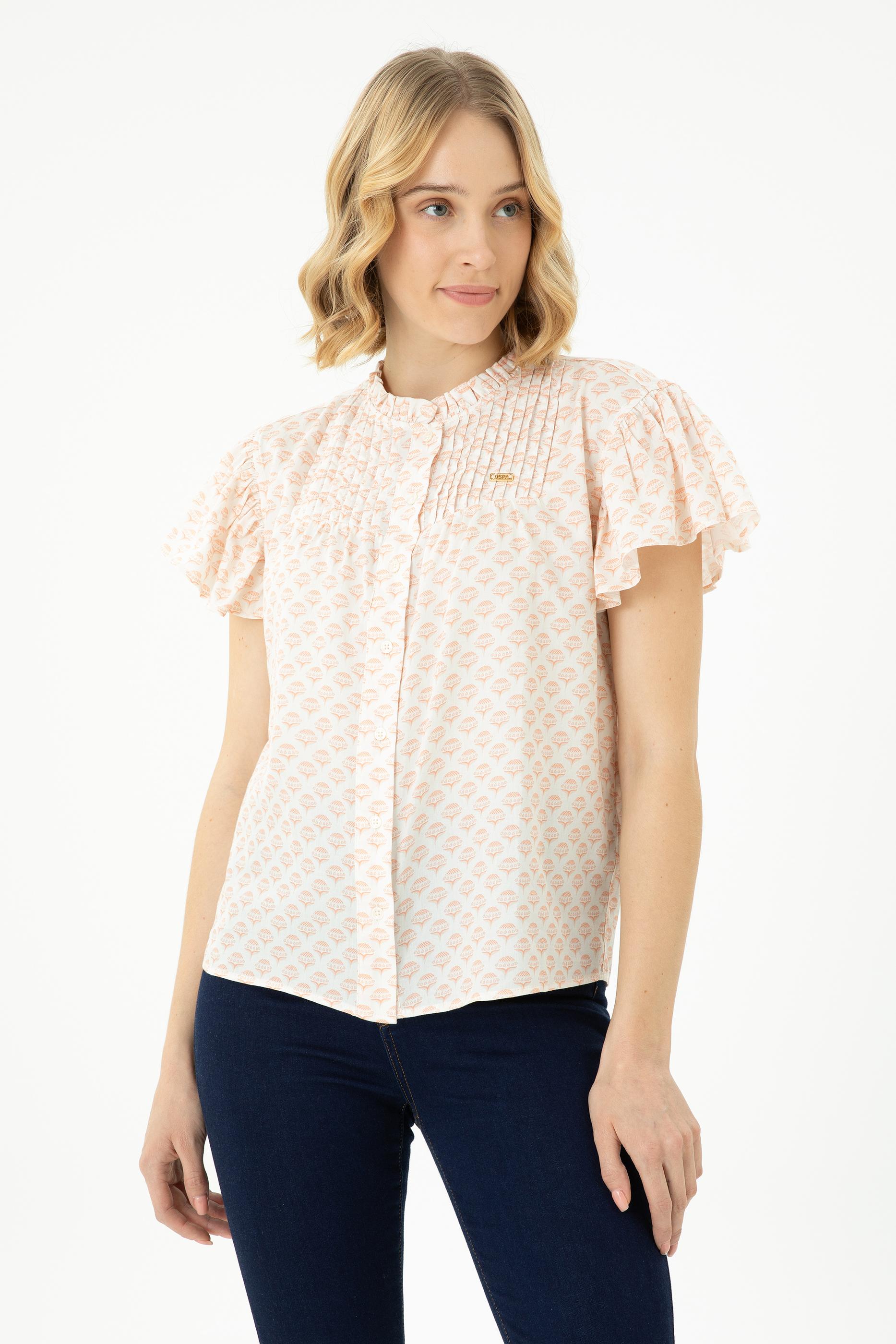 Kadın Ekru Kısa Kollu Gömlek