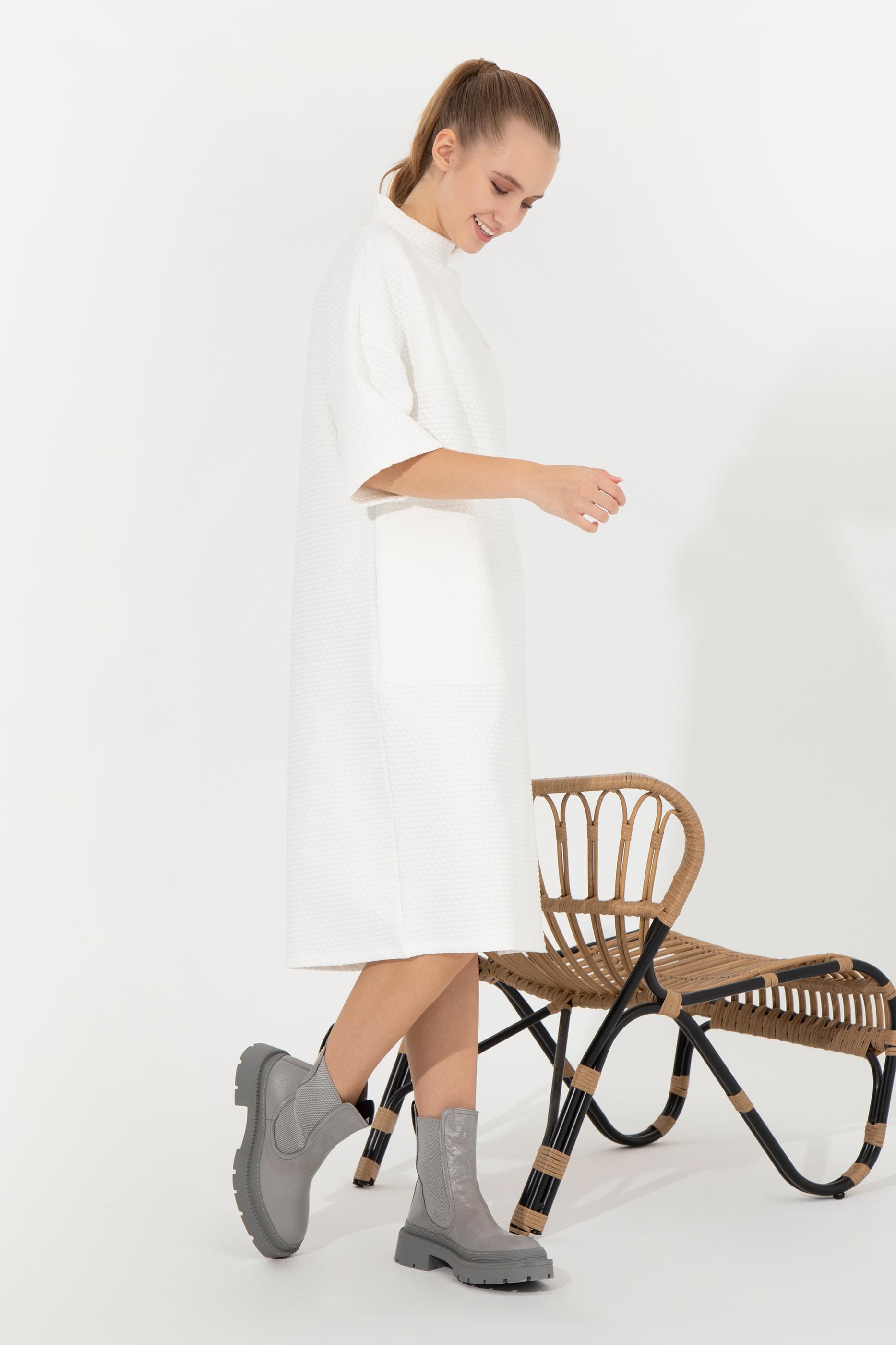 Kadın Ekru Bisiklet Yaka Örme Elbise
