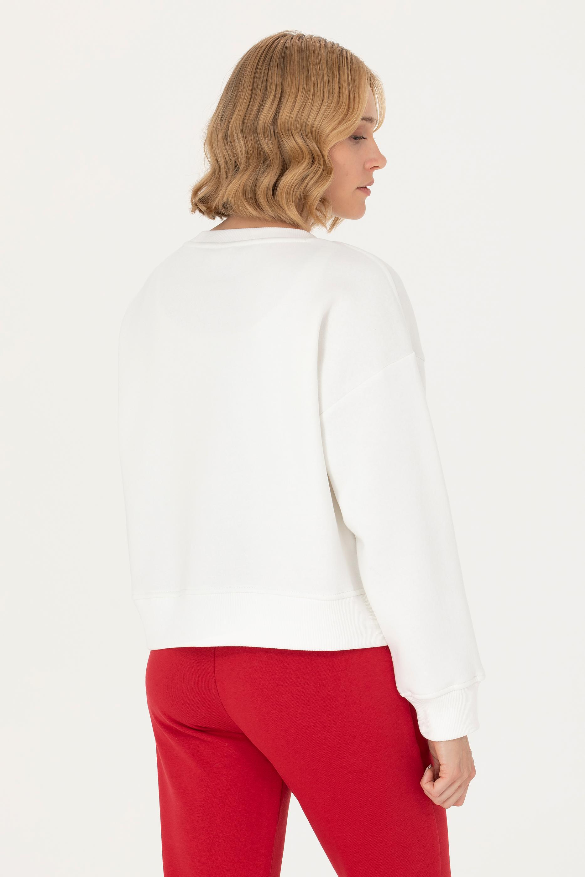 Kadın Ekru Bisiklet Yaka Sweatshirt