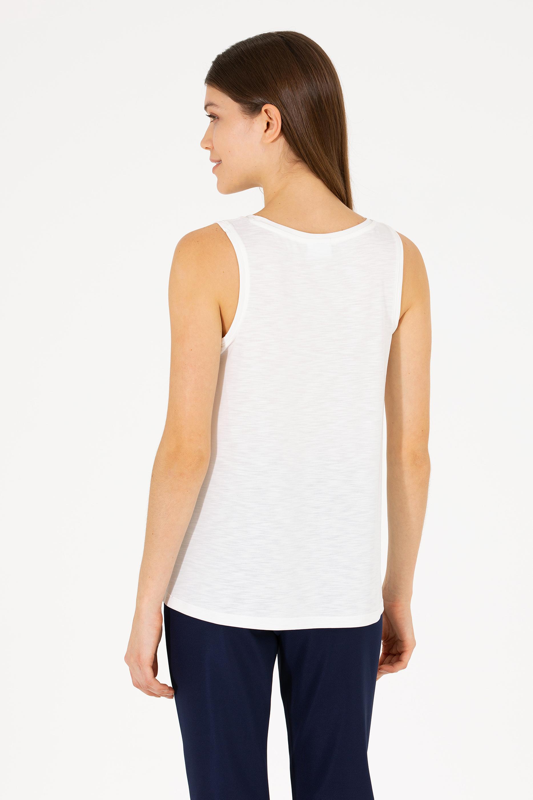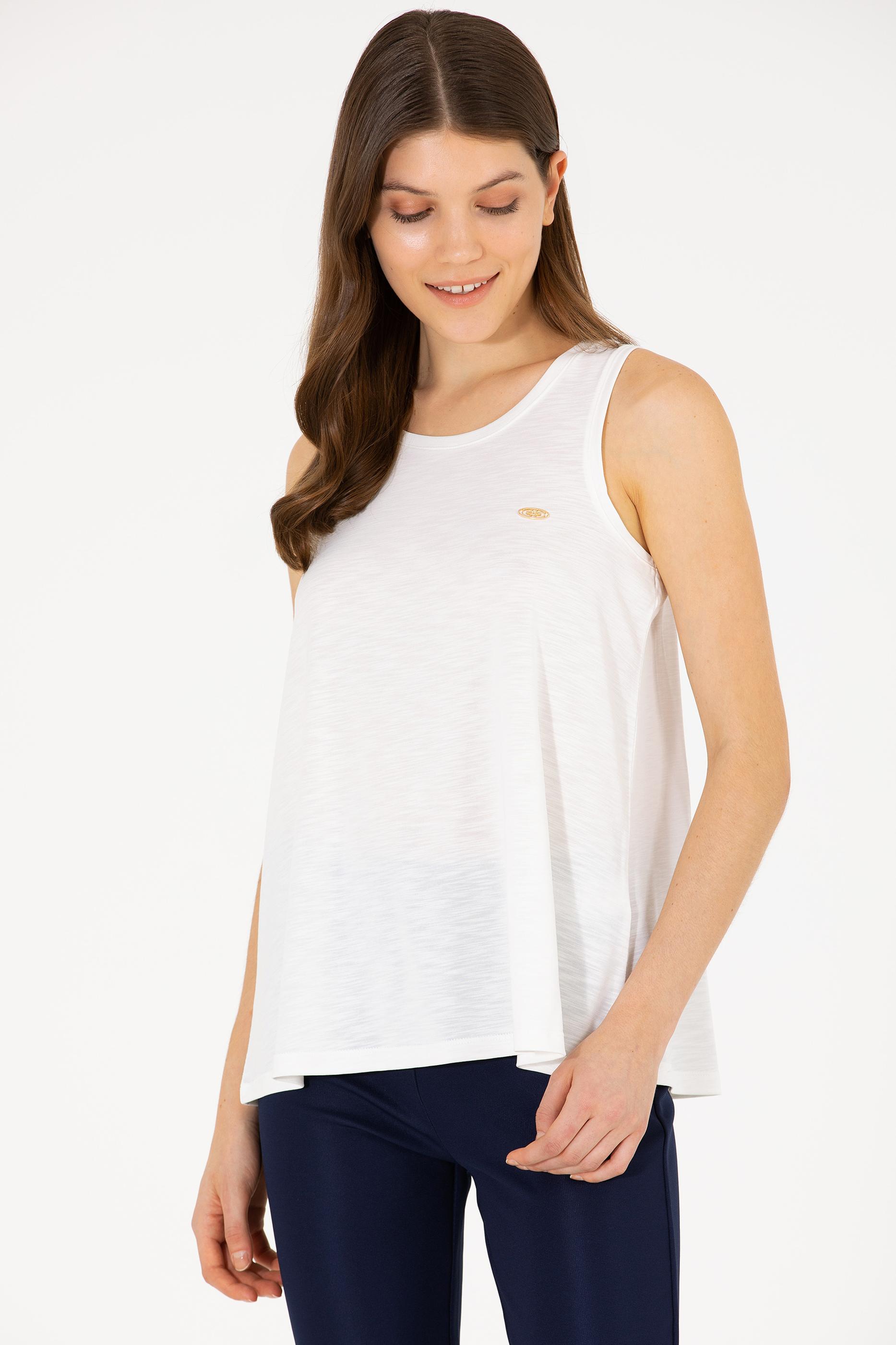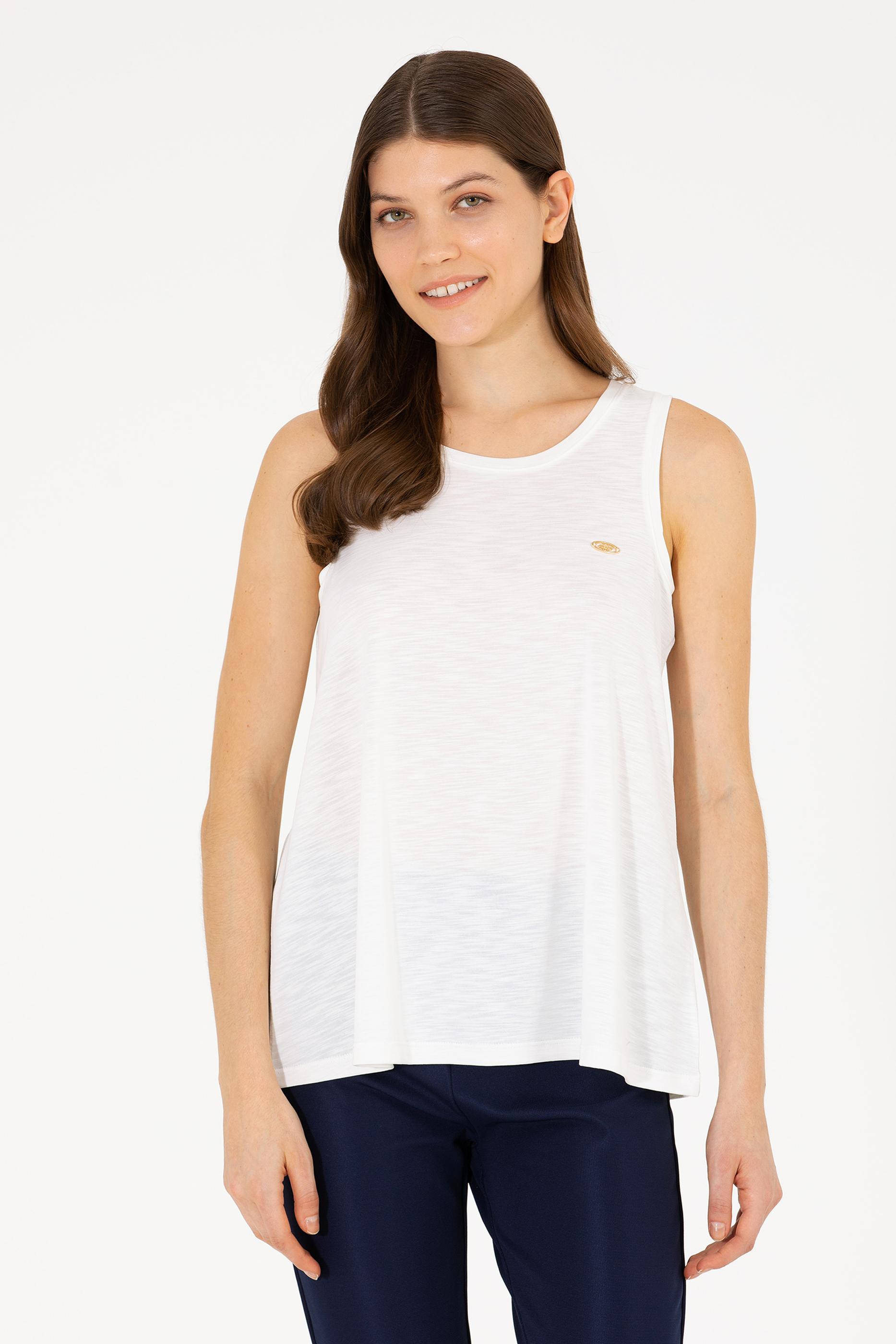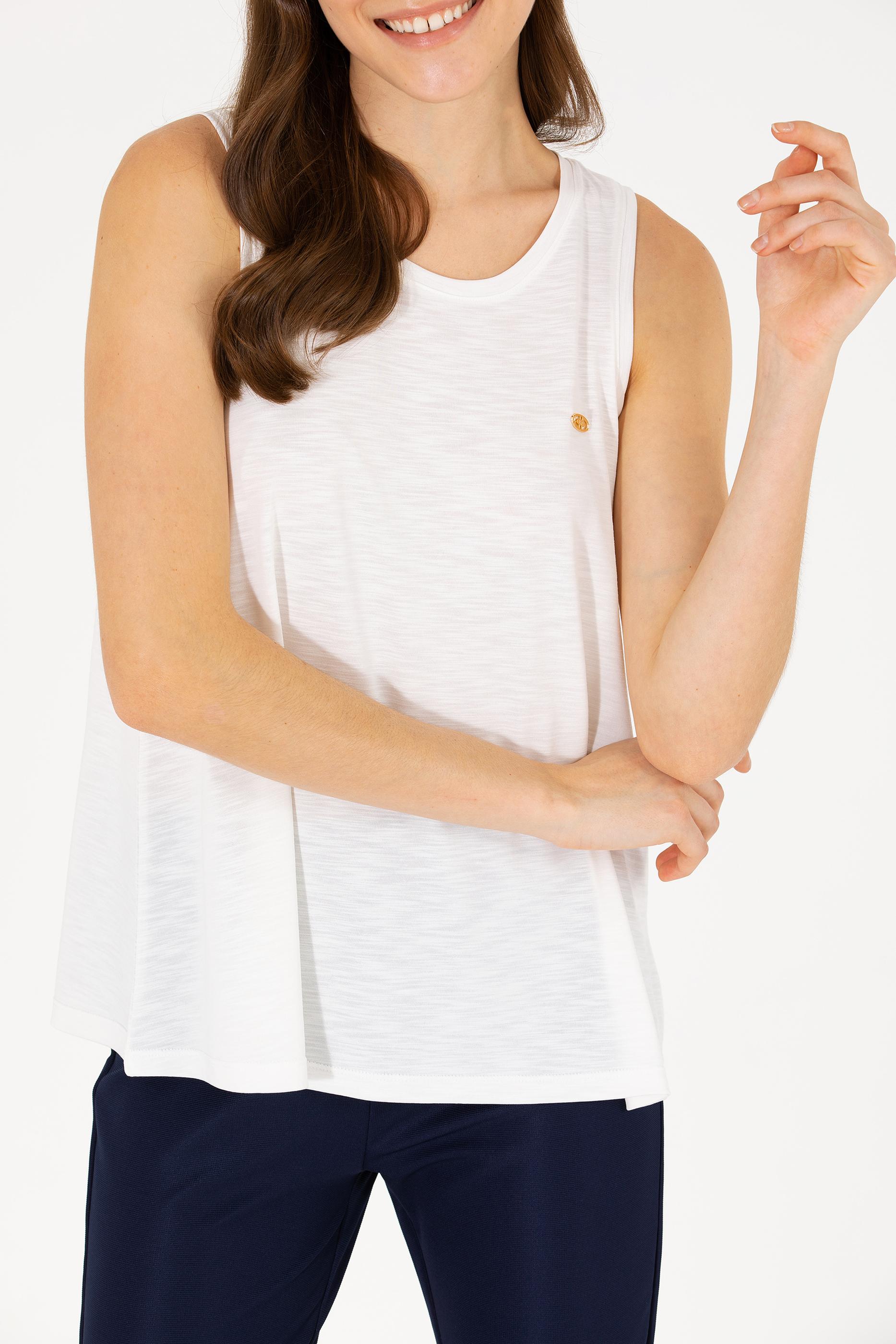 Kadın Ekru Bisiklet Yaka Kolsuz Tişört