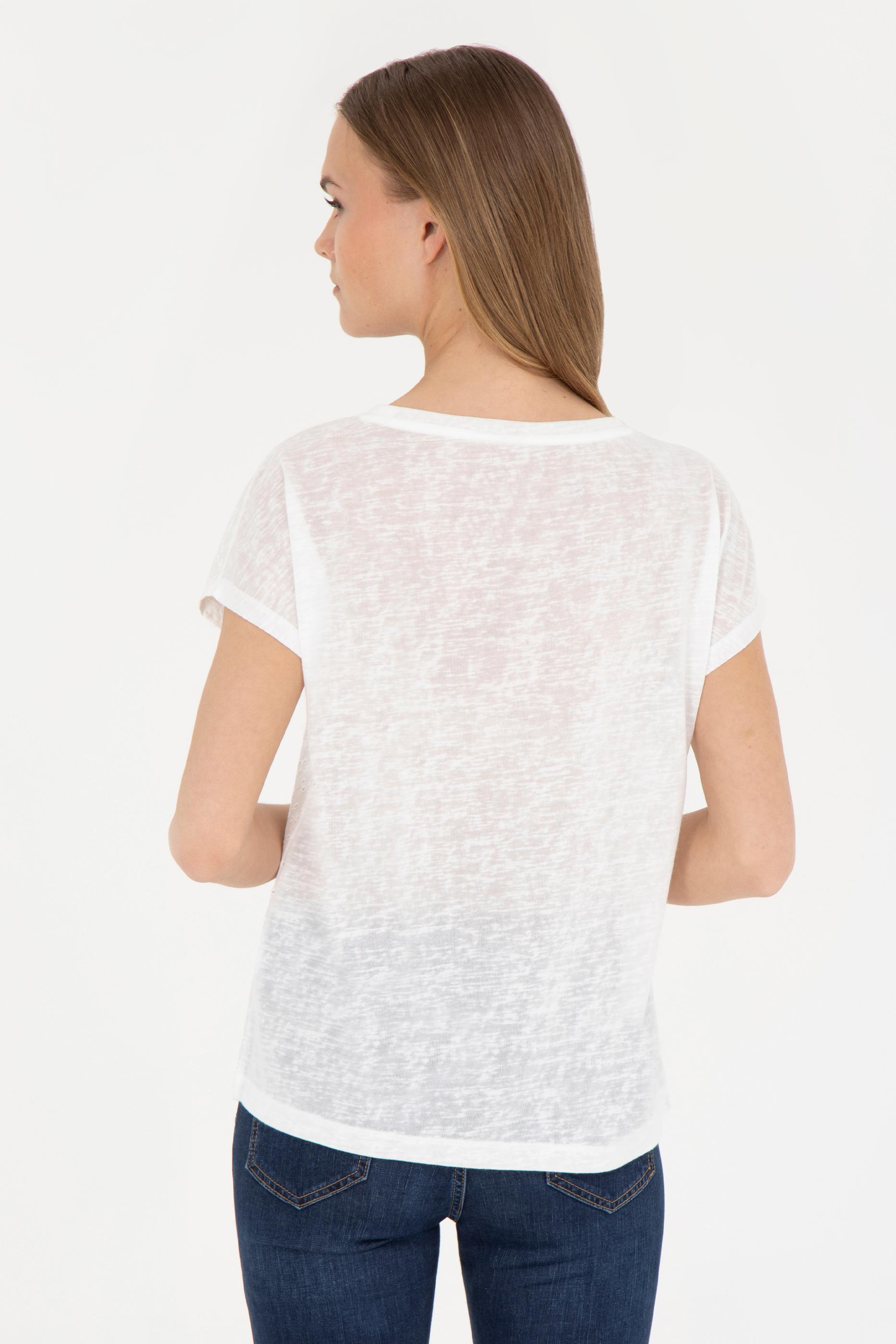 Kadın Ekru Bisiklet Yaka Tişört