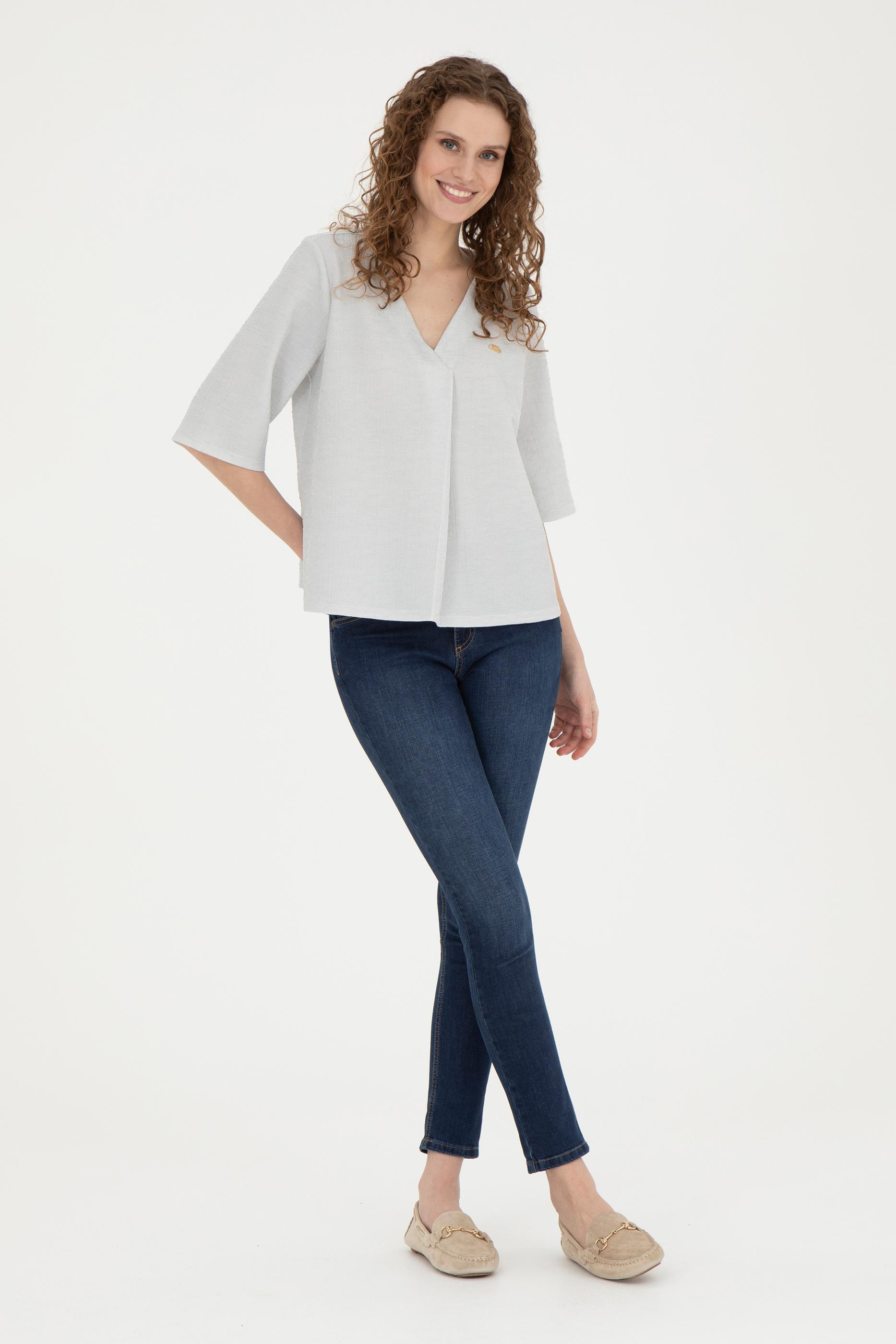 Kadın Ekru V Yaka Tişört