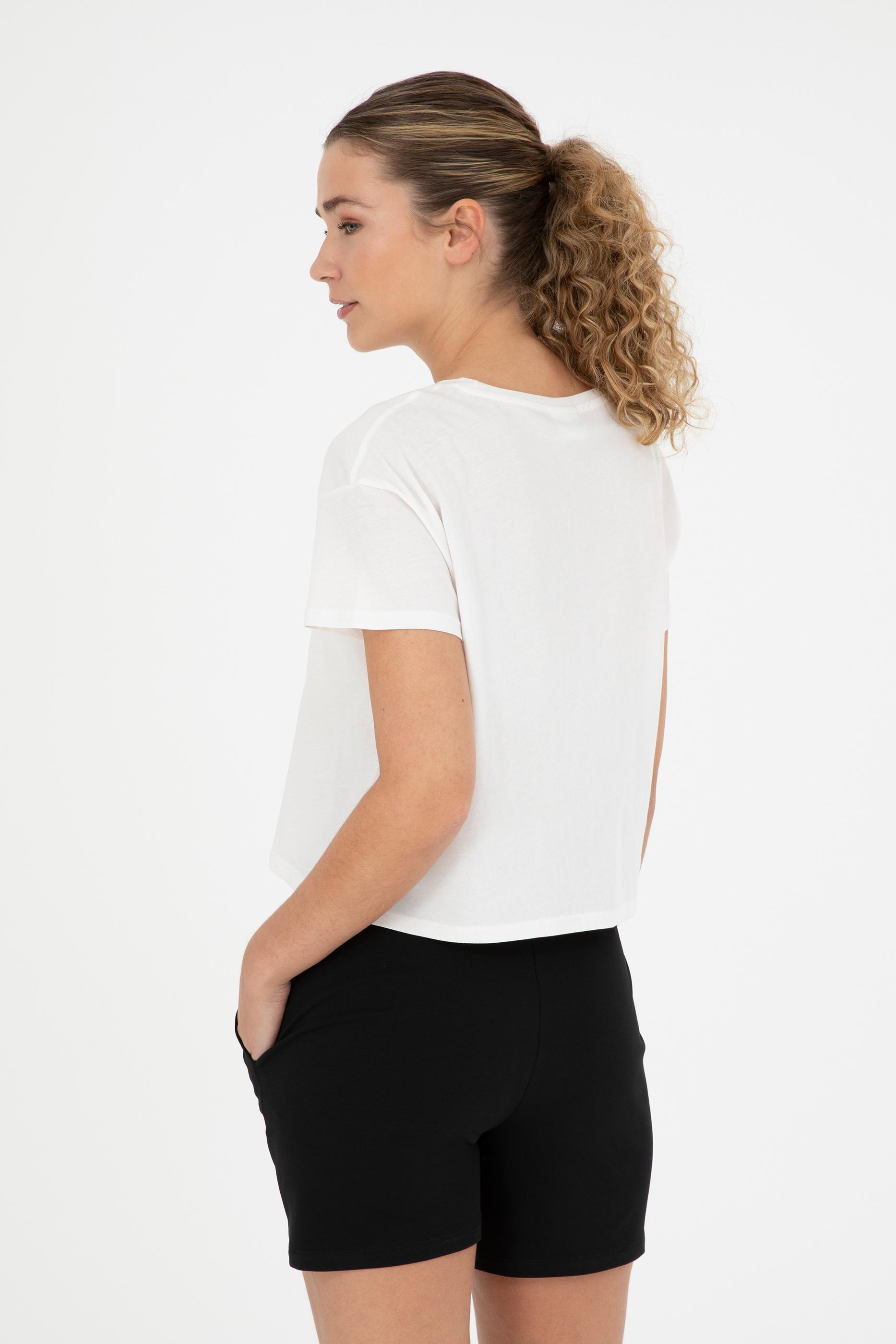 Kadın Ekru Bisiklet Yaka Tişört - 50286053019