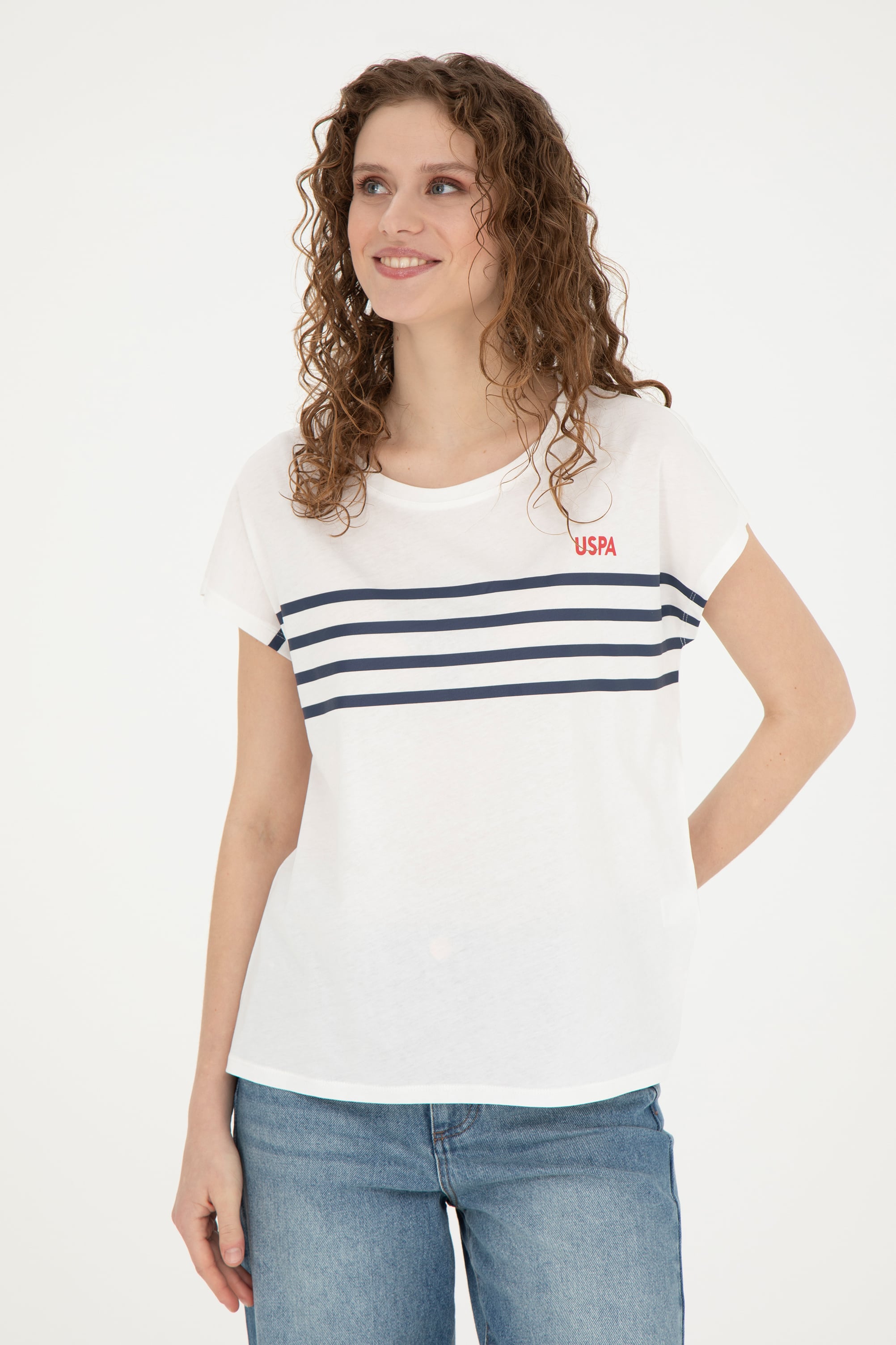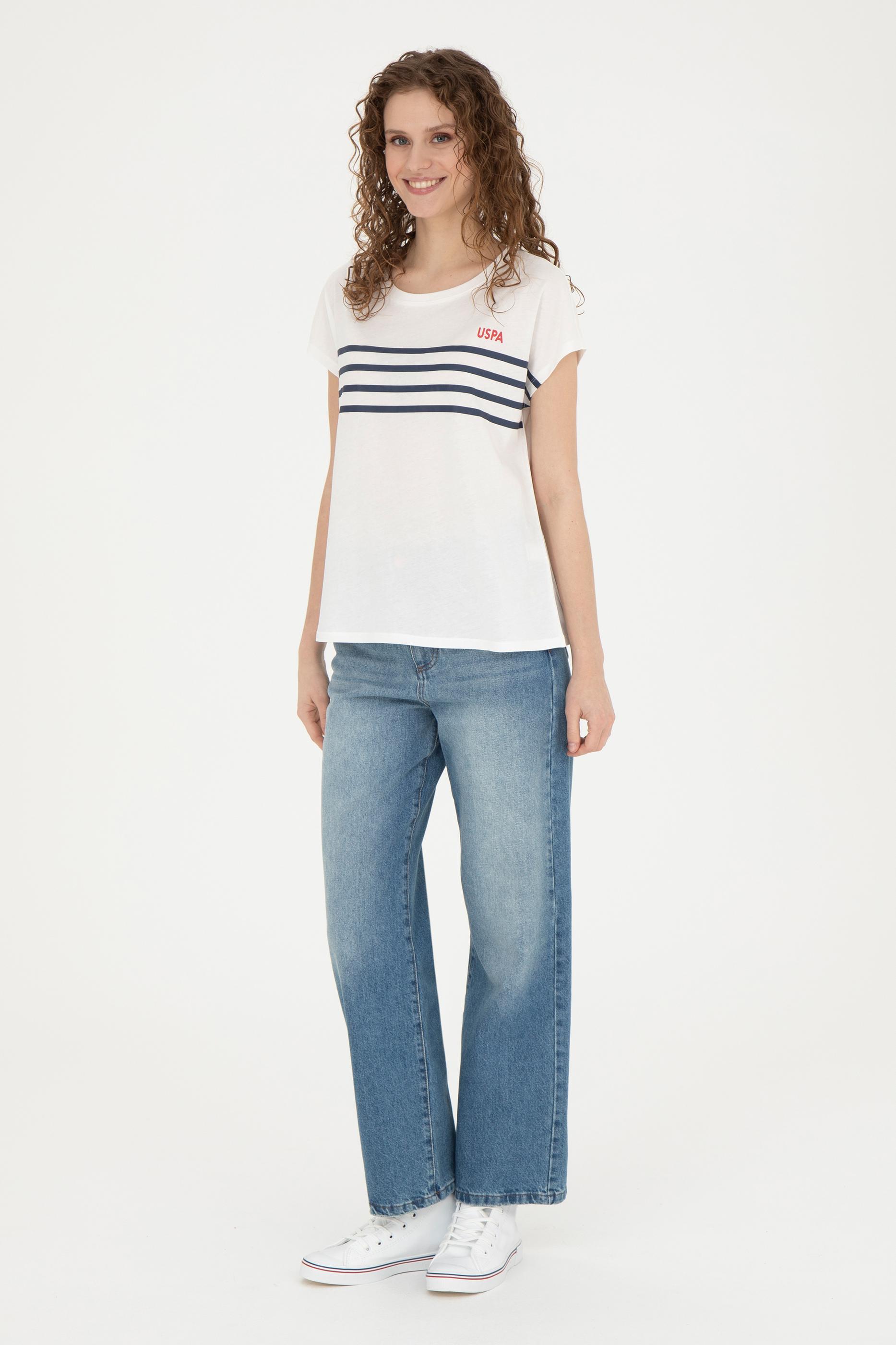 Kadın Ekru Bisiklet Yaka Tişört