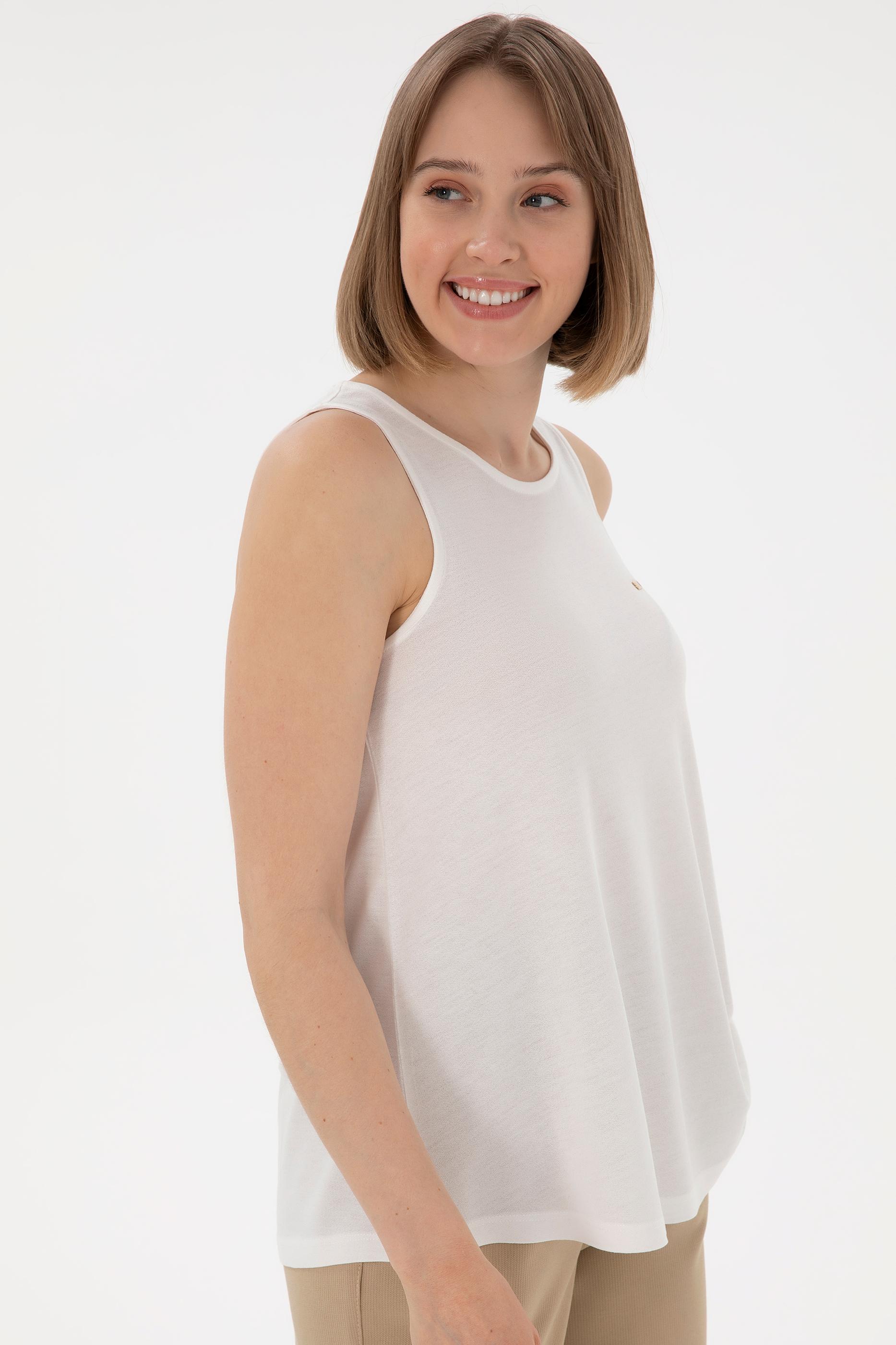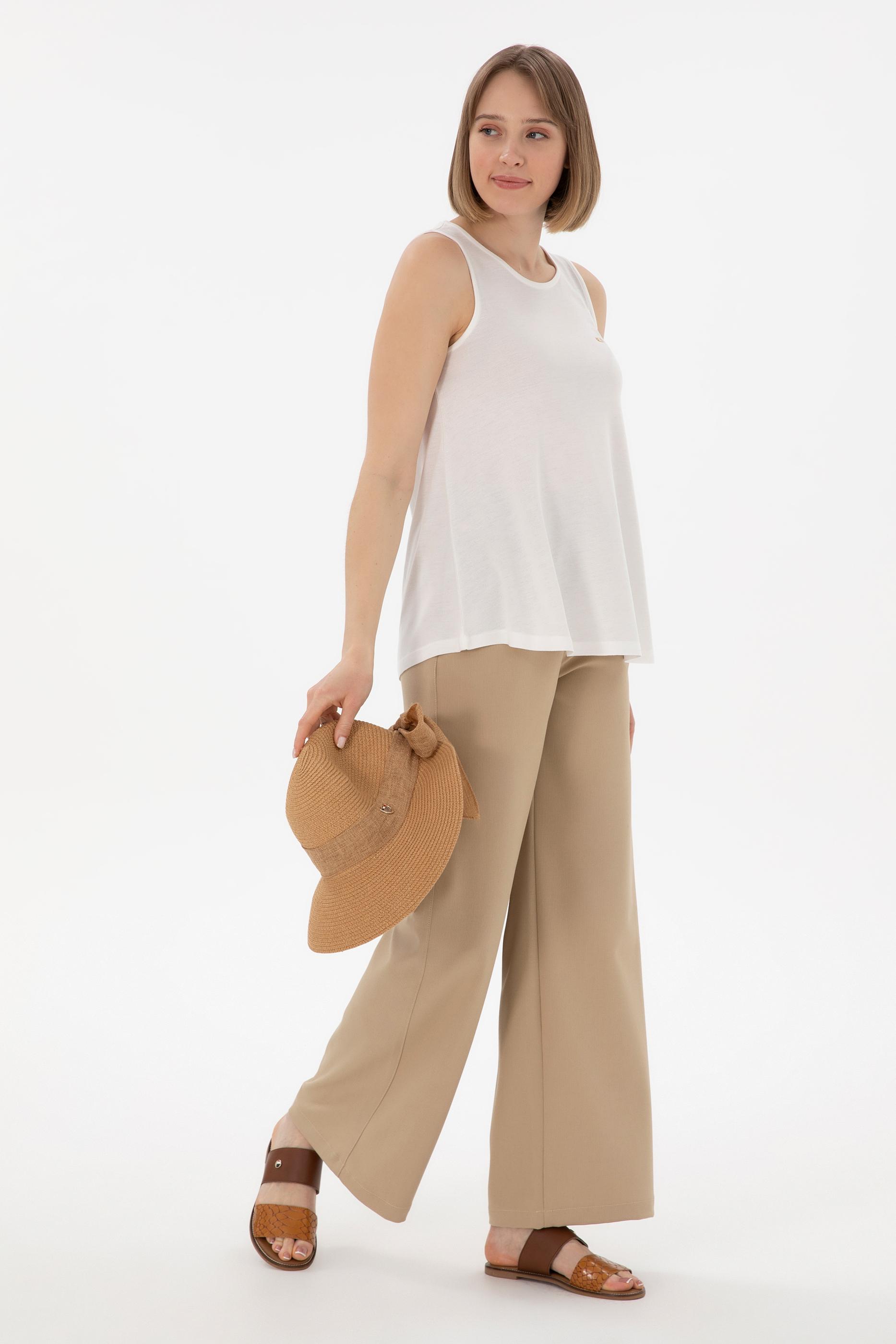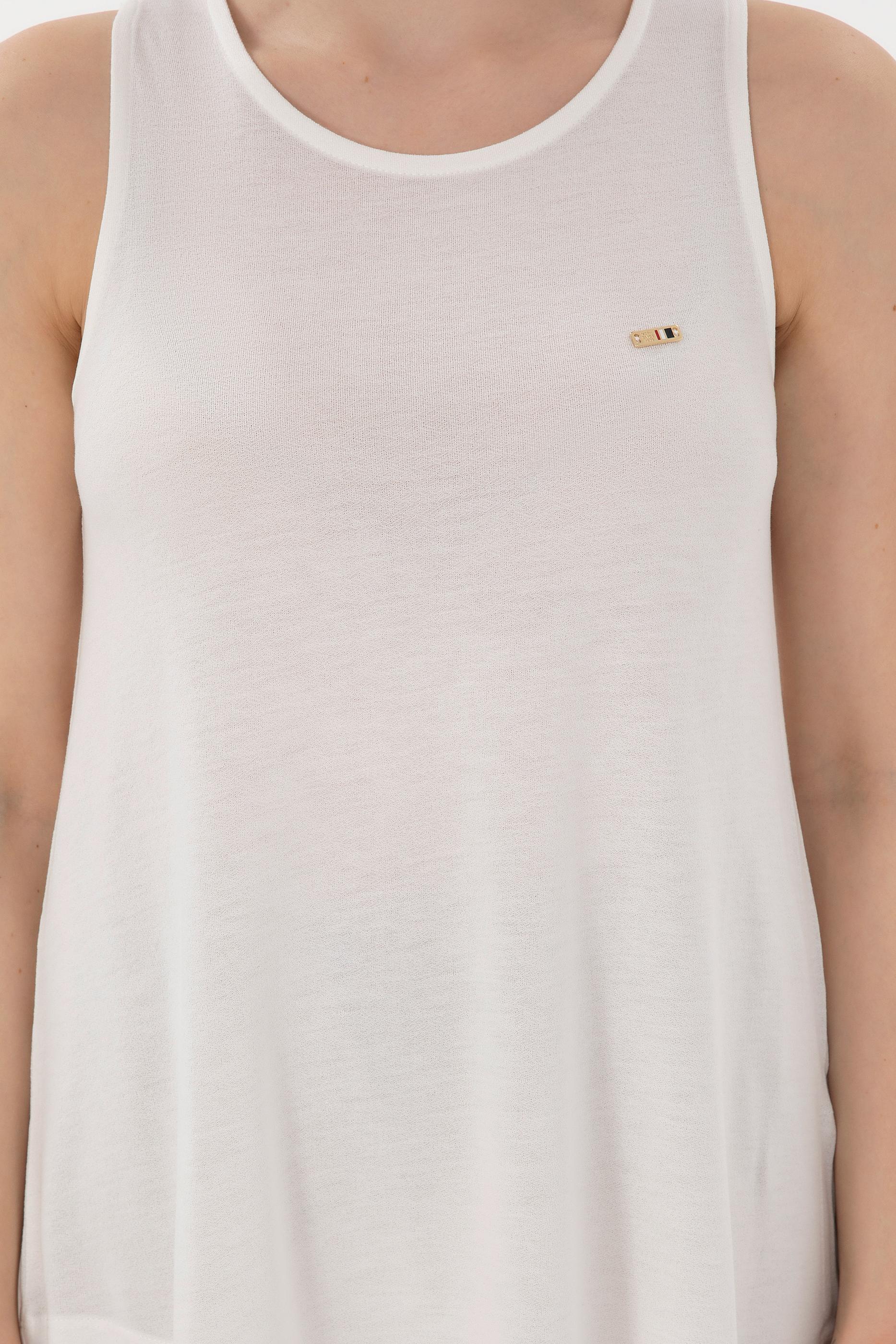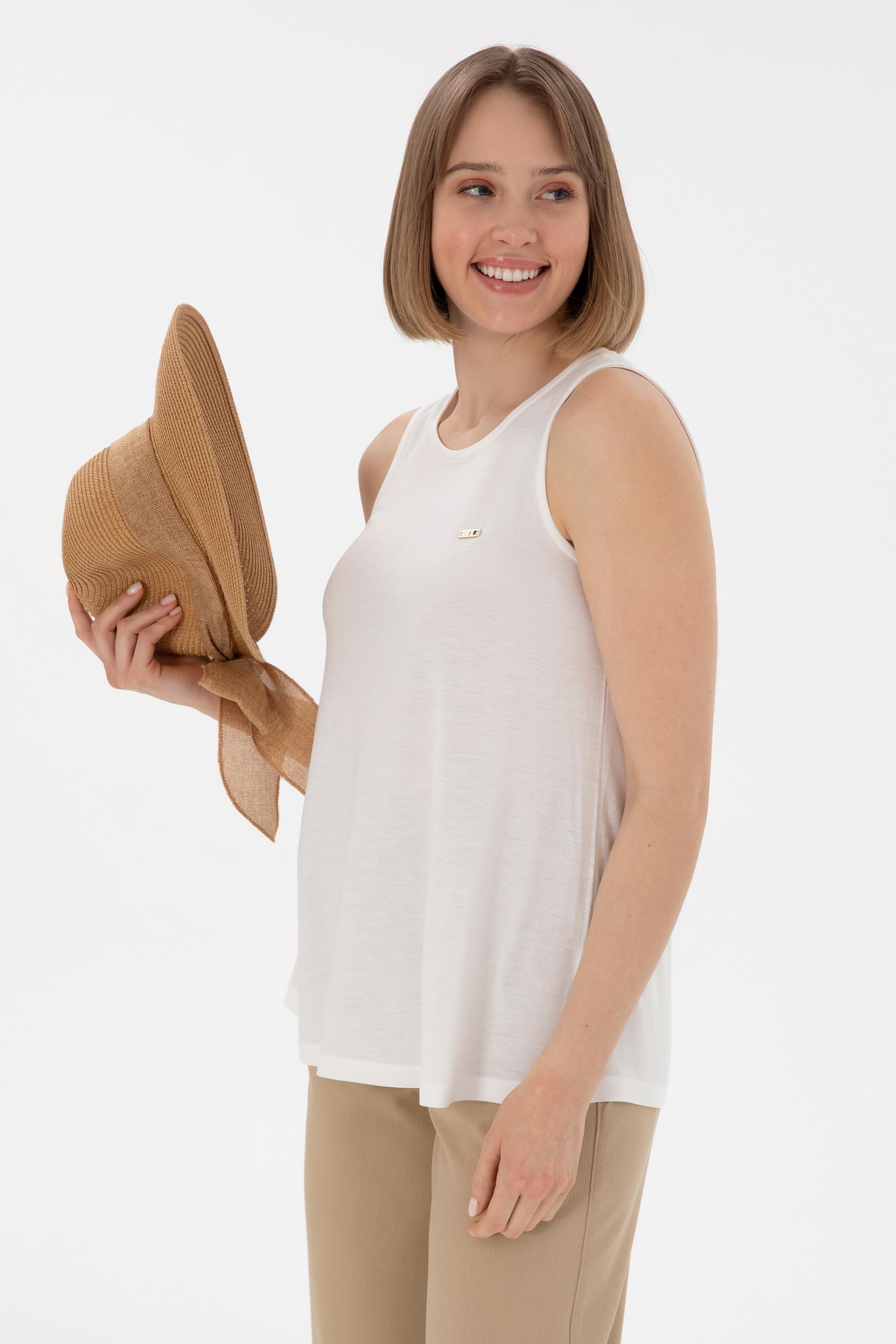 - Kadın Ekru Kolsuz Bisiklet Yaka Tişört