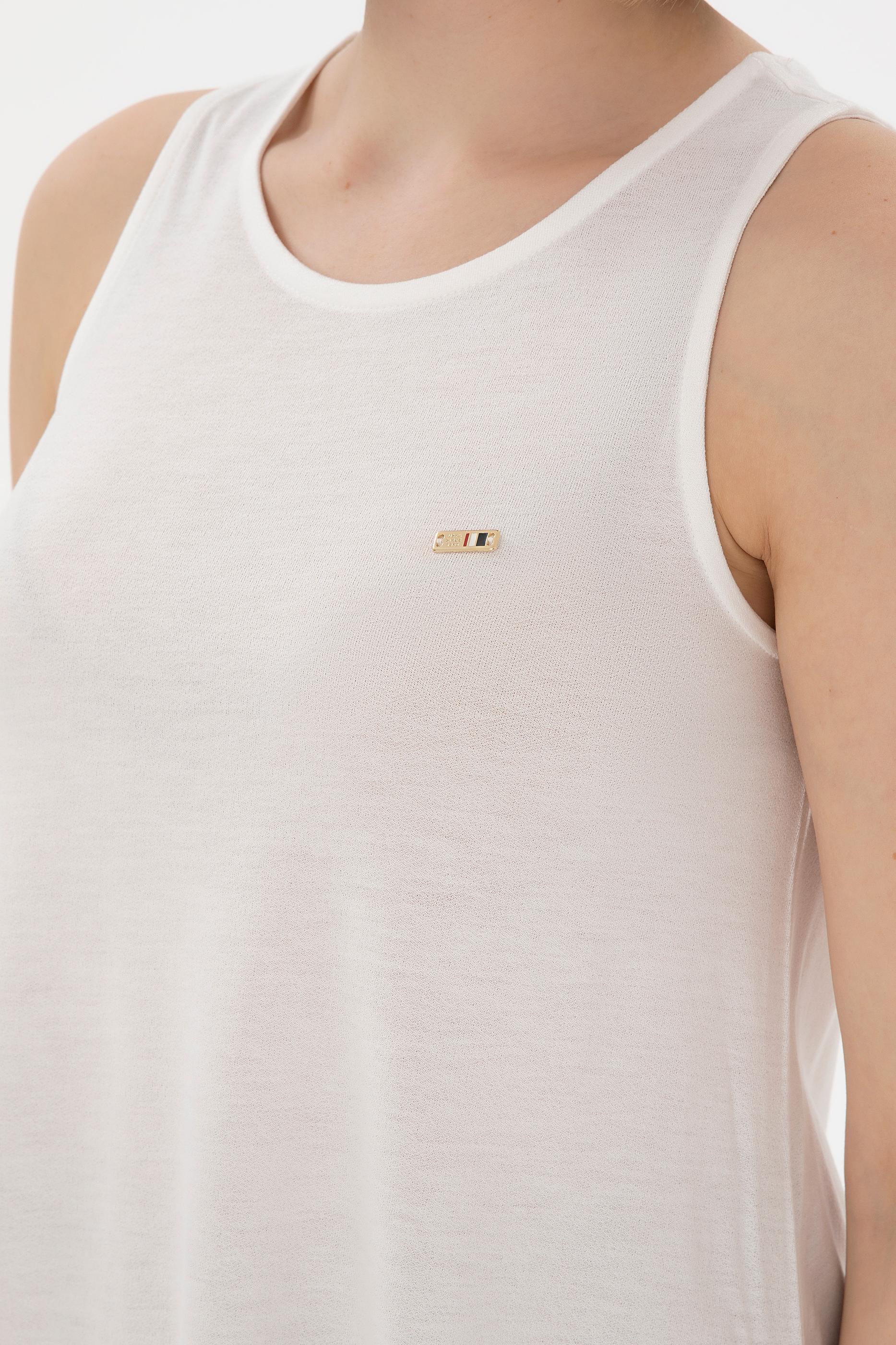 Kadın Ekru Kolsuz Bisiklet Yaka Tişört