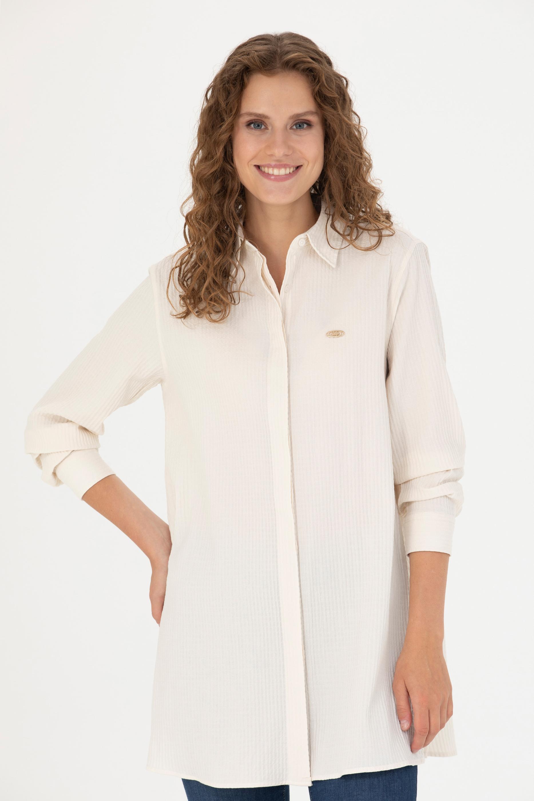- Kadın Ekru Uzun Kollu Gömlek