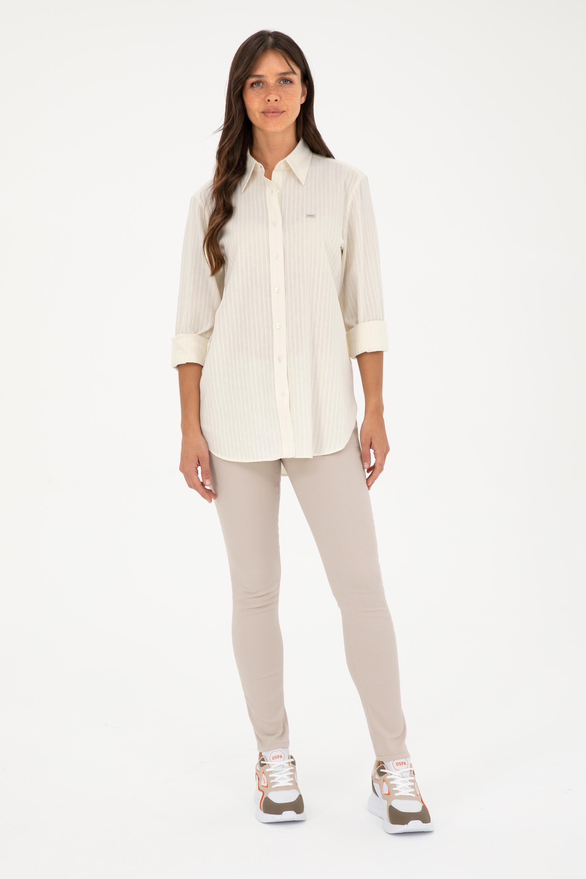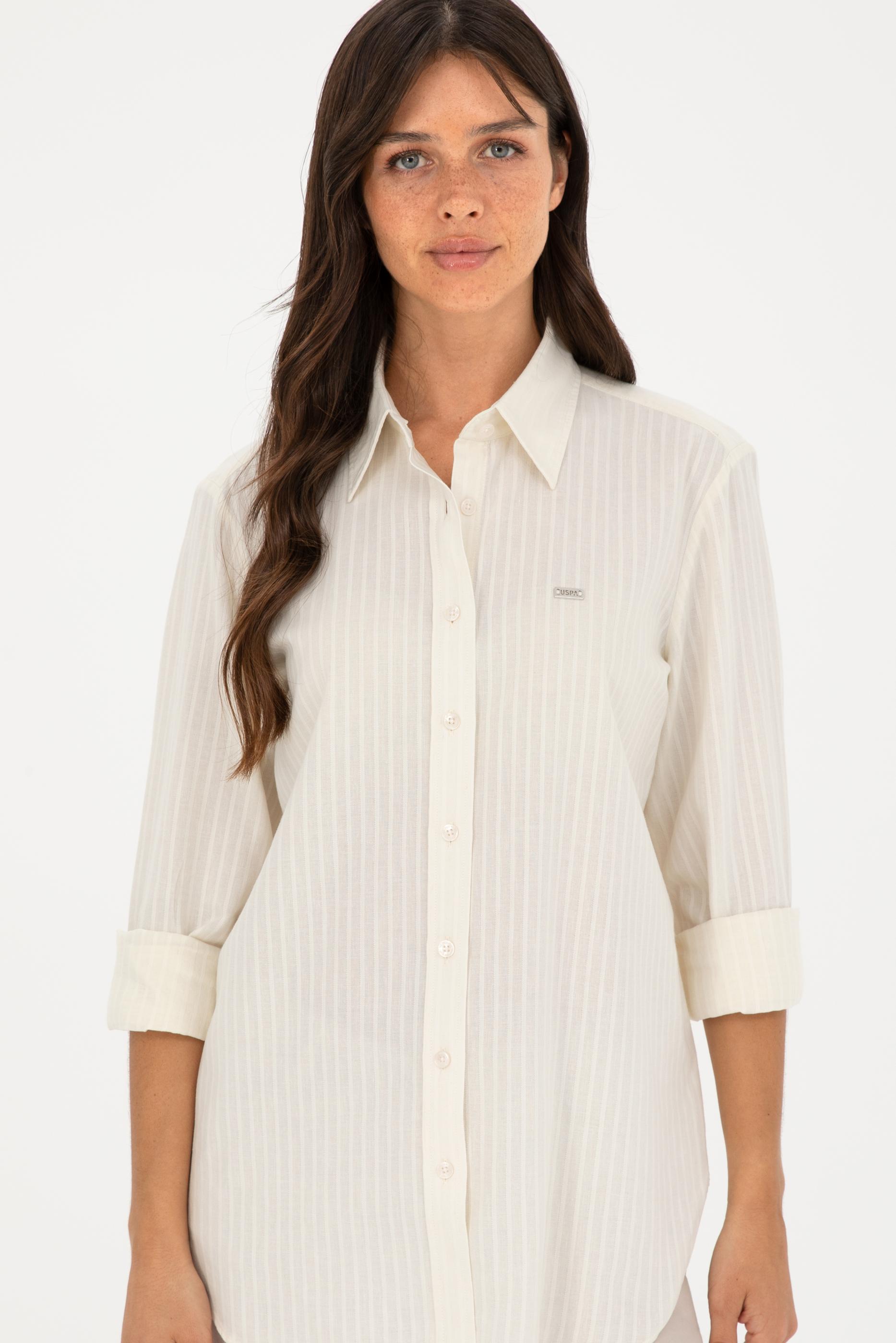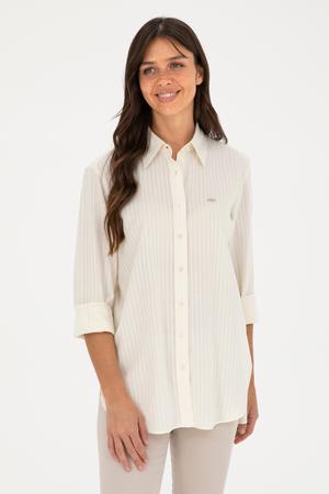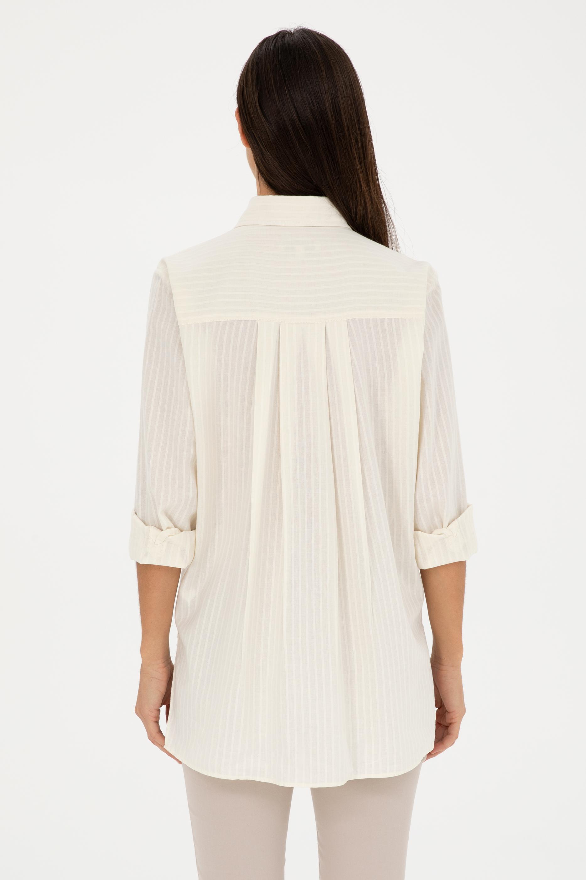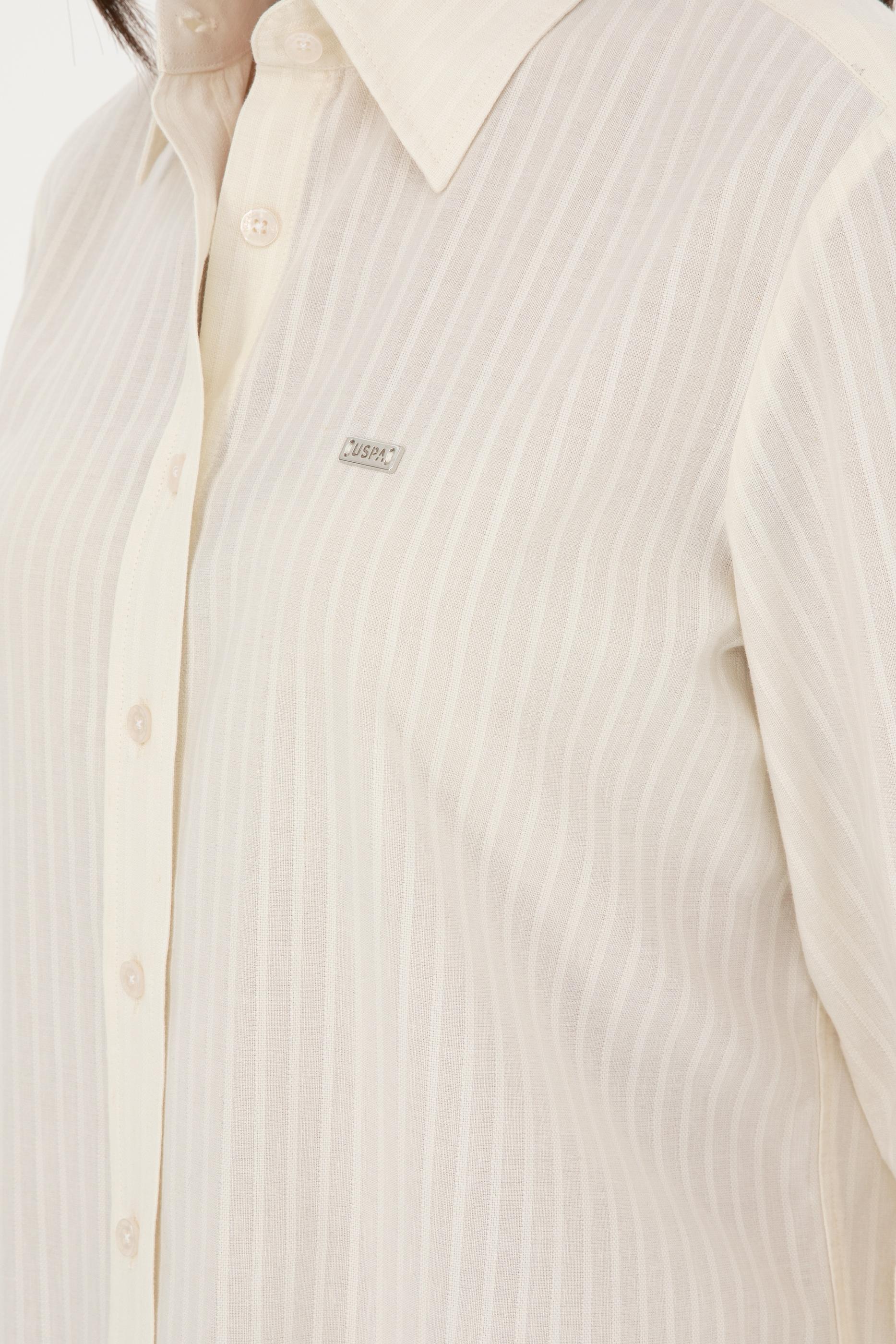 - Kadın Ekru Keten Görünümlü Uzun Kollu Gömlek