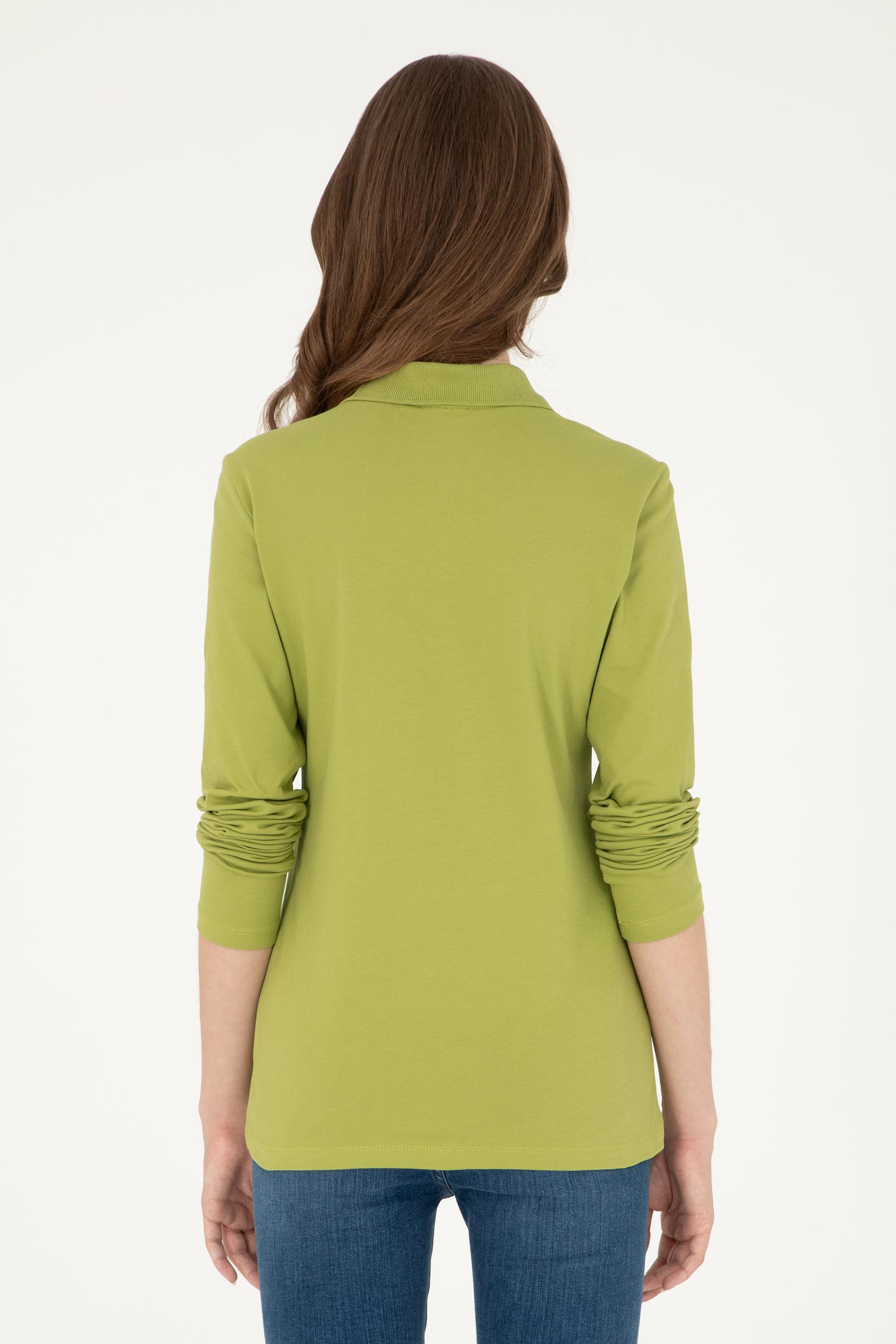 Kadın Fıstık Yeşili Basic Polo Yaka Sweatshirt - 50296941097