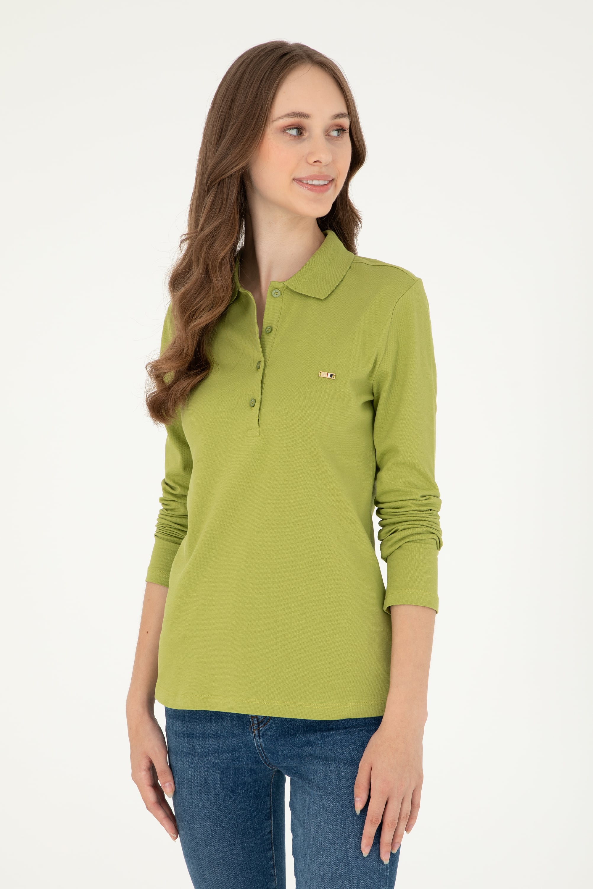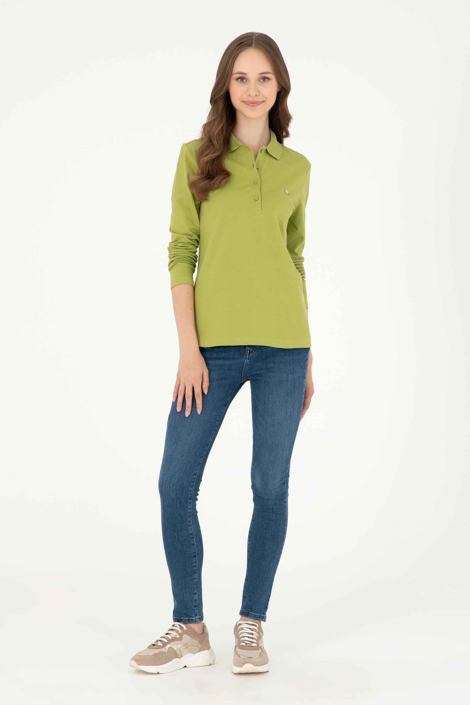 Kadın Fıstık Yeşili Basic Polo Yaka Sweatshirt