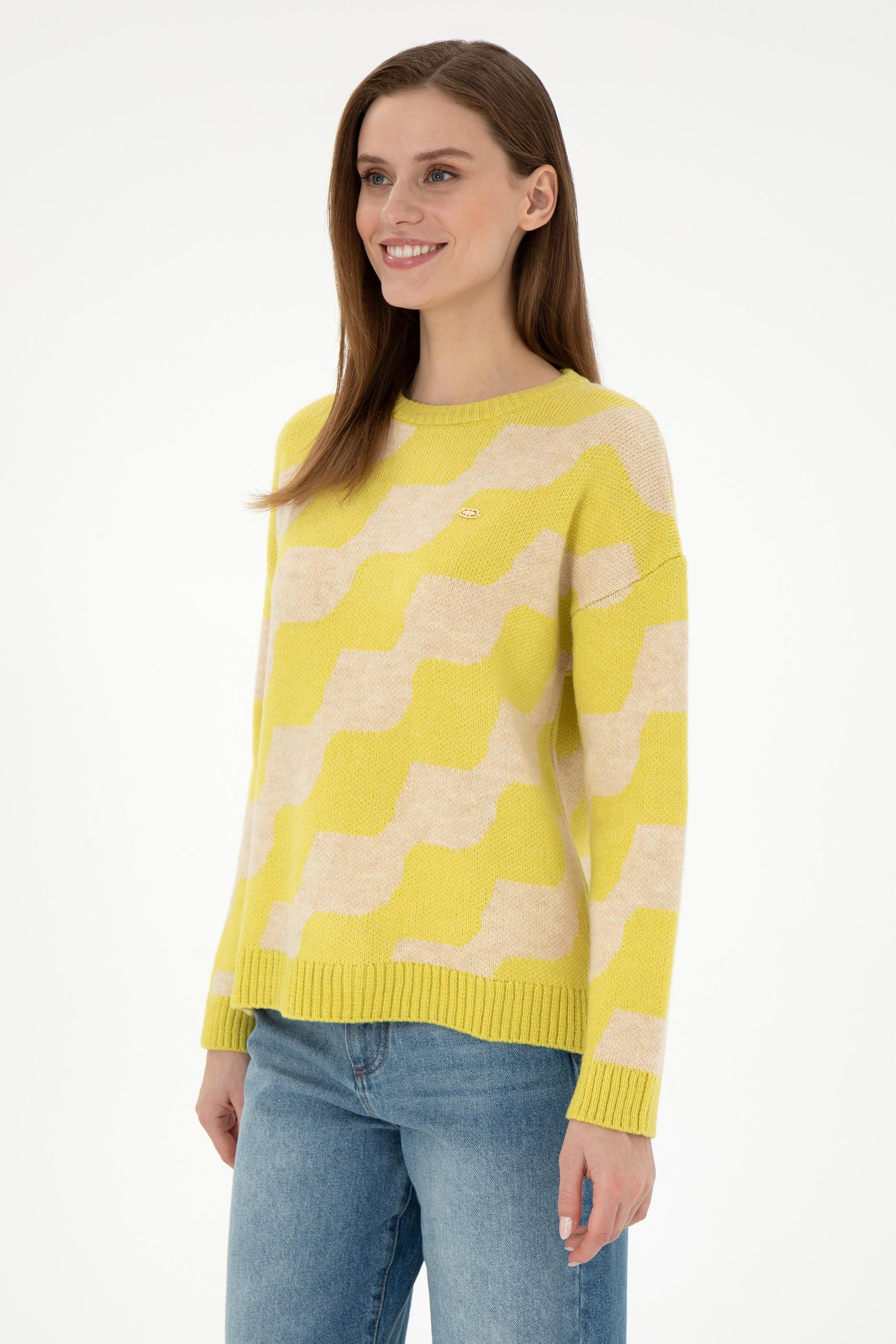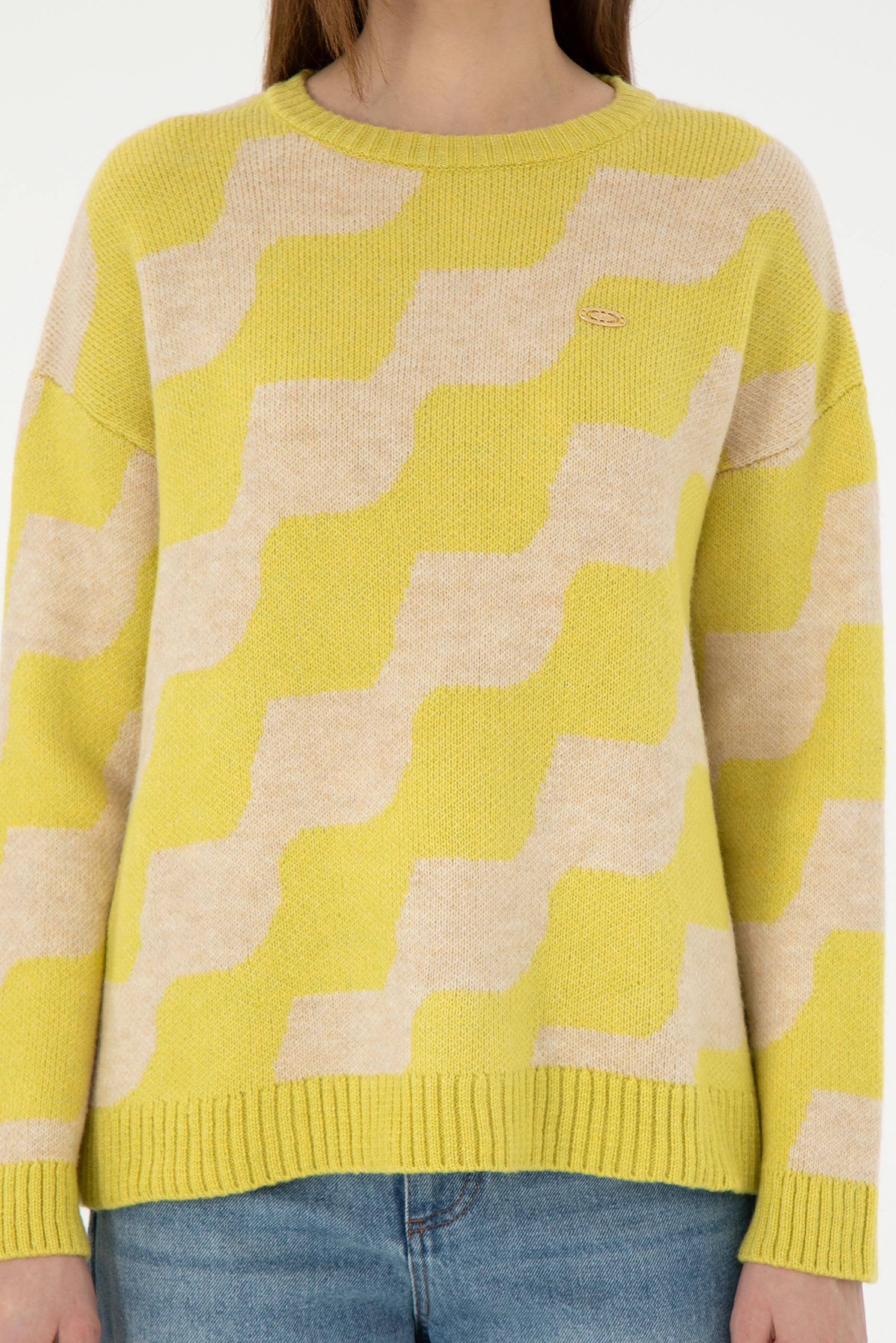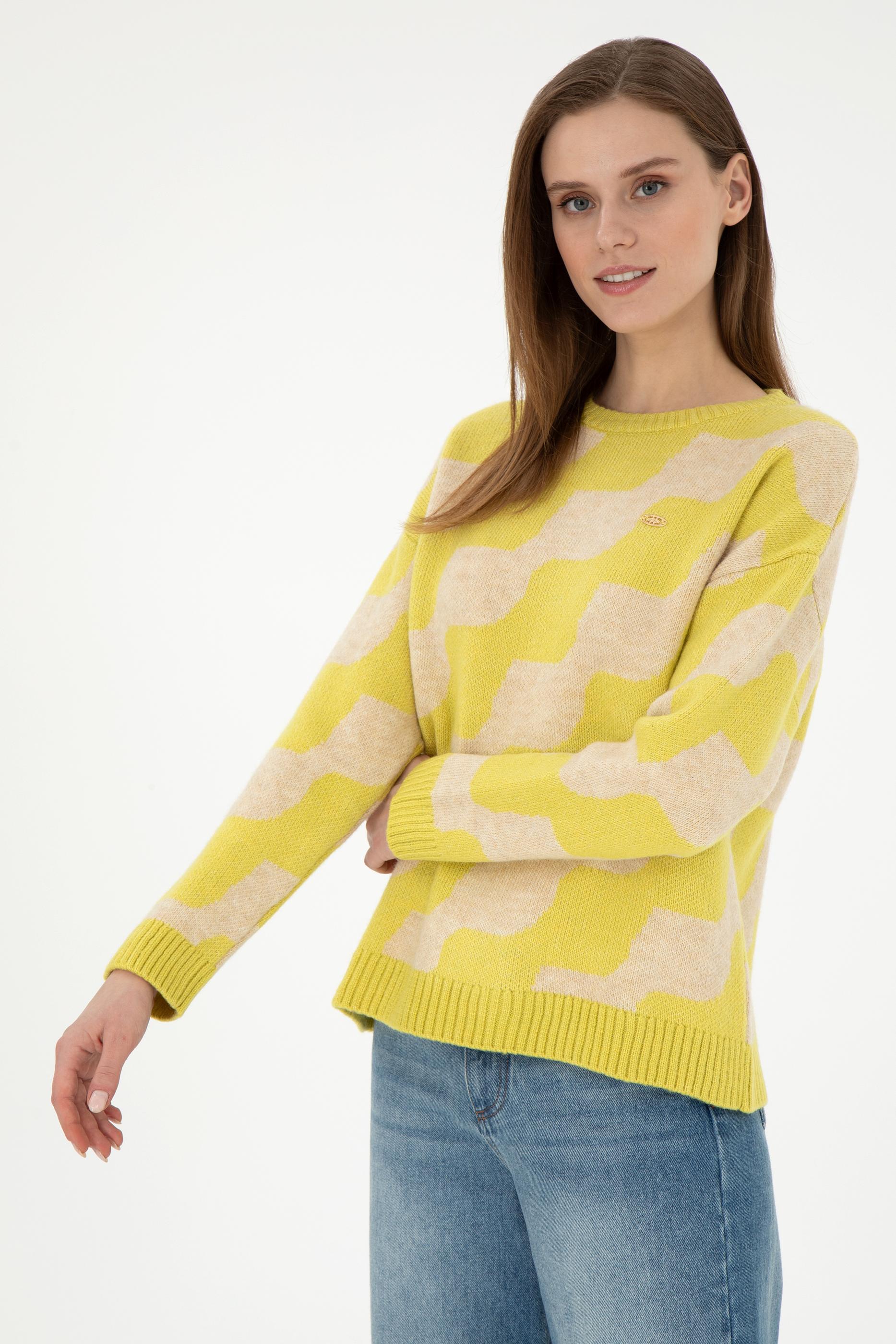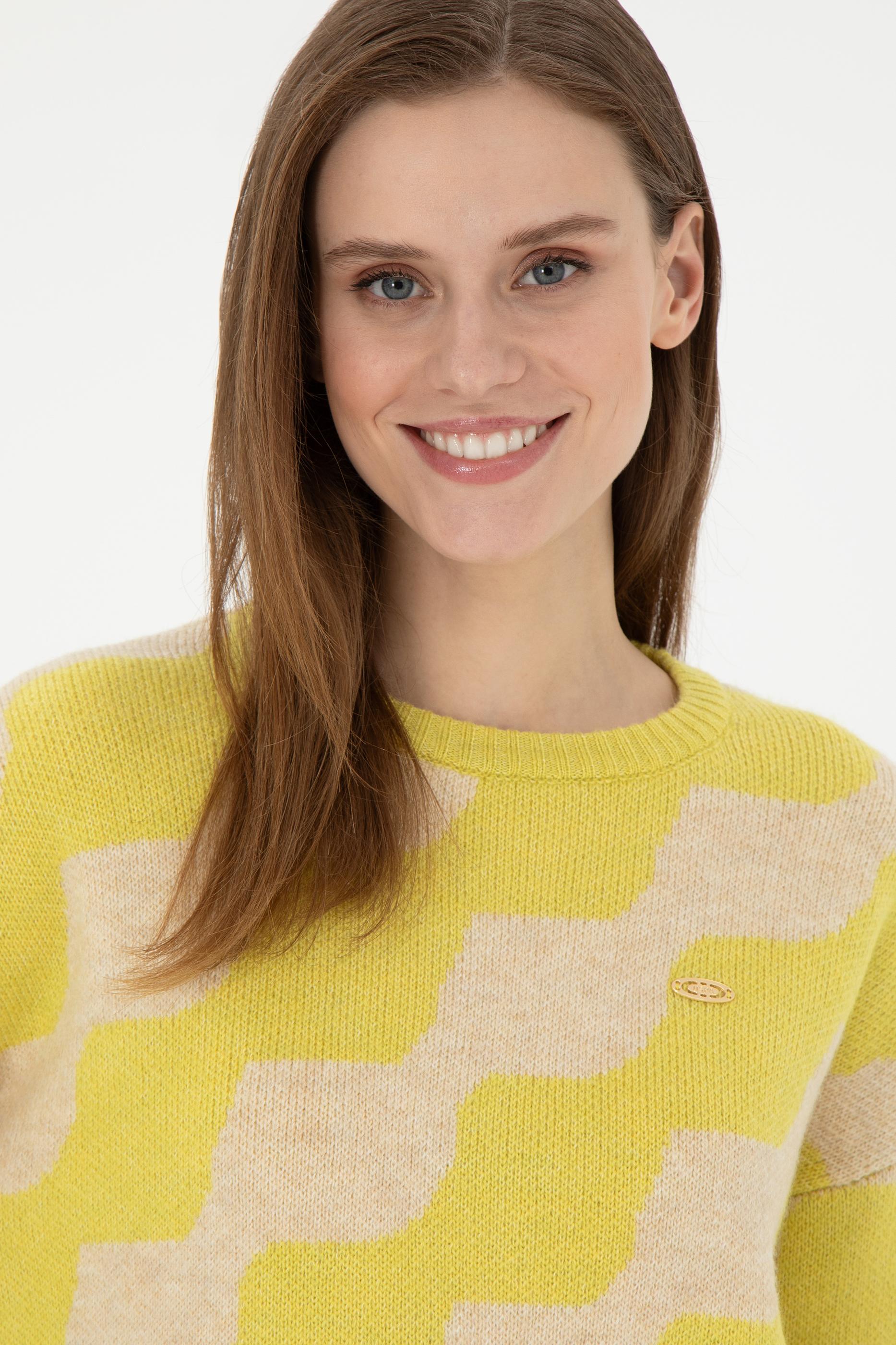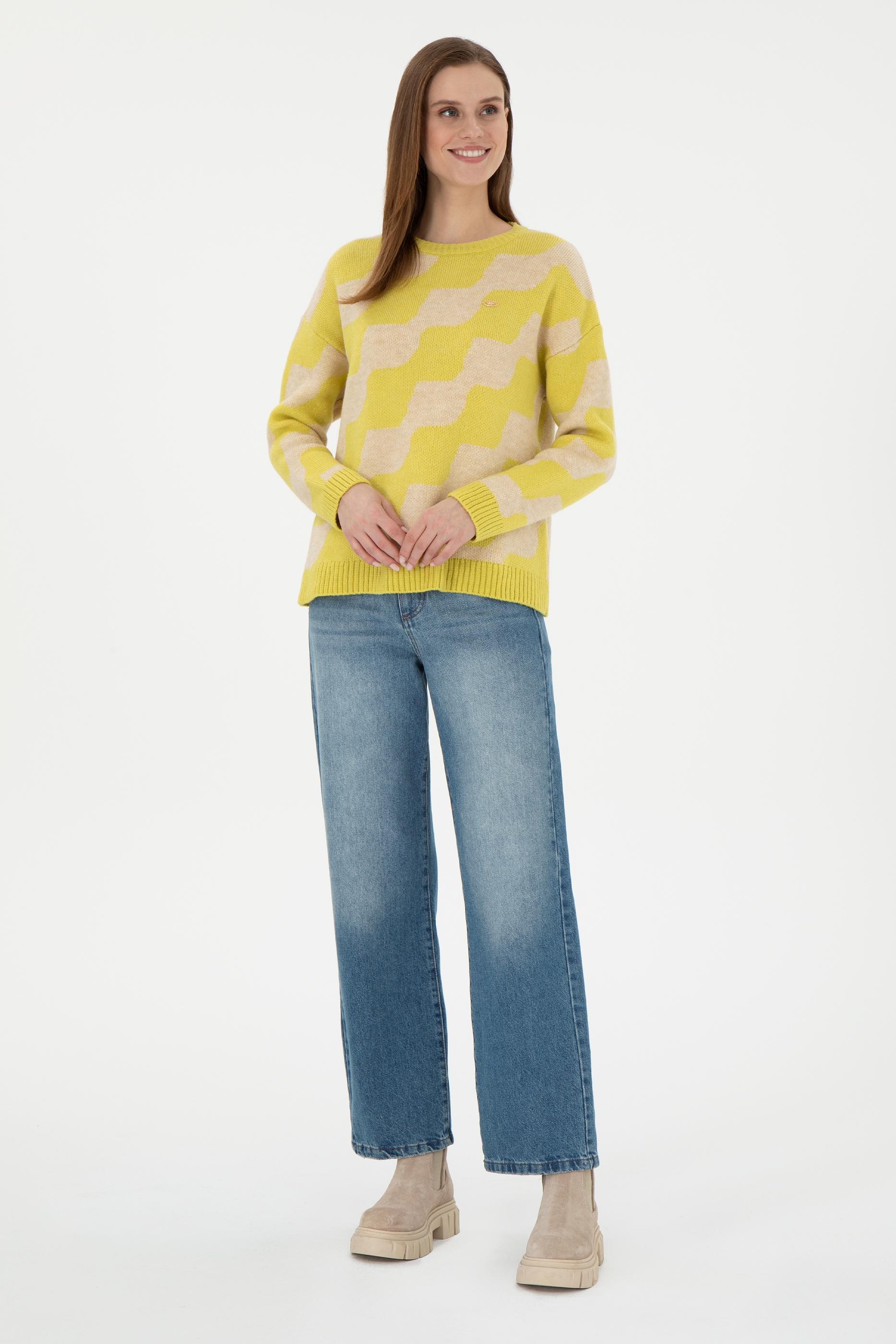 Kadın Fıstık Yeşili Bisiklet Yaka Kazak