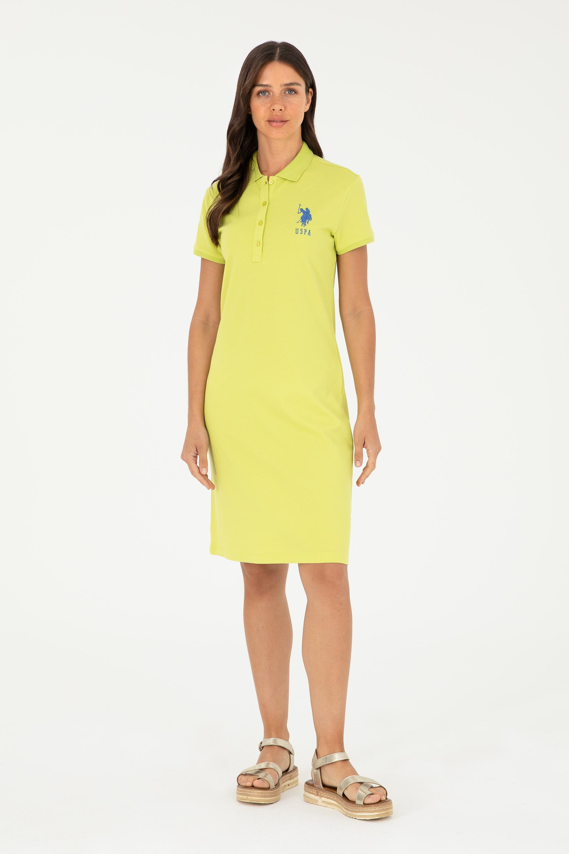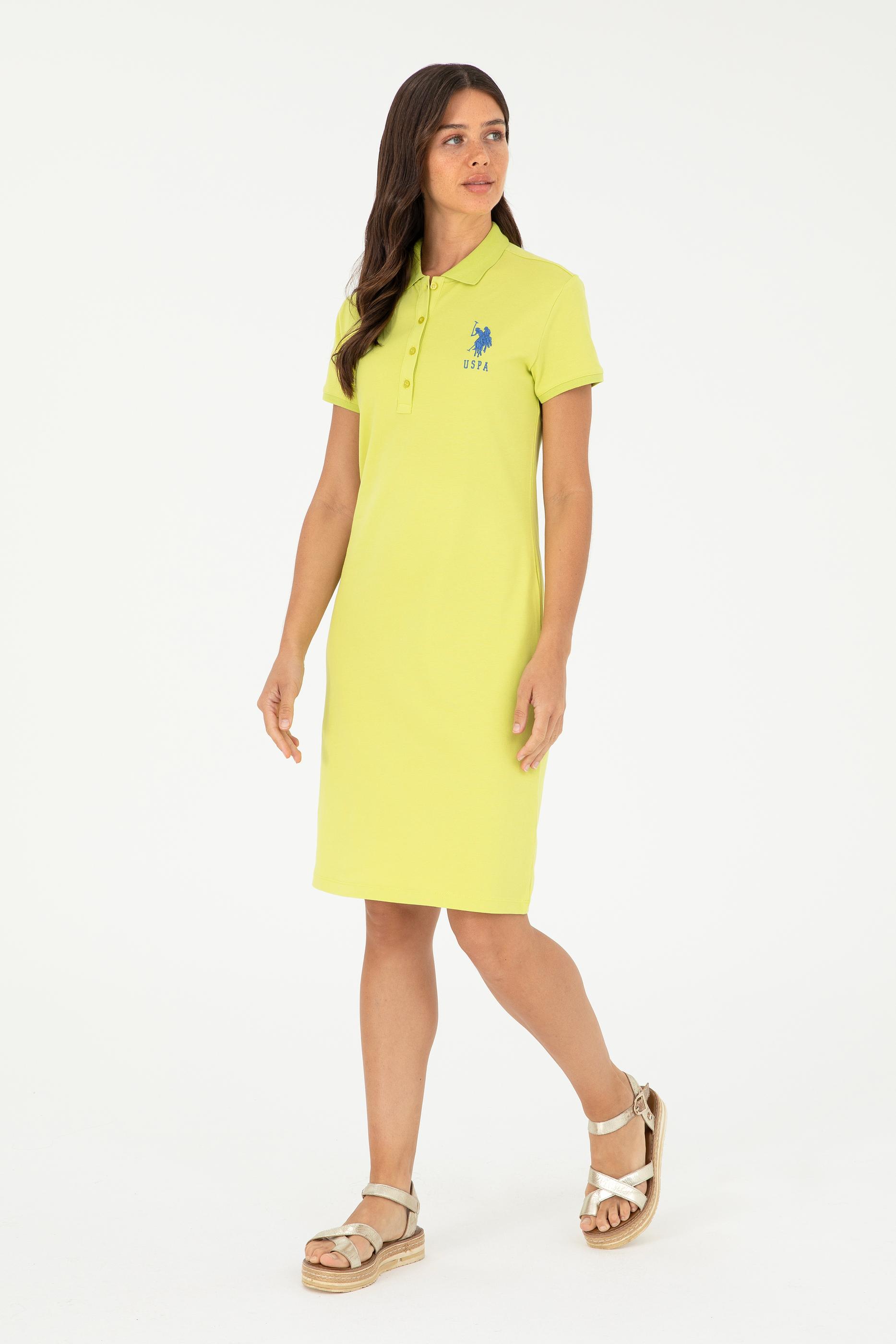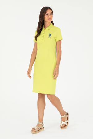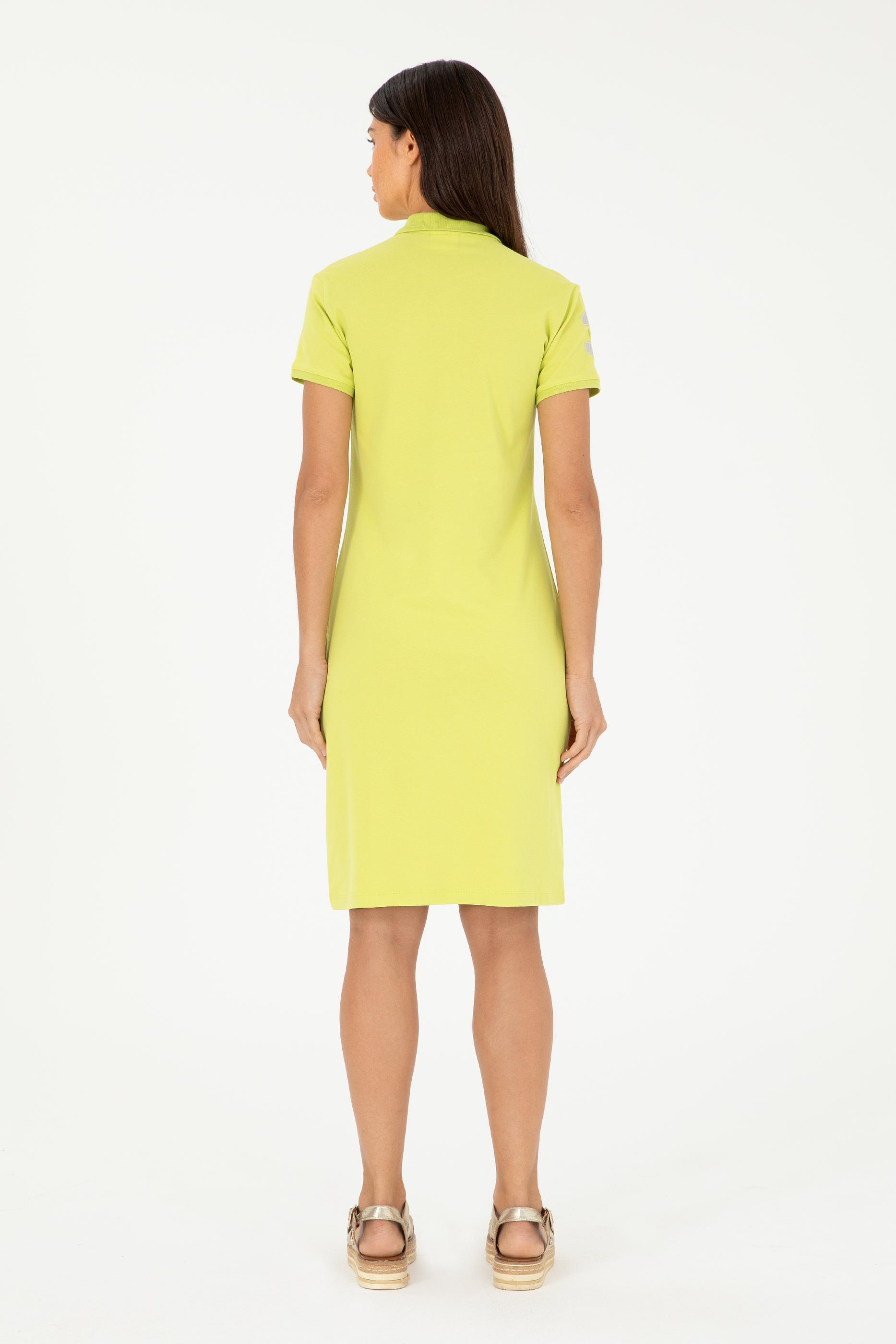 Kadın Fıstık Yeşili Polo Yaka Mini Boy Örme Elbise