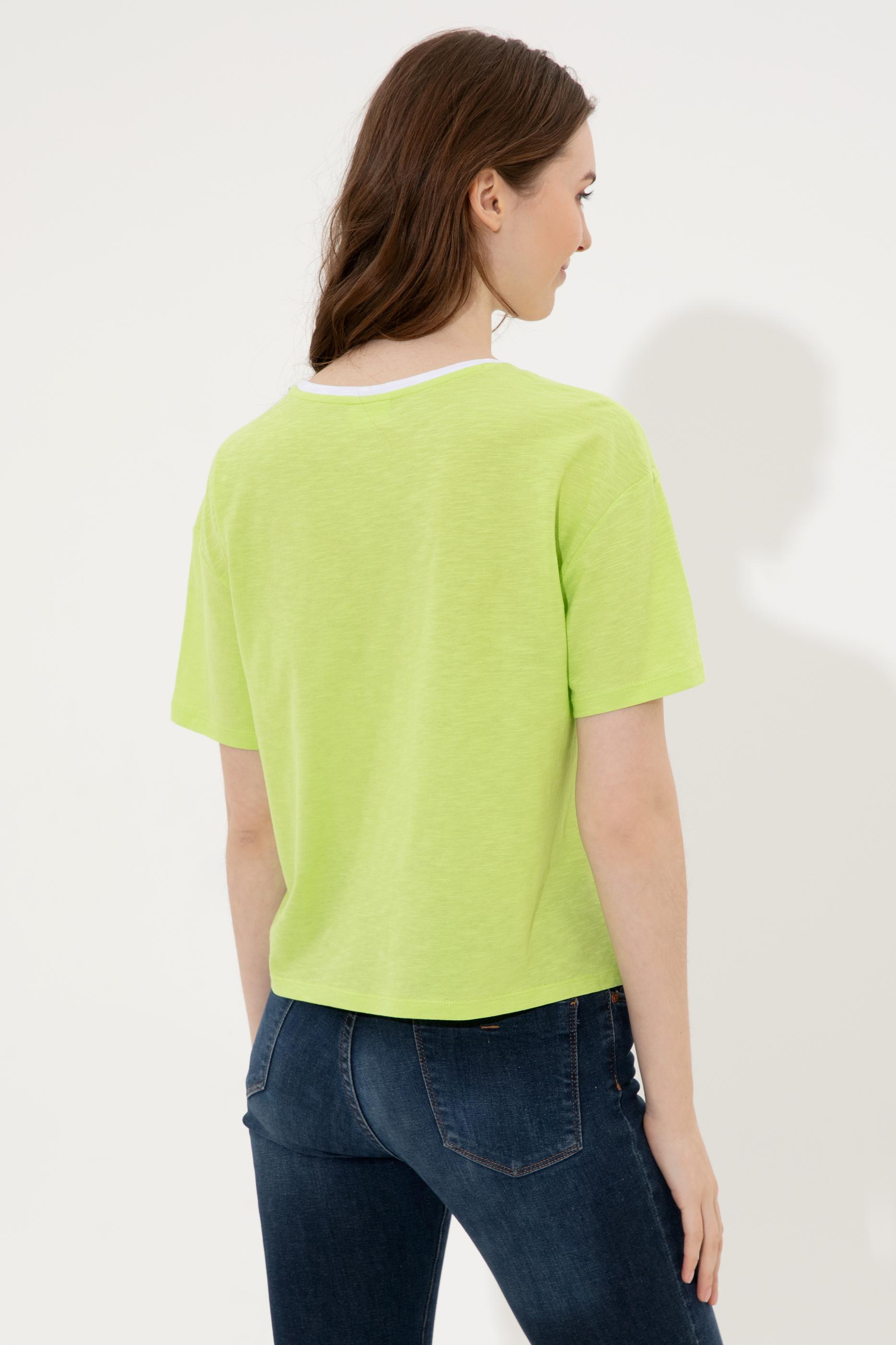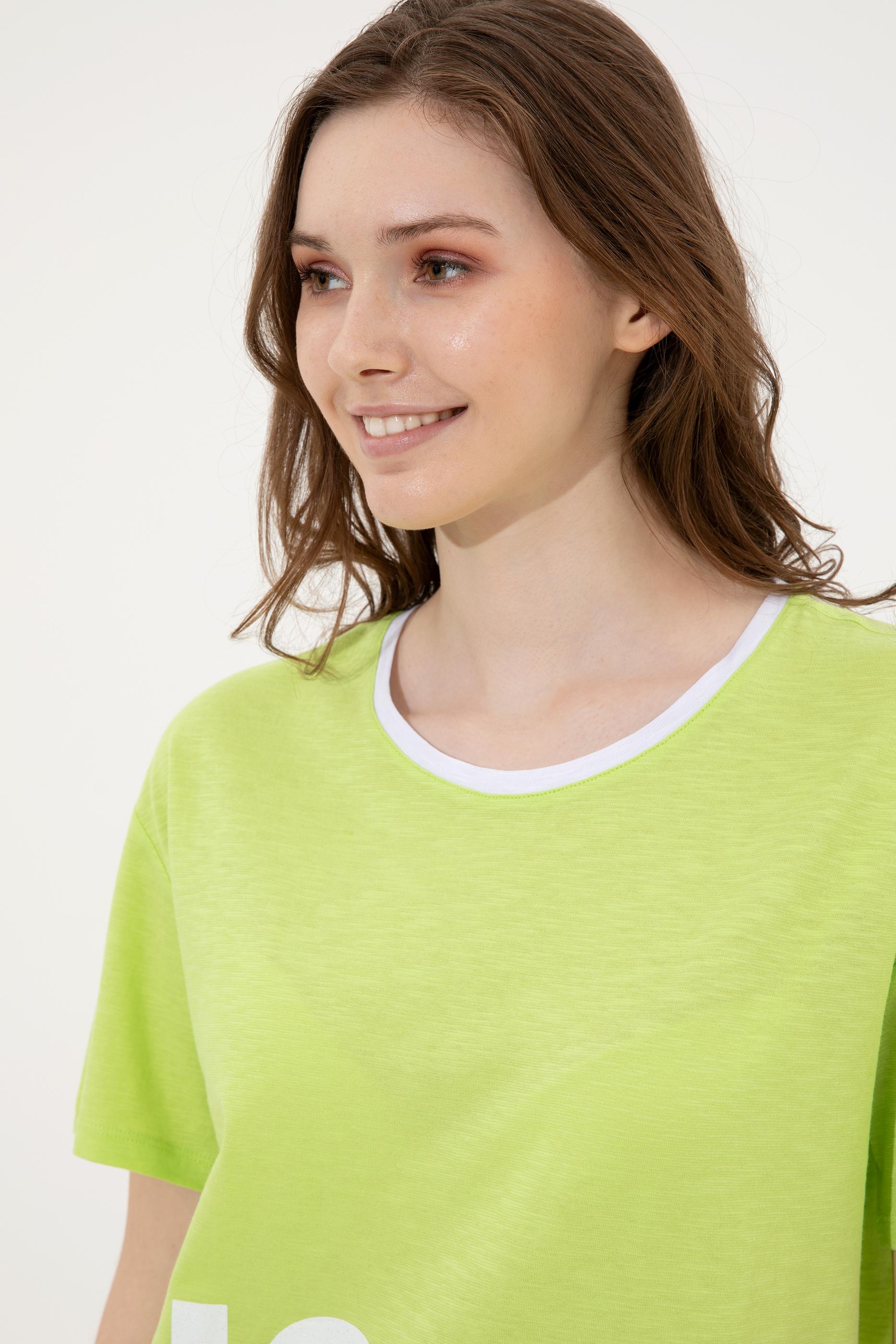 Kadın Fıstık Yeşili Bisiklet Yaka Tişört