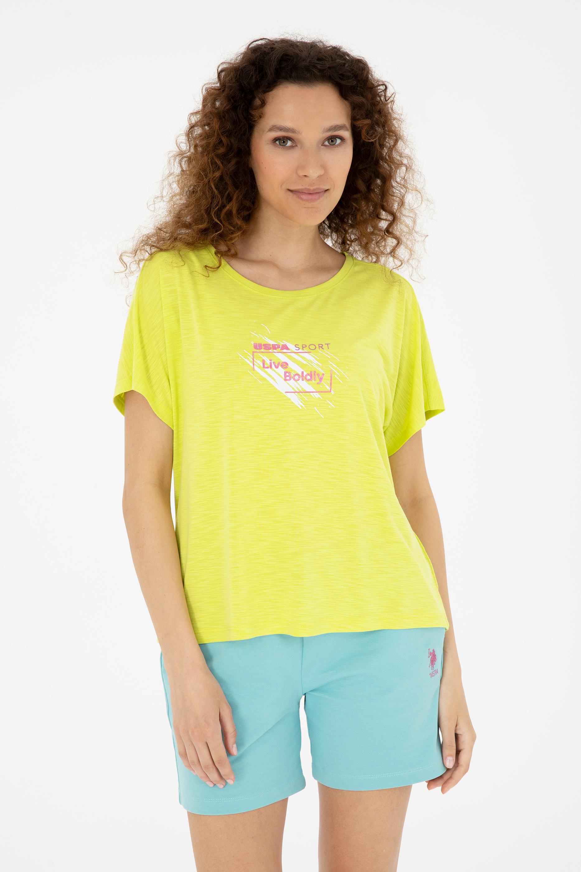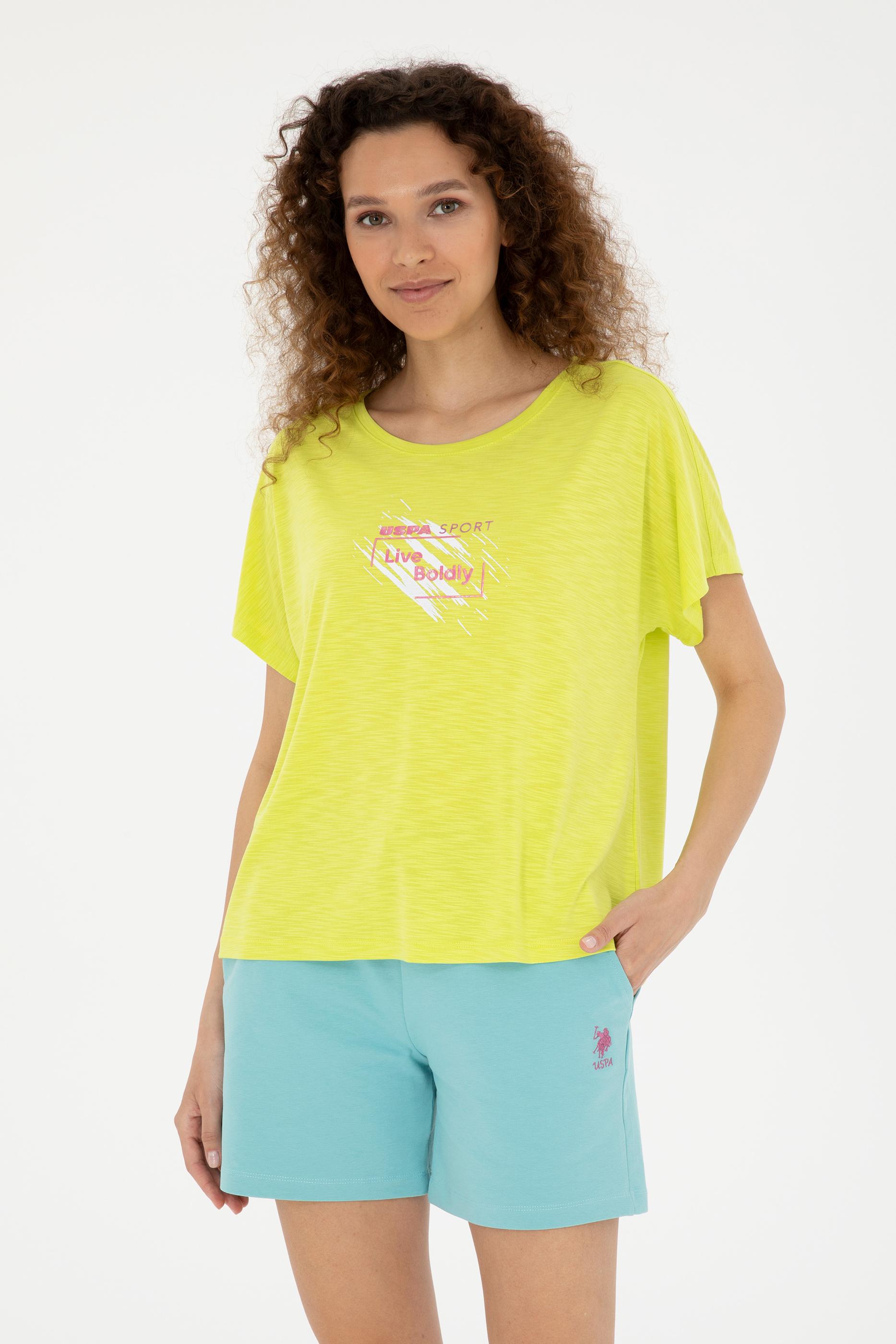 - Kadın Fıstık Yeşili Bisiklet Yaka Tişört
