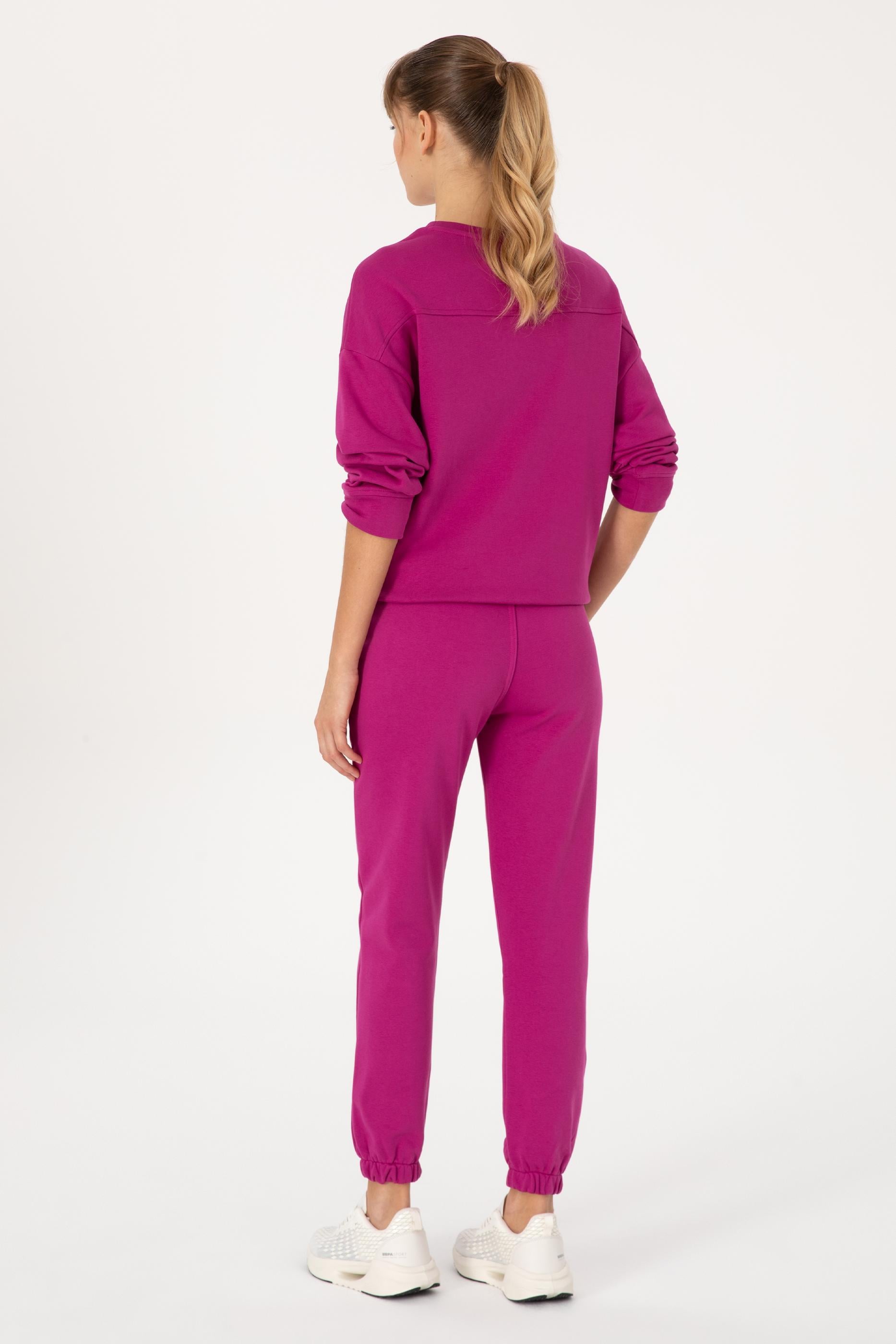 Canlı fuşya rengiyle enerjiyi ve dinamizmi stilinize taşıyan bu örme pantolon, slim kesimi sayesinde vücuda zarif bir şekilde oturarak modern ve çekici bir siluet oluşturuyor. Düz tasarımı, güçlü rengi ön plana çıkarırken her ortamda dikkat çekici bir duruş sergilemenize yardımcı oluyor. Yumuşak ve esnek dokusu, gün boyu rahatlık sağlarken hareket özgürlüğünden ödün vermemenizi garanti ediyor. Mevsim fark etmeksizin kullanılabilecek hafif yapısı, sneaker’larla enerjik bir şehir stili ya da topuklularla iddialı ve sofistike bir görünüm yaratma imkânı sunuyor. Sadece online’a özel olarak sunulan bu özel parça, gardırobunuza cesur ve modern bir dokunuş katmak için ideal bir seçim.