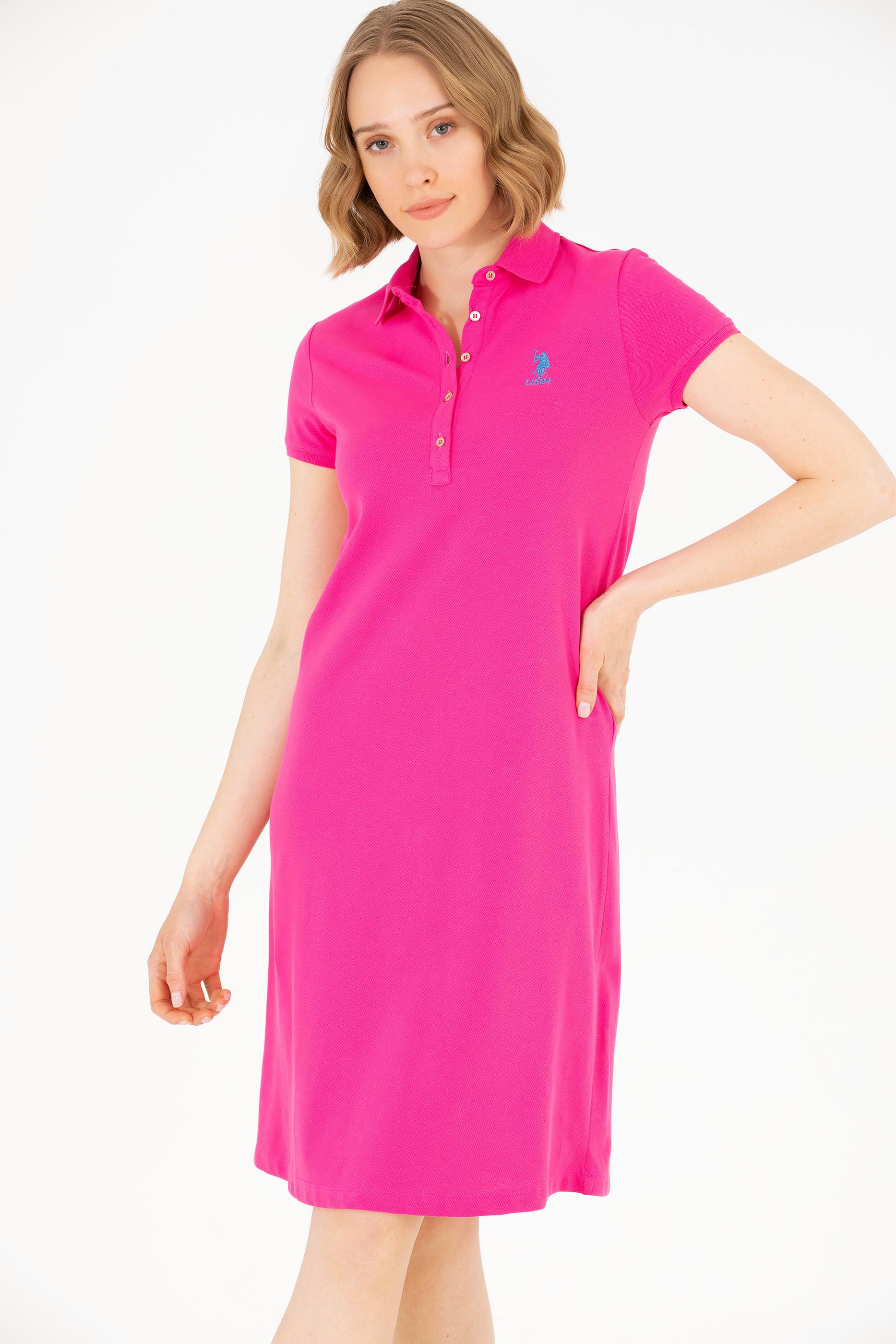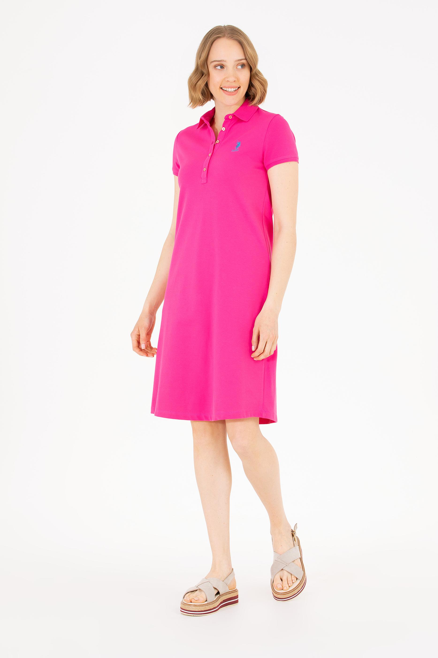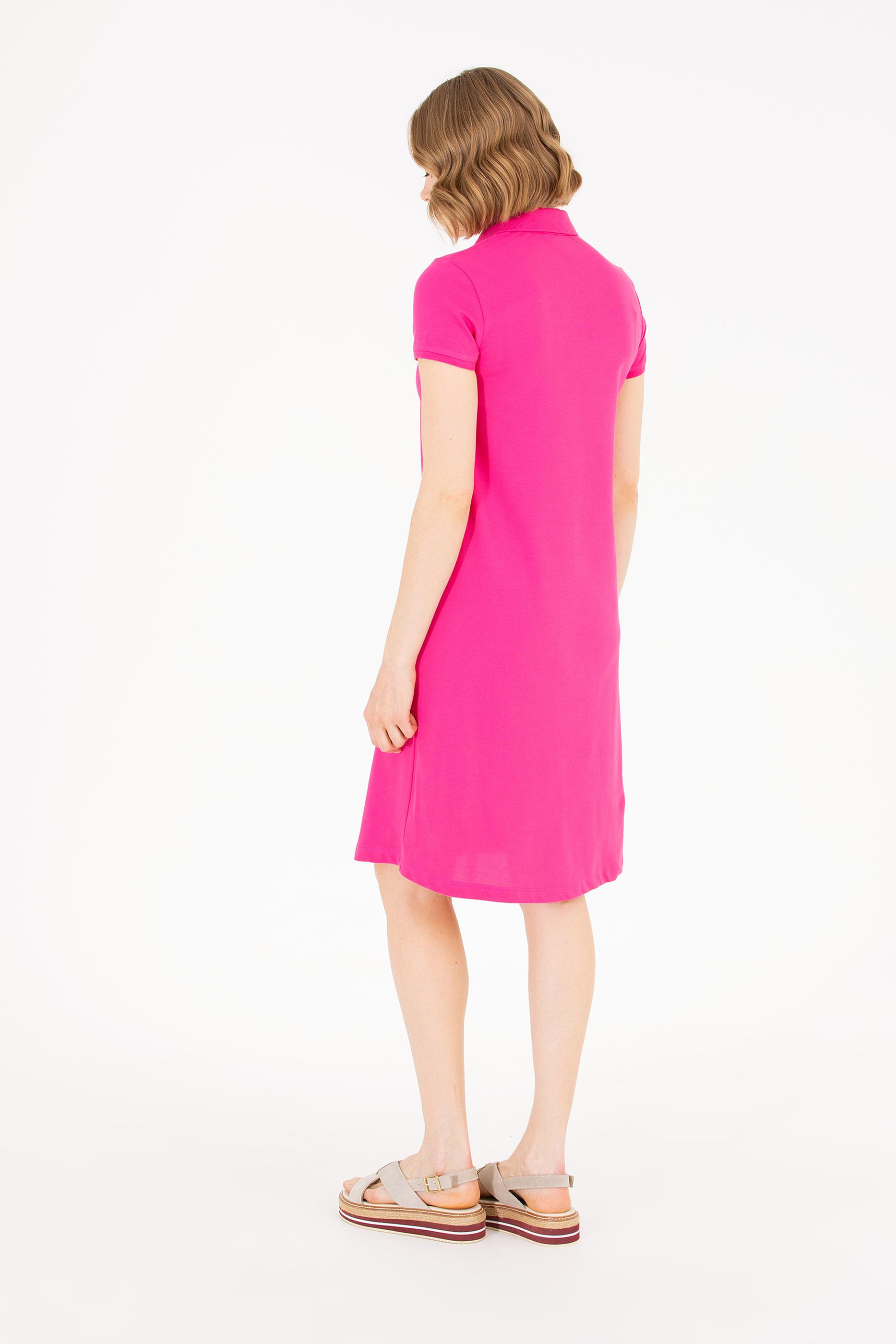 - Kadın Fuşya Polo Yaka Mini Boy Örme Elbise