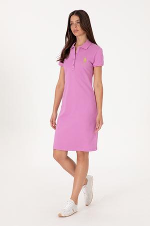 Kadın Fuşya Polo Yaka Mini Boy Örme Elbise