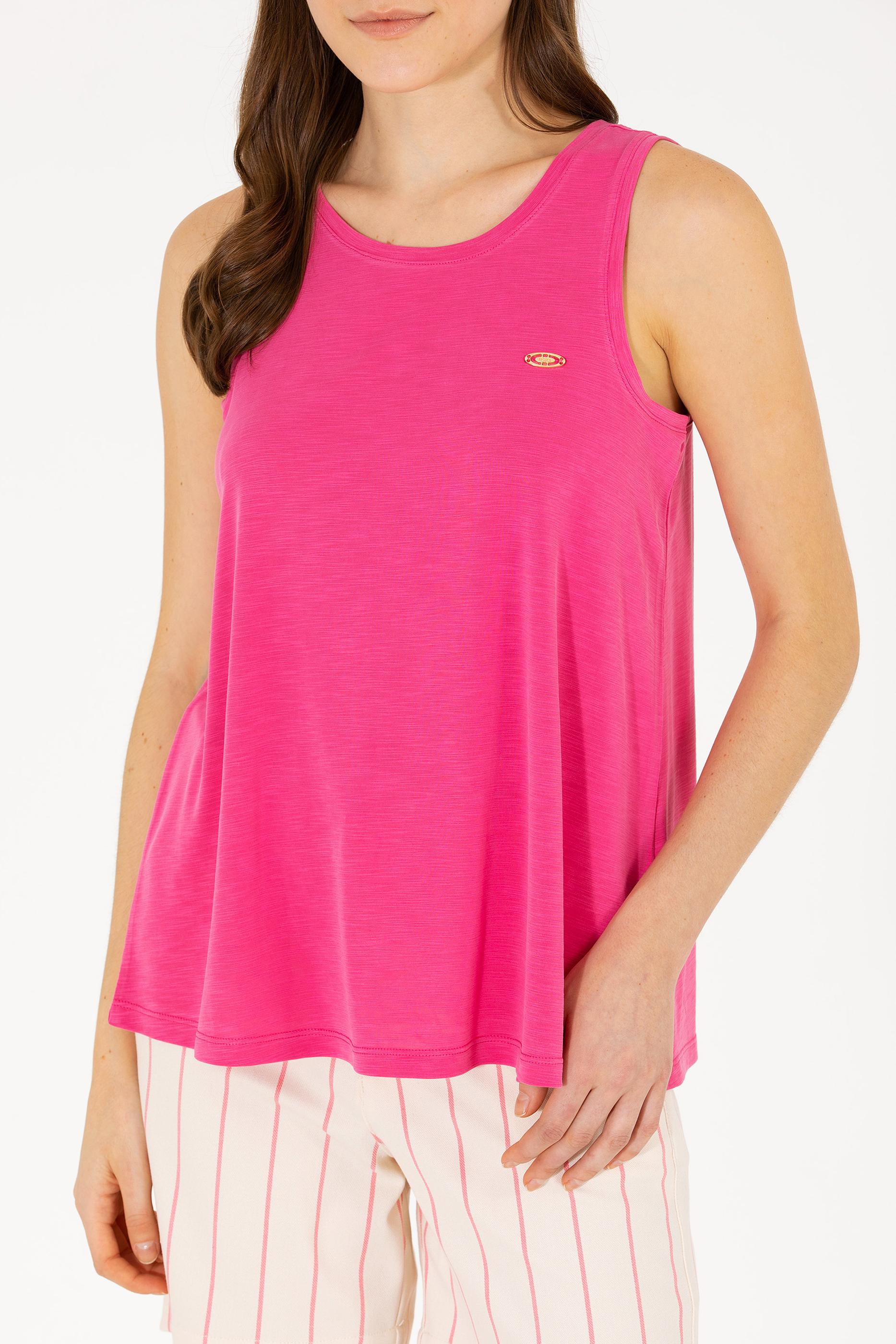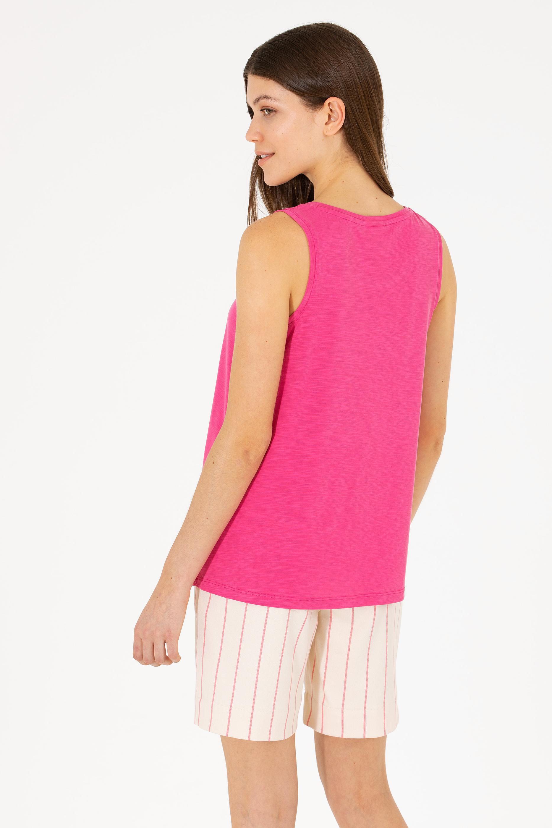 Kadın Fuşya Bisiklet Yaka Kolsuz Tişört