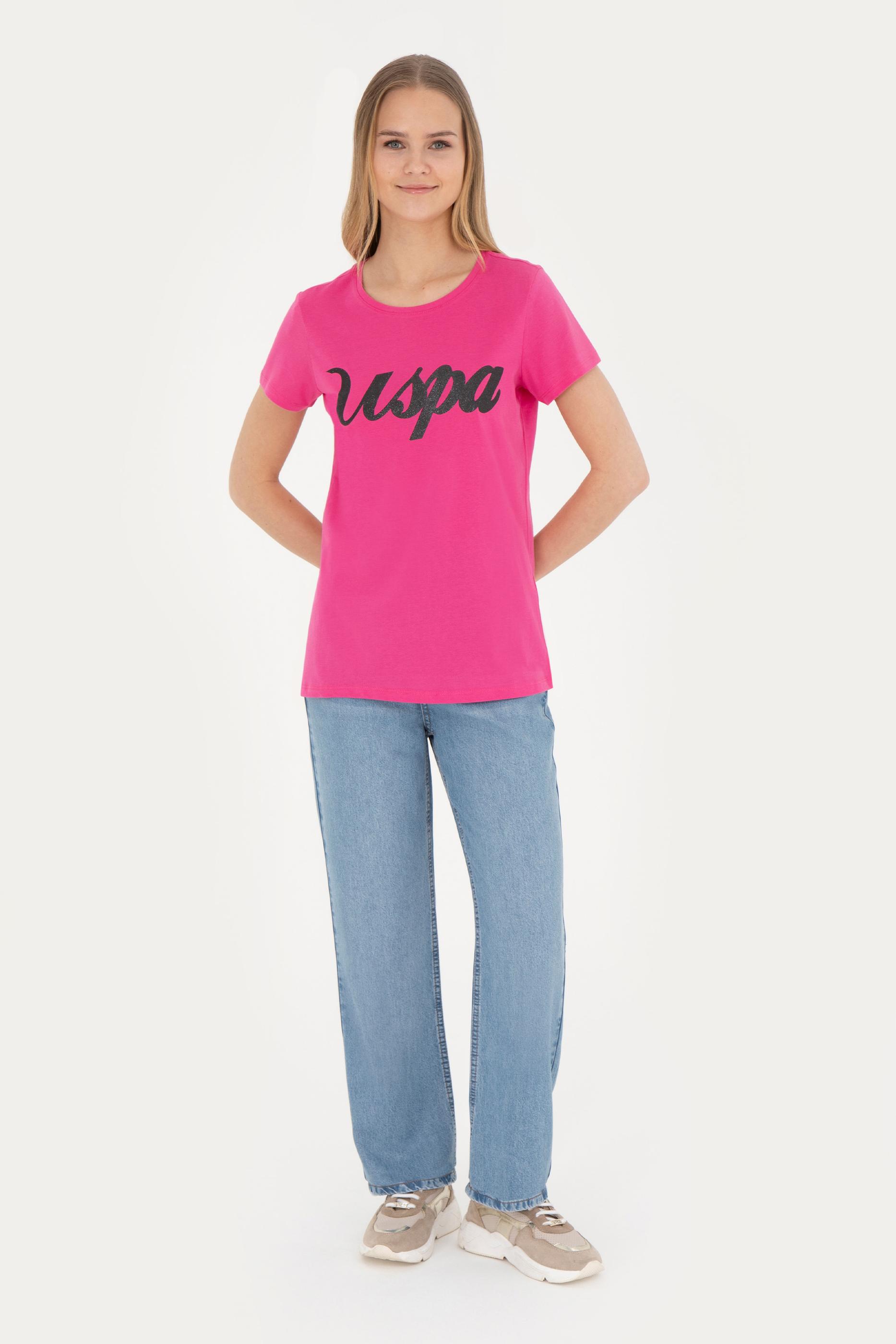 Kadın Fuşya Bisiklet Yaka Tişört
