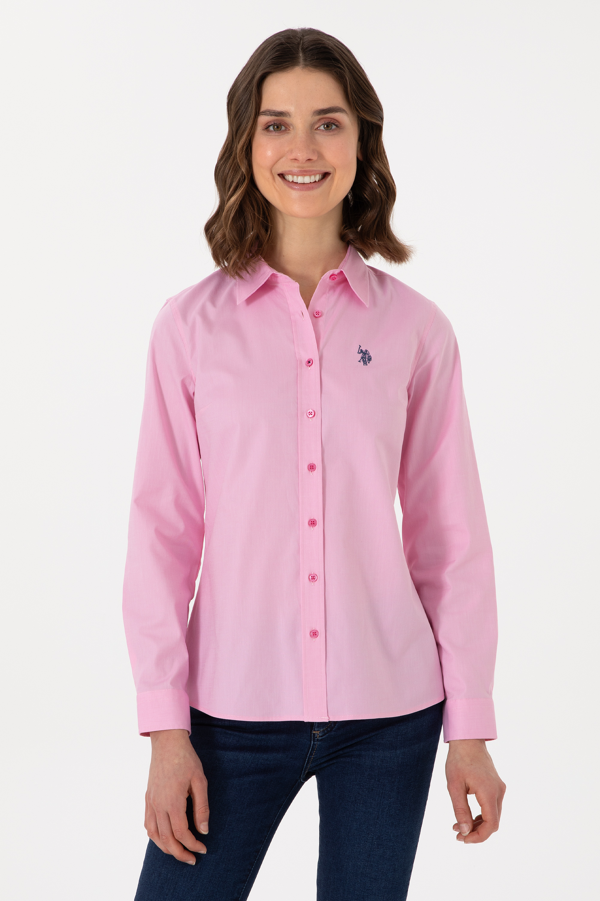 - Kadın Fuşya Uzun Kollu Basic Gömlek