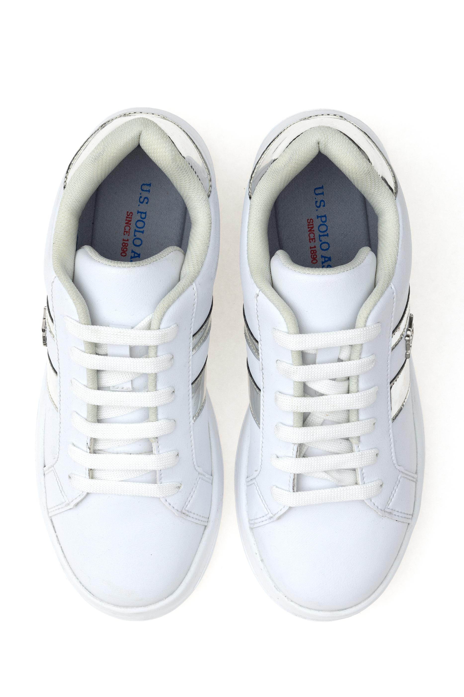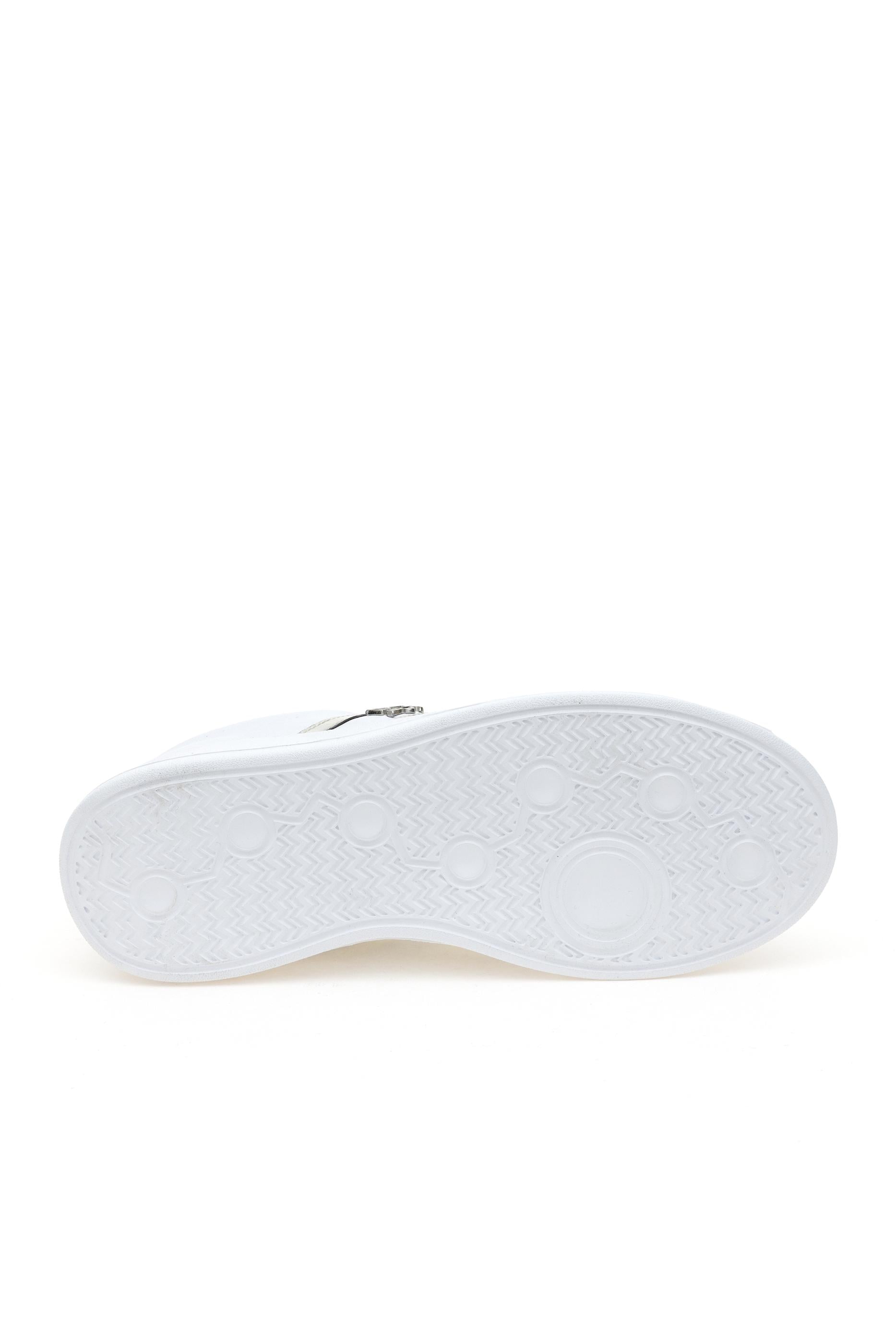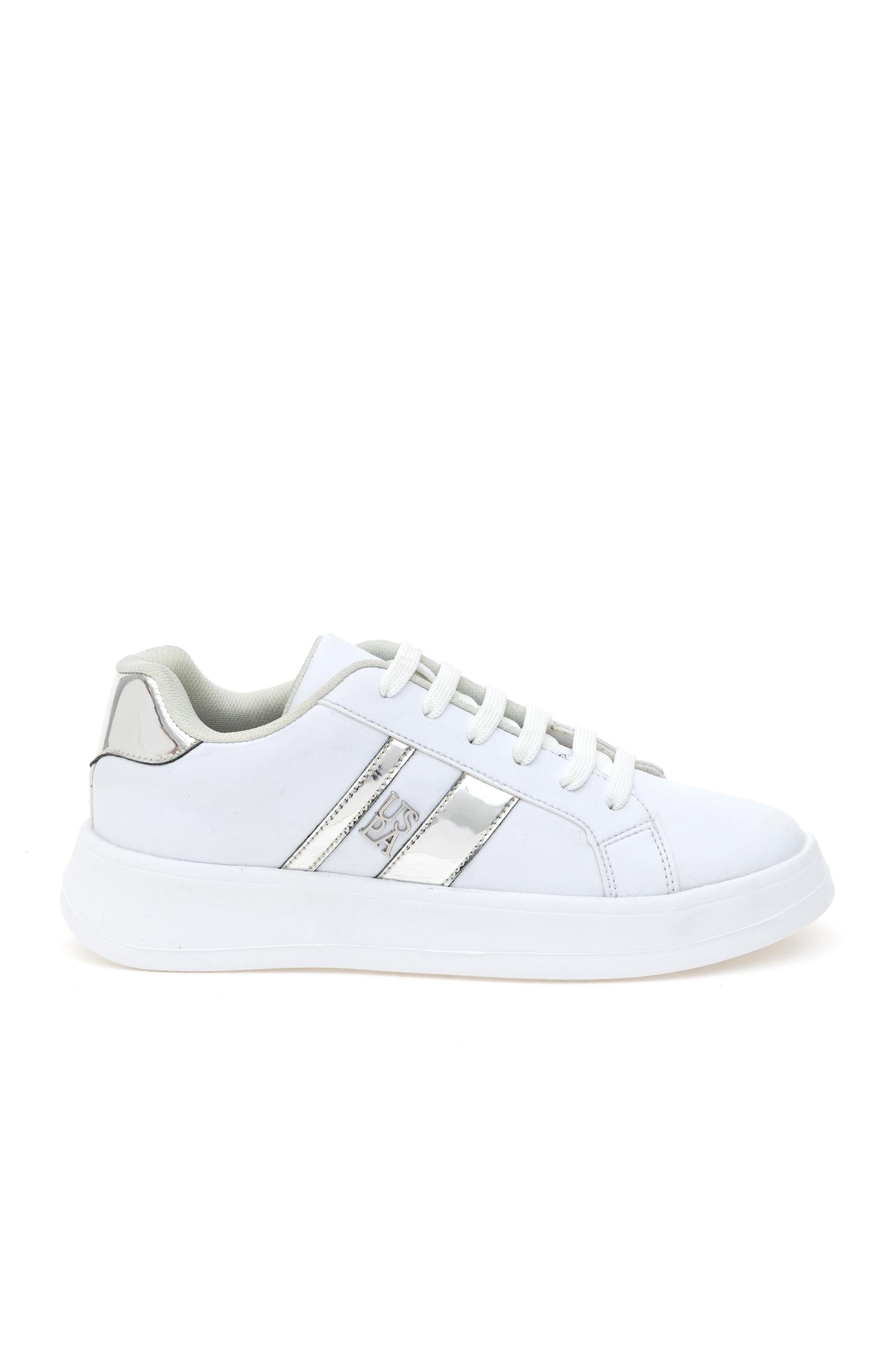 Hafifliği ve şık detaylarıyla dikkat çeken kadın sneaker, beyaz ve gümüş renk uyumuyla zarif bir görünüm sunar. Günlük kullanımda rahatlık sağlarken, modern tasarımıyla stil sahibi bir duruş kazandırır. Sneaker, yumuşak dokulu üst yüzeyiyle ayağı nazikçe sararak konforlu bir deneyim sunar. Deri görünümlü materyali, dayanıklılığı artırırken pürüzsüz bir his bırakır. Bağcıklı yapısı sayesinde ayağa tam uyum sağlayarak destekleyici bir yapı sunar. Yan kısımlarda yer alan gümüş rengi şerit detayları, modeli hareketlendirerek dinamik bir tarz oluşturur. Aynı zamanda küçük metal logo detayı, tasarıma şık bir dokunuş ekler. Taban kısmı, yürüyüş sırasında dengeyi koruyan hafif ve esnek bir yapıya sahiptir. Kalın ve yumuşak orta taban, ayağı yormadan uzun süreli konfor sunar. Beyaz renkli dış tabanı, zemin tutuşunu artıran özel bir malzemeyle üretilerek güvenli bir kullanım sağlar. İç astarı ise nefes alabilen bir yapıya sahip olup, gün boyu ferahlık hissi sunar. Gümüş rengi detaylarla hareketlendirilen sneaker modeli, sade ama etkileyici bir tarz arayanlar için ideal bir seçenek sunar. Günlük kombinlerden sportif şıklığa kadar geniş bir kullanım alanına uyum sağlayarak, her adımda konfor ve estetik bir denge oluşturur.