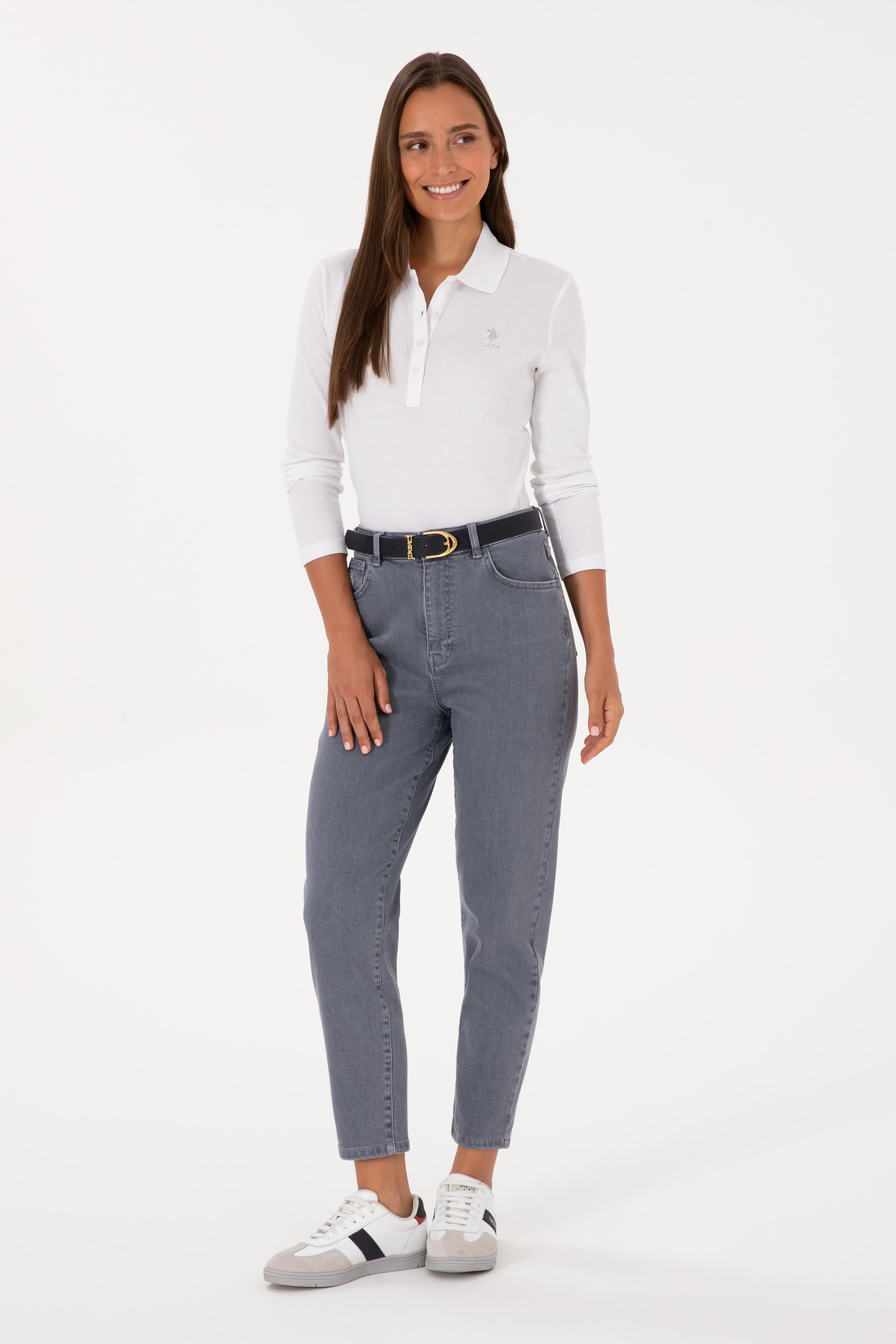 - Kadın Gri Mom High Waist Fit Jean Pantolon