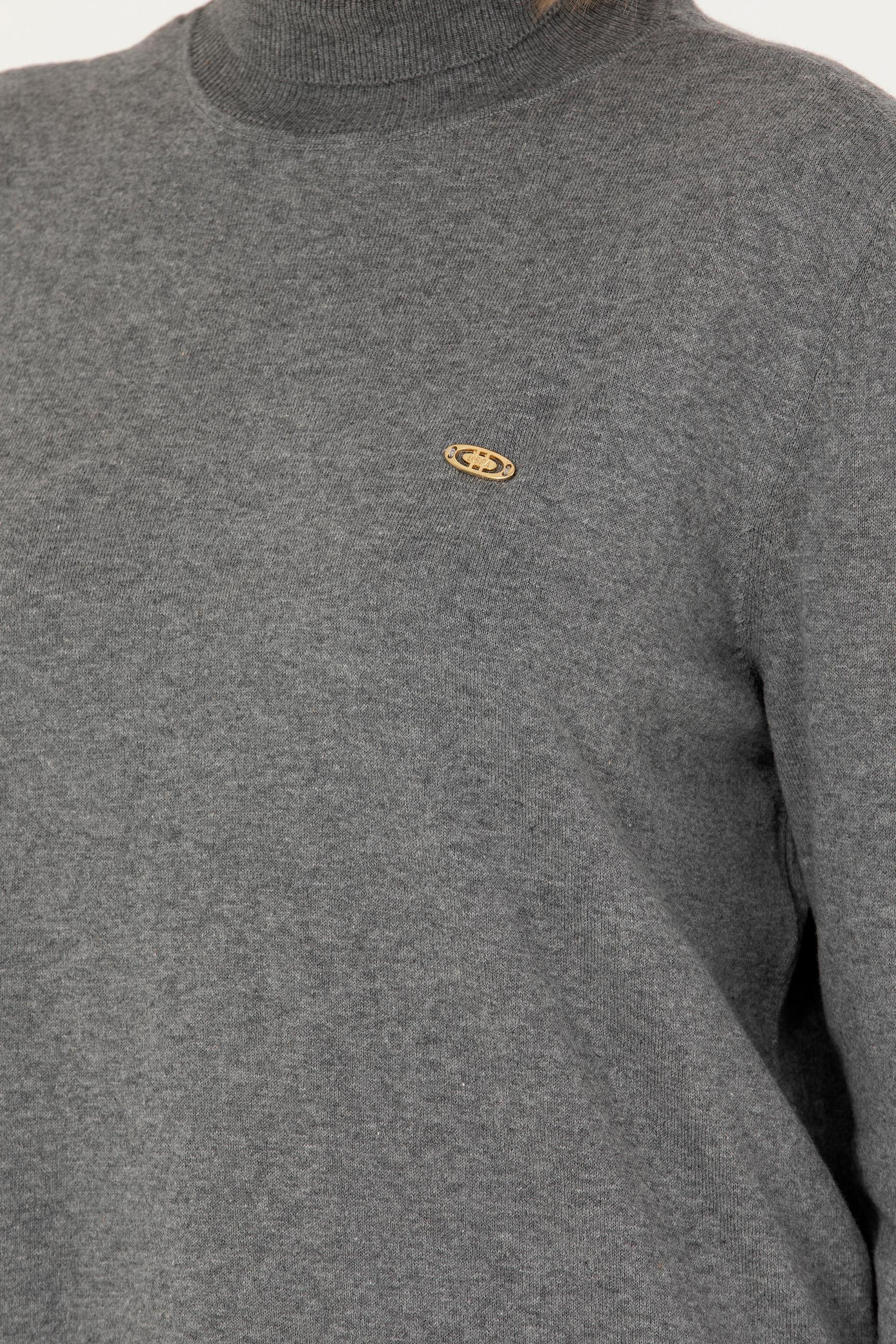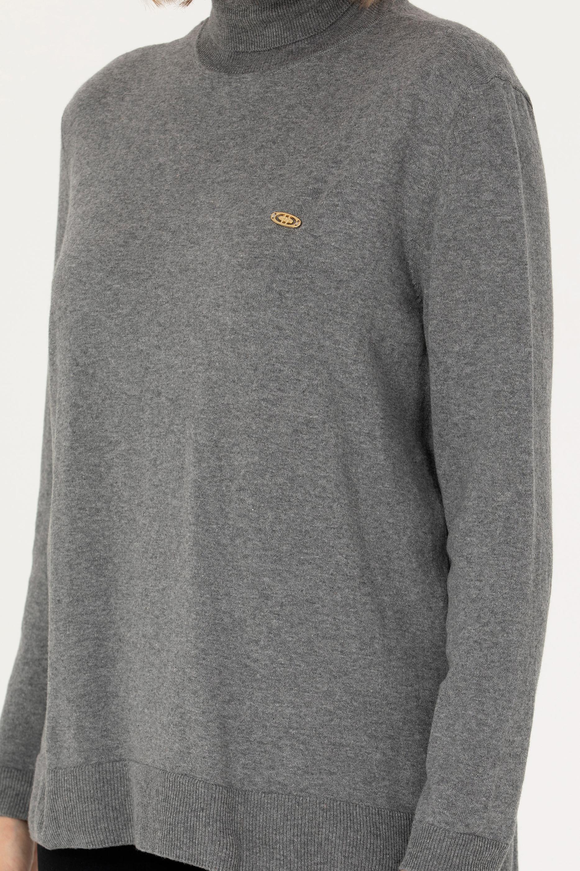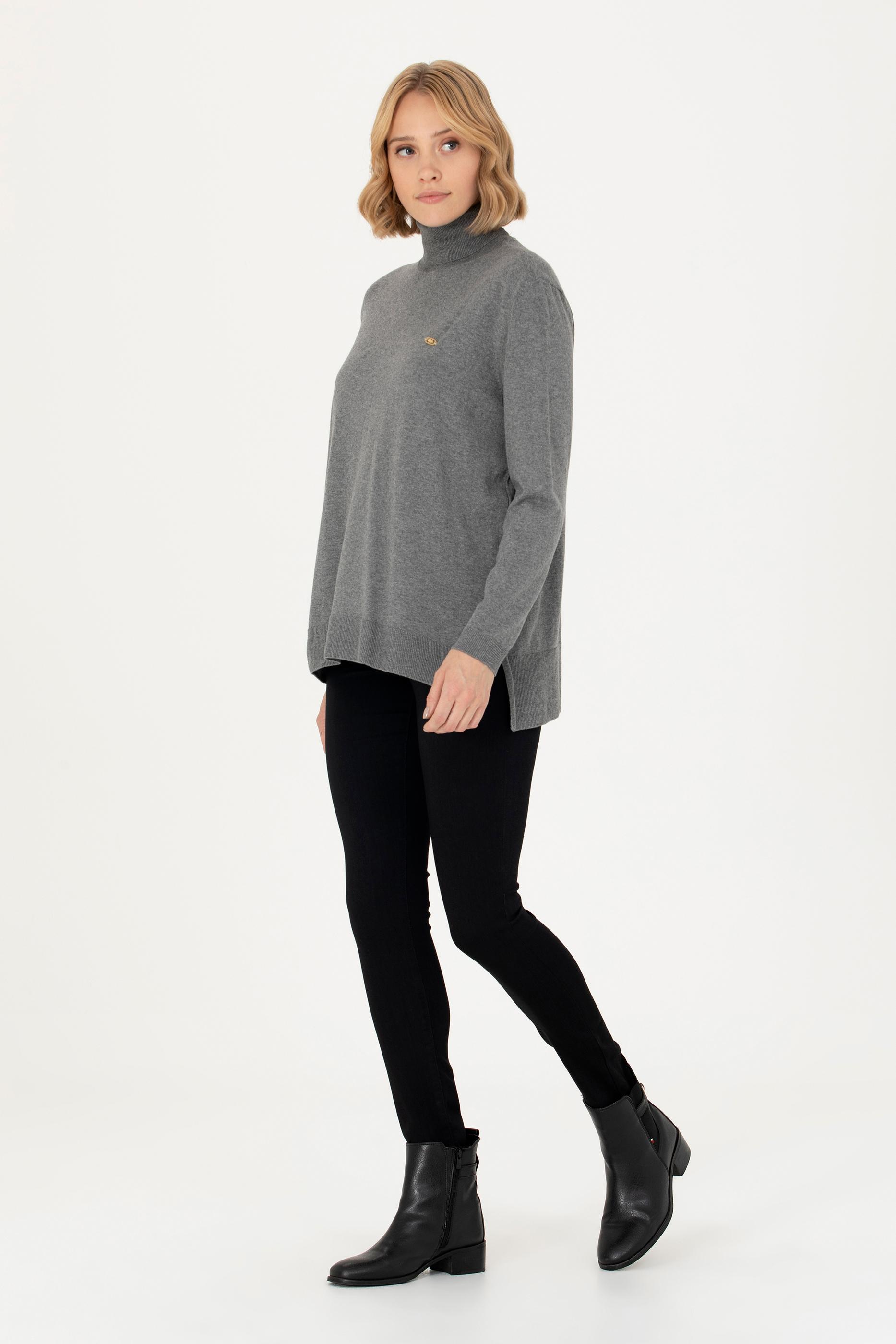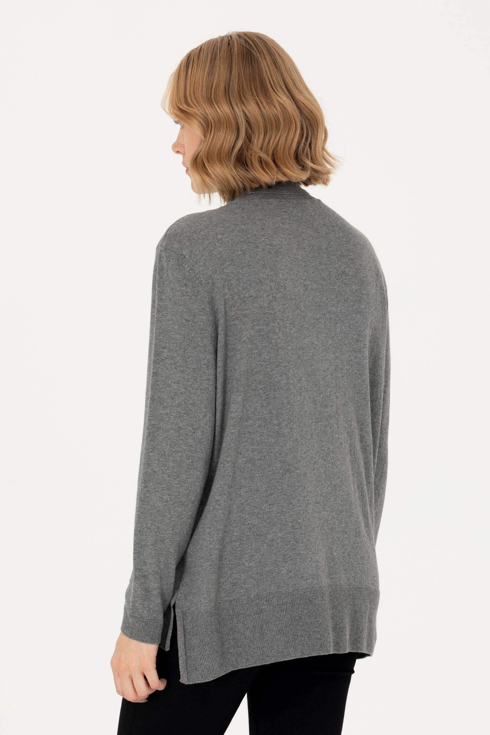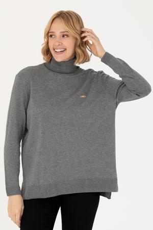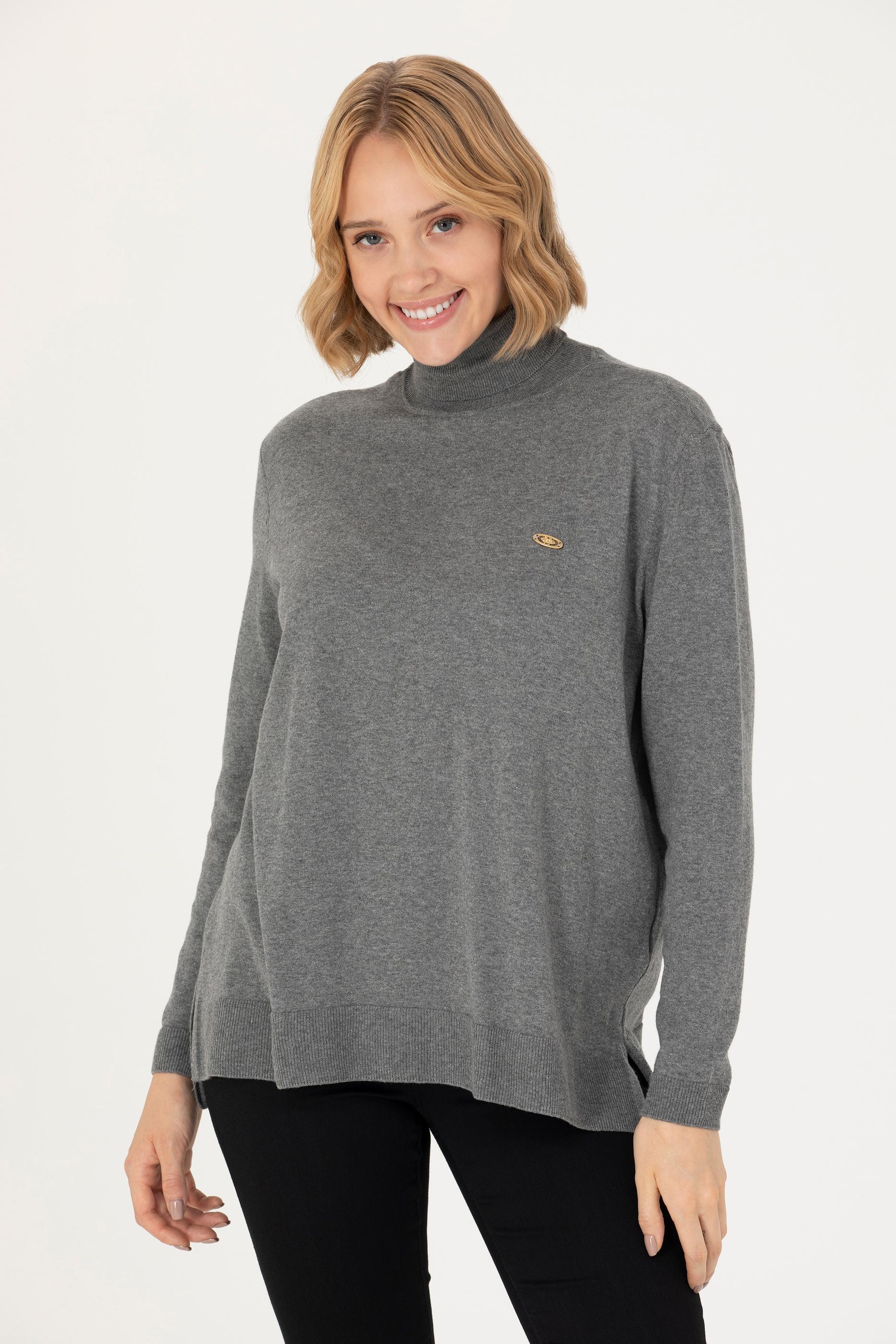 Kadın Gri Melanj Balıkçı Yaka Basic Kazak