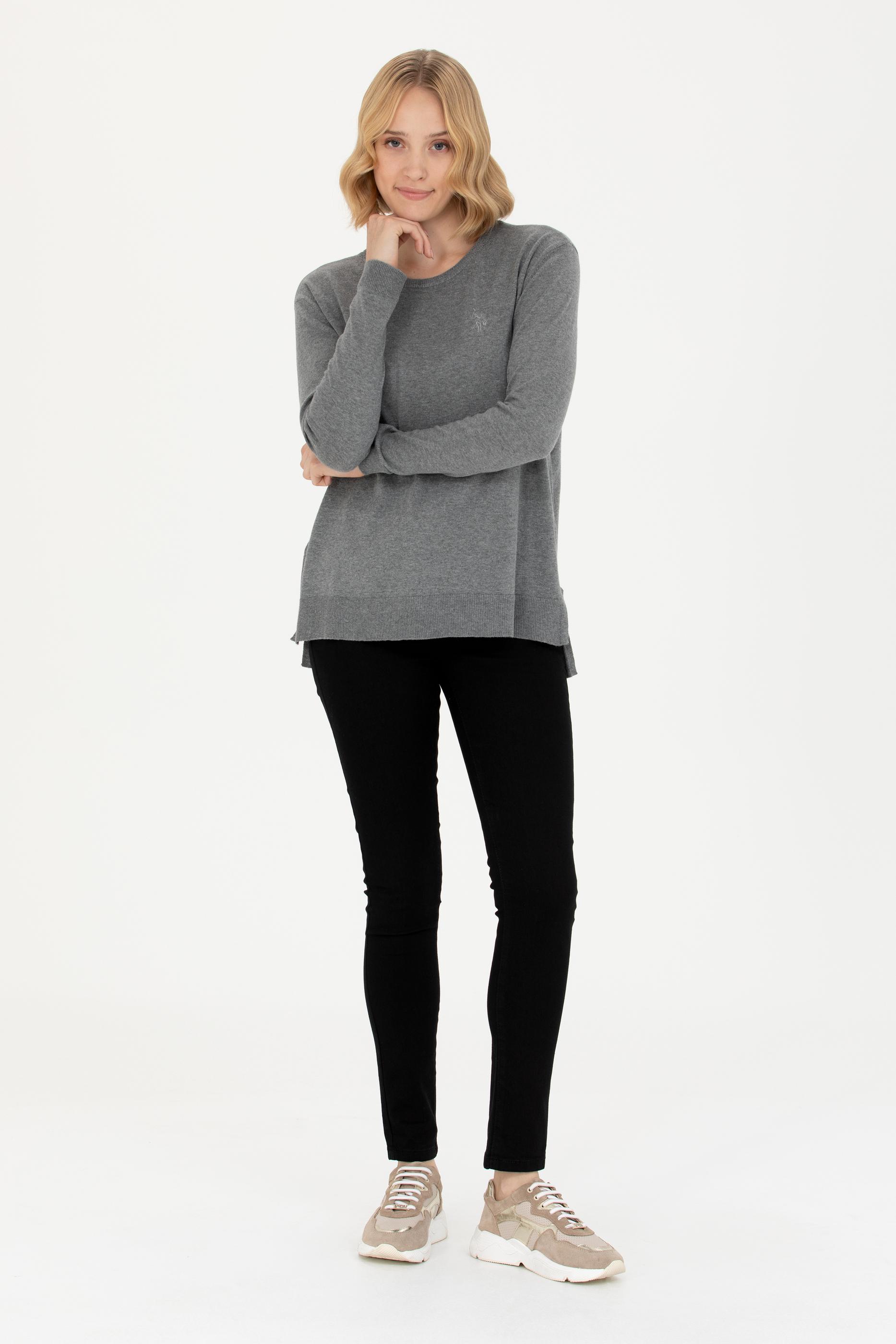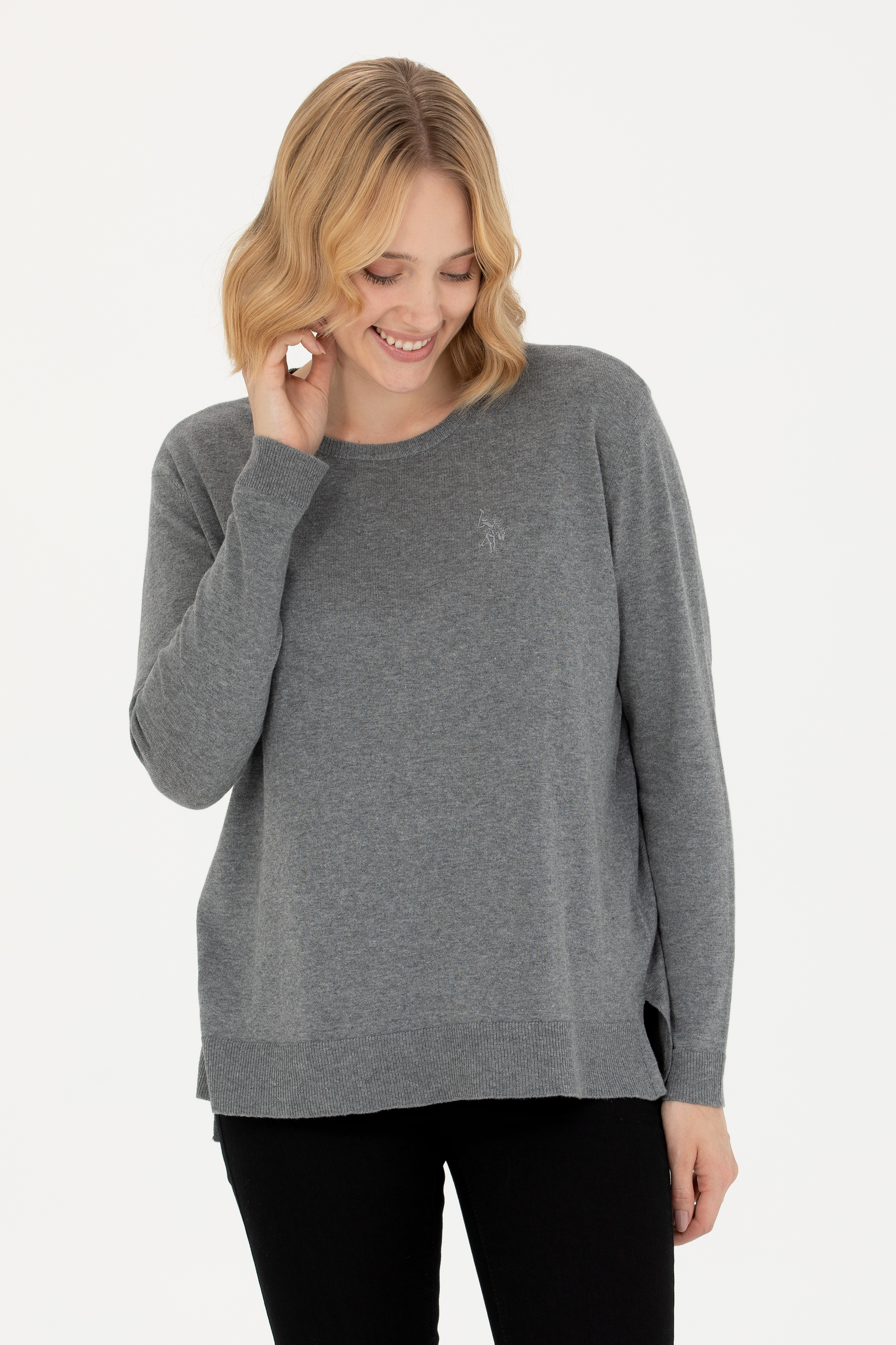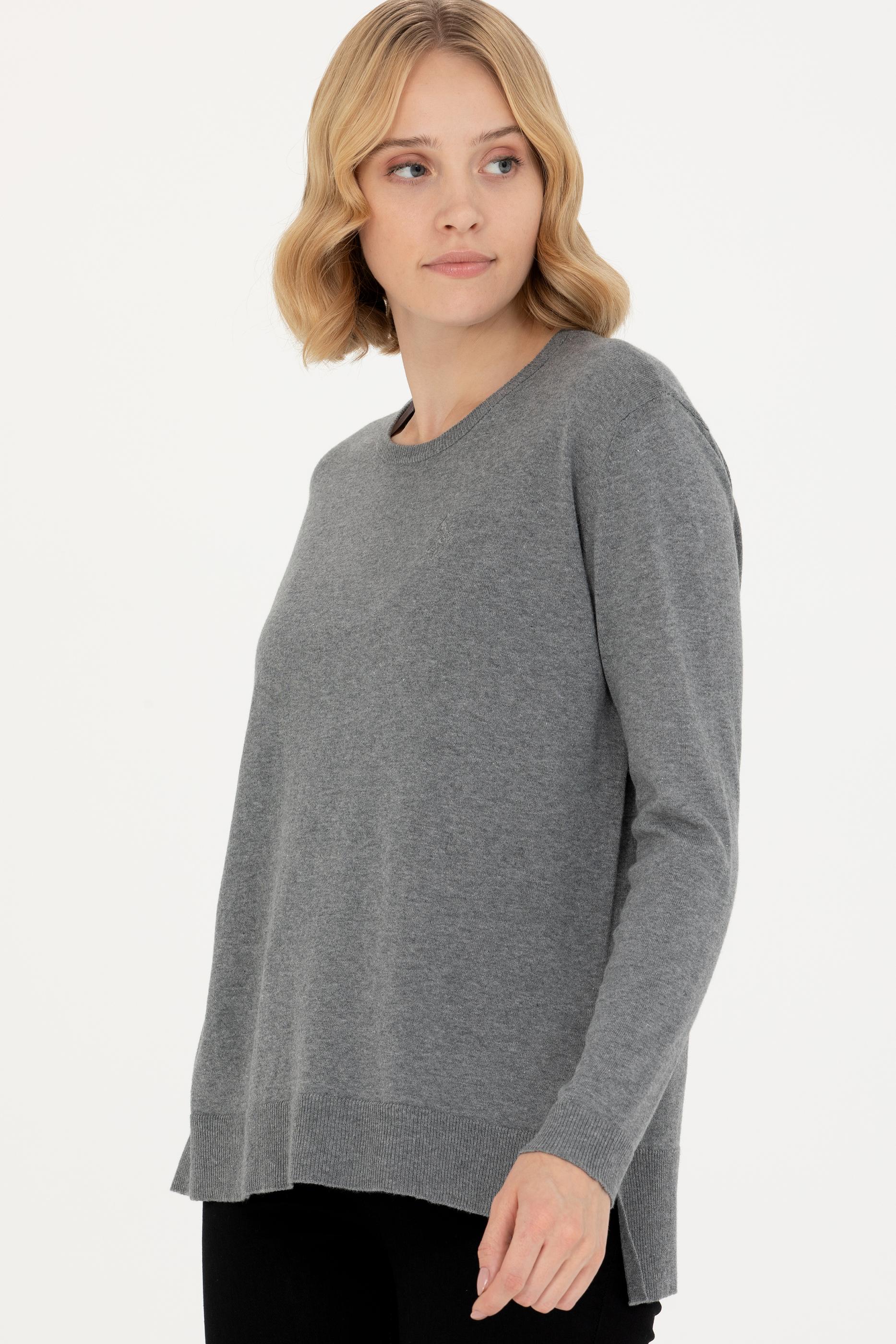 Kadın Gri Melanj Bisiklet Yaka Basic Kazak
