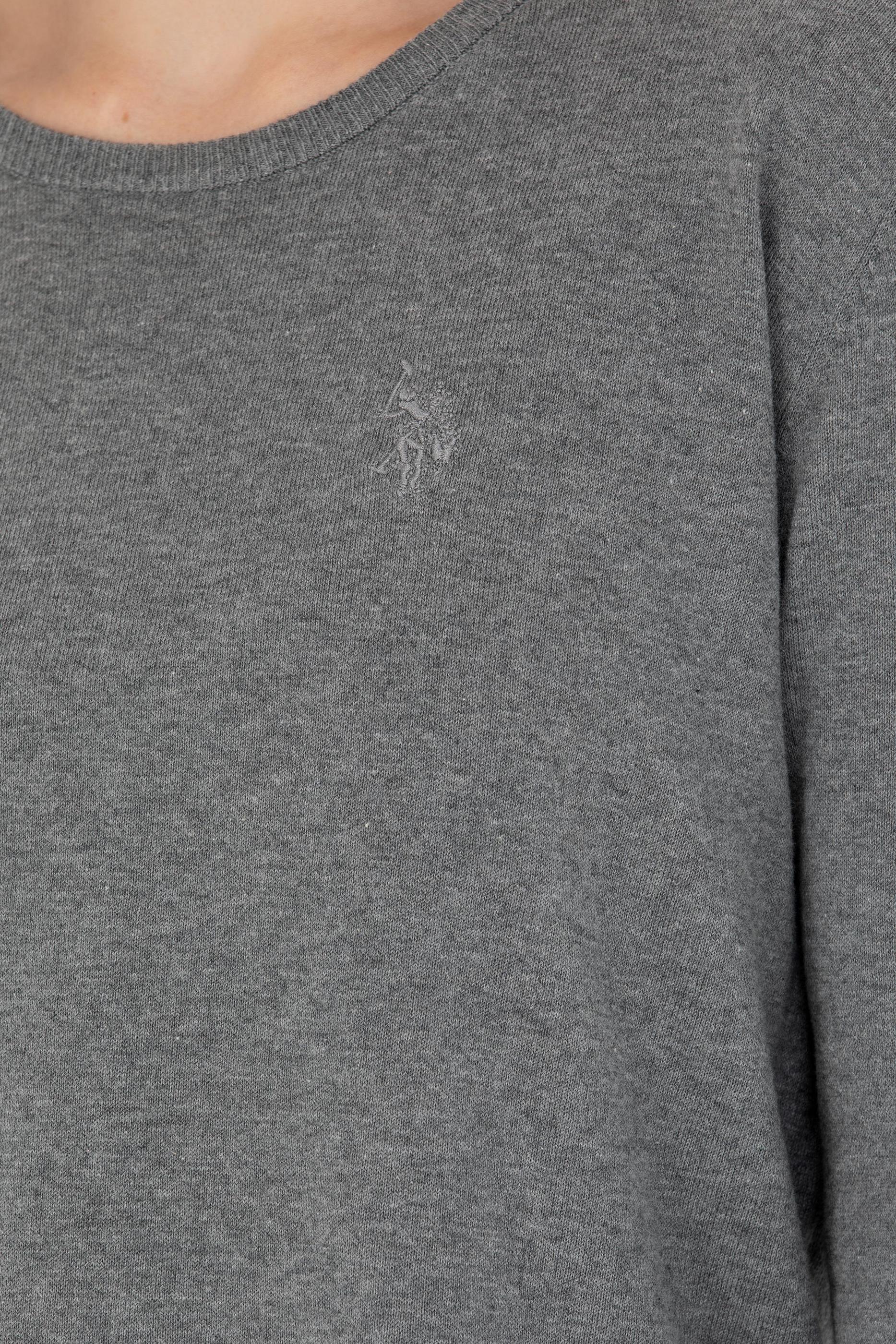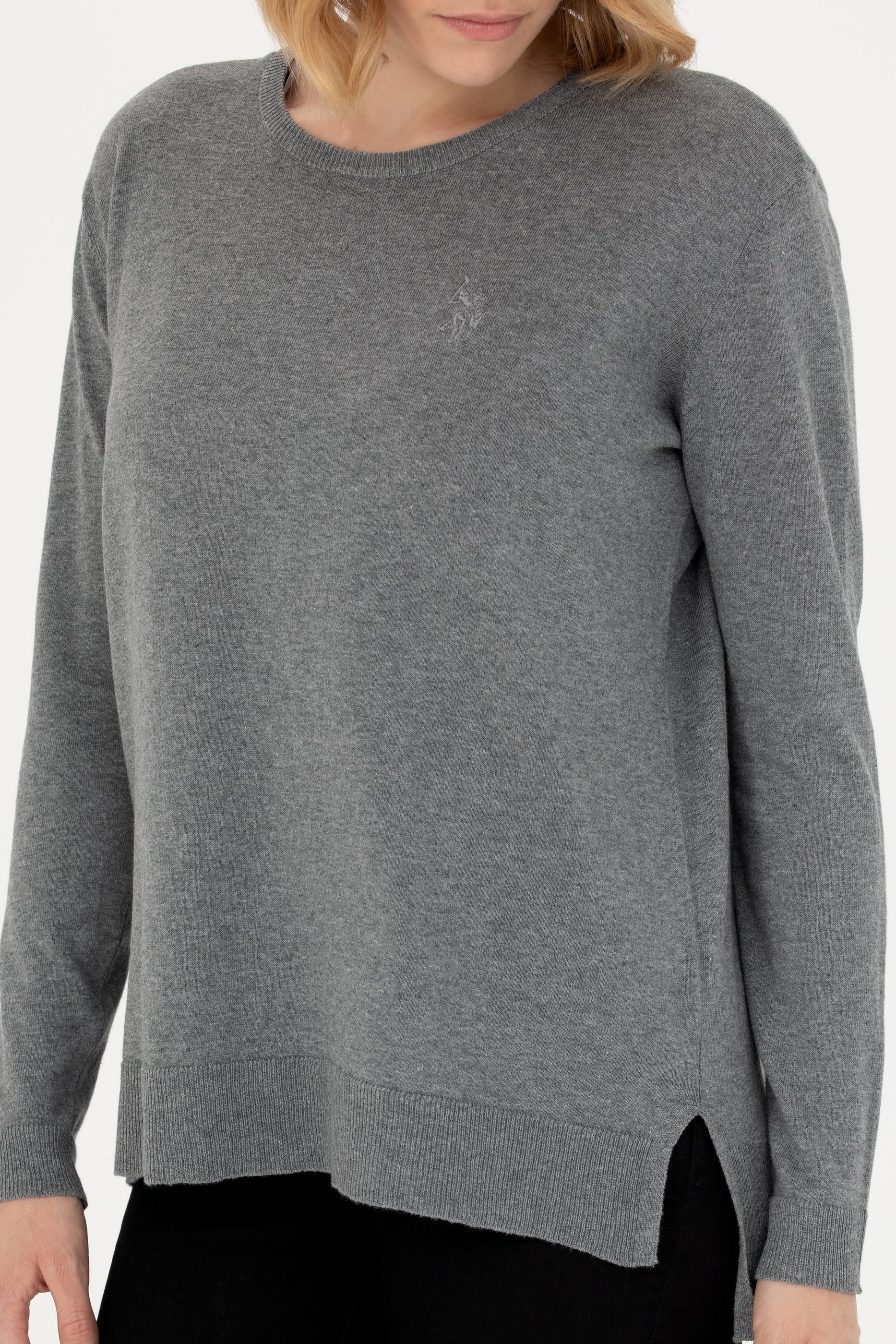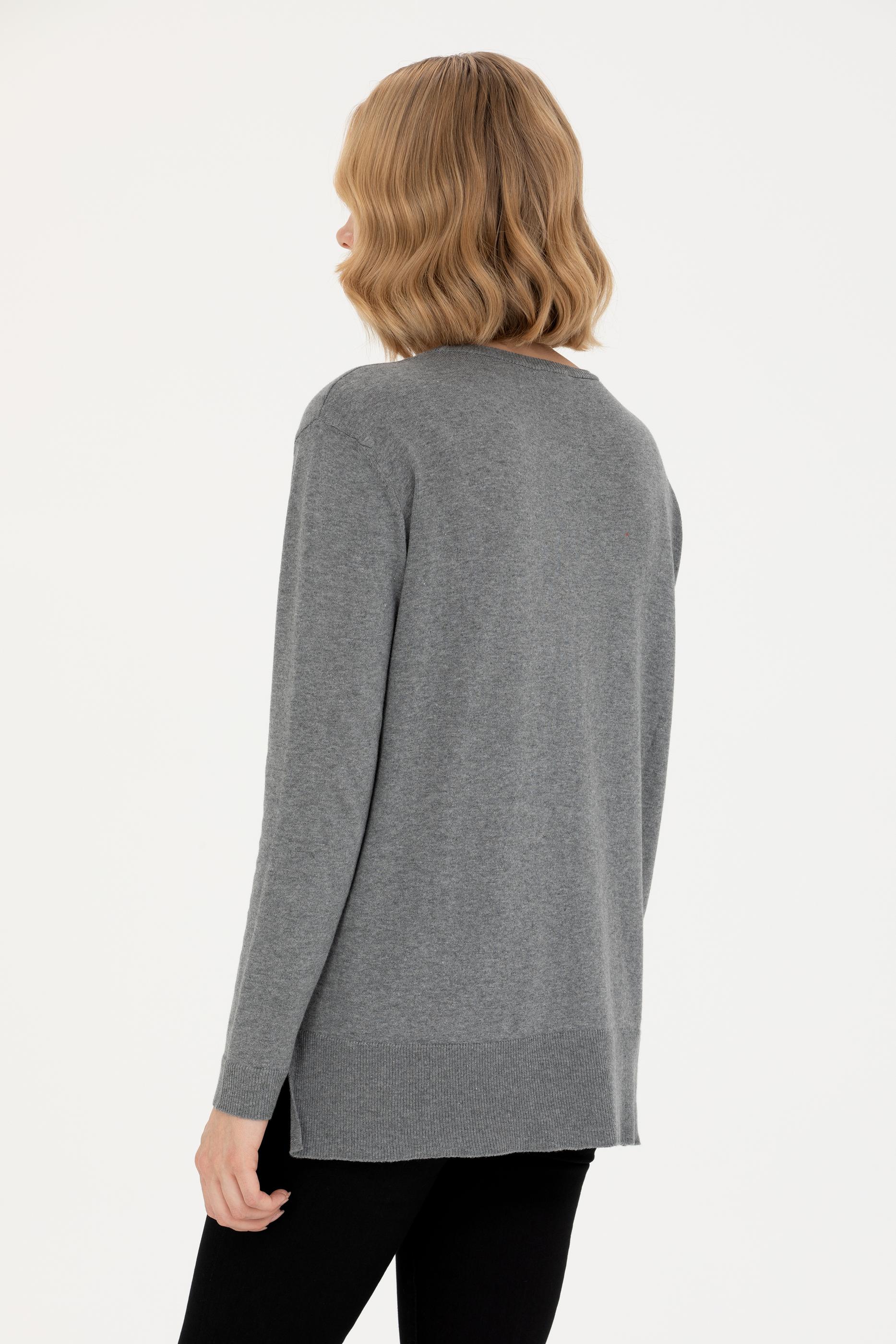 Kadın Gri Melanj Bisiklet Yaka Basic Kazak