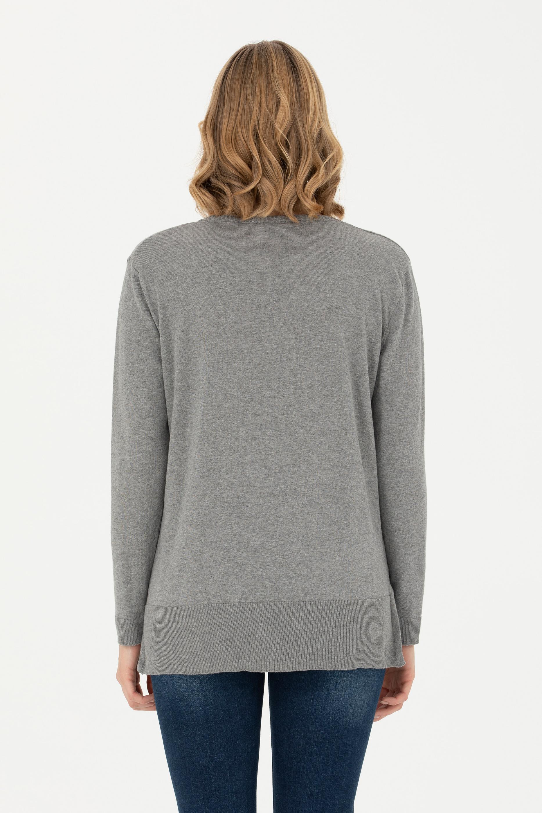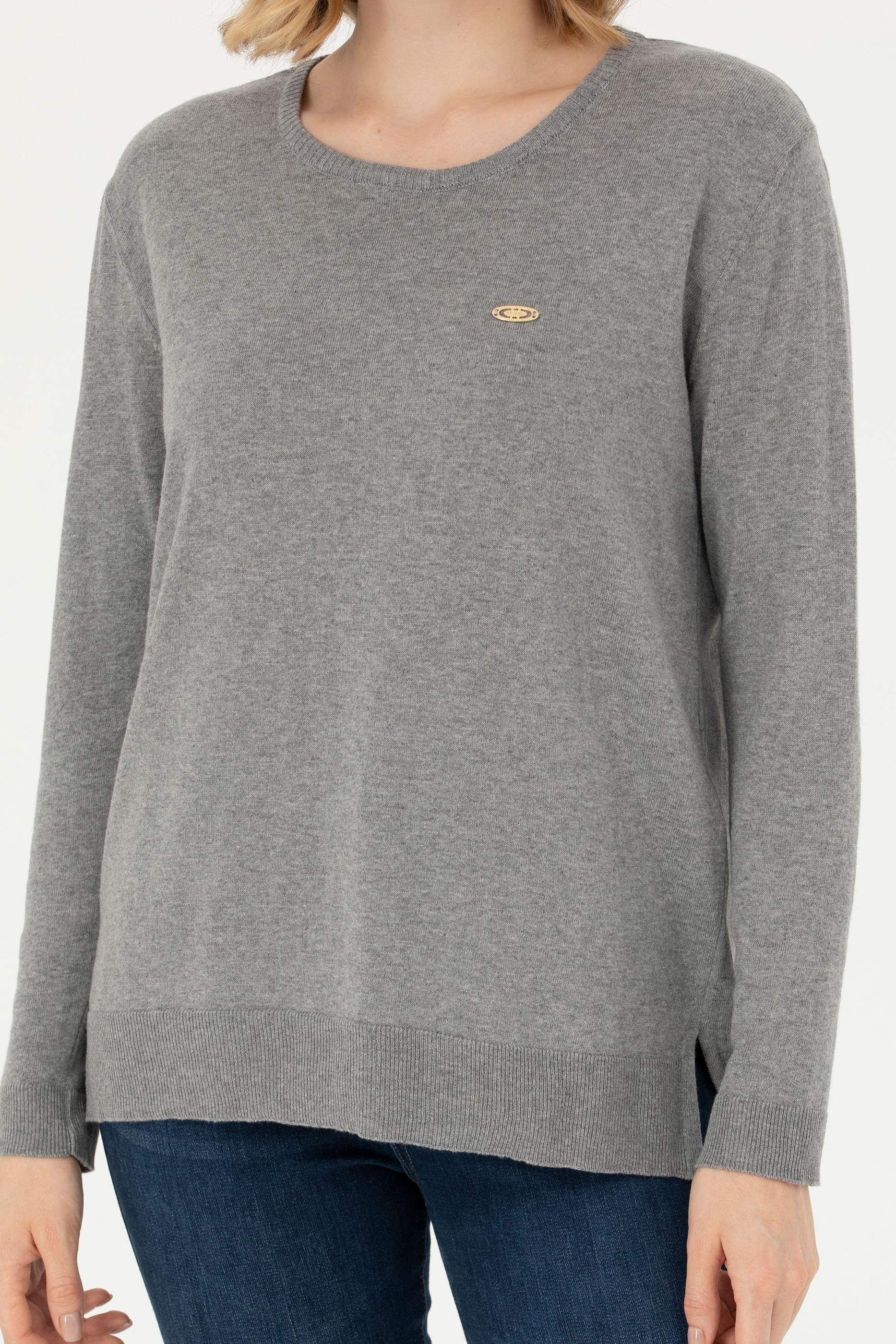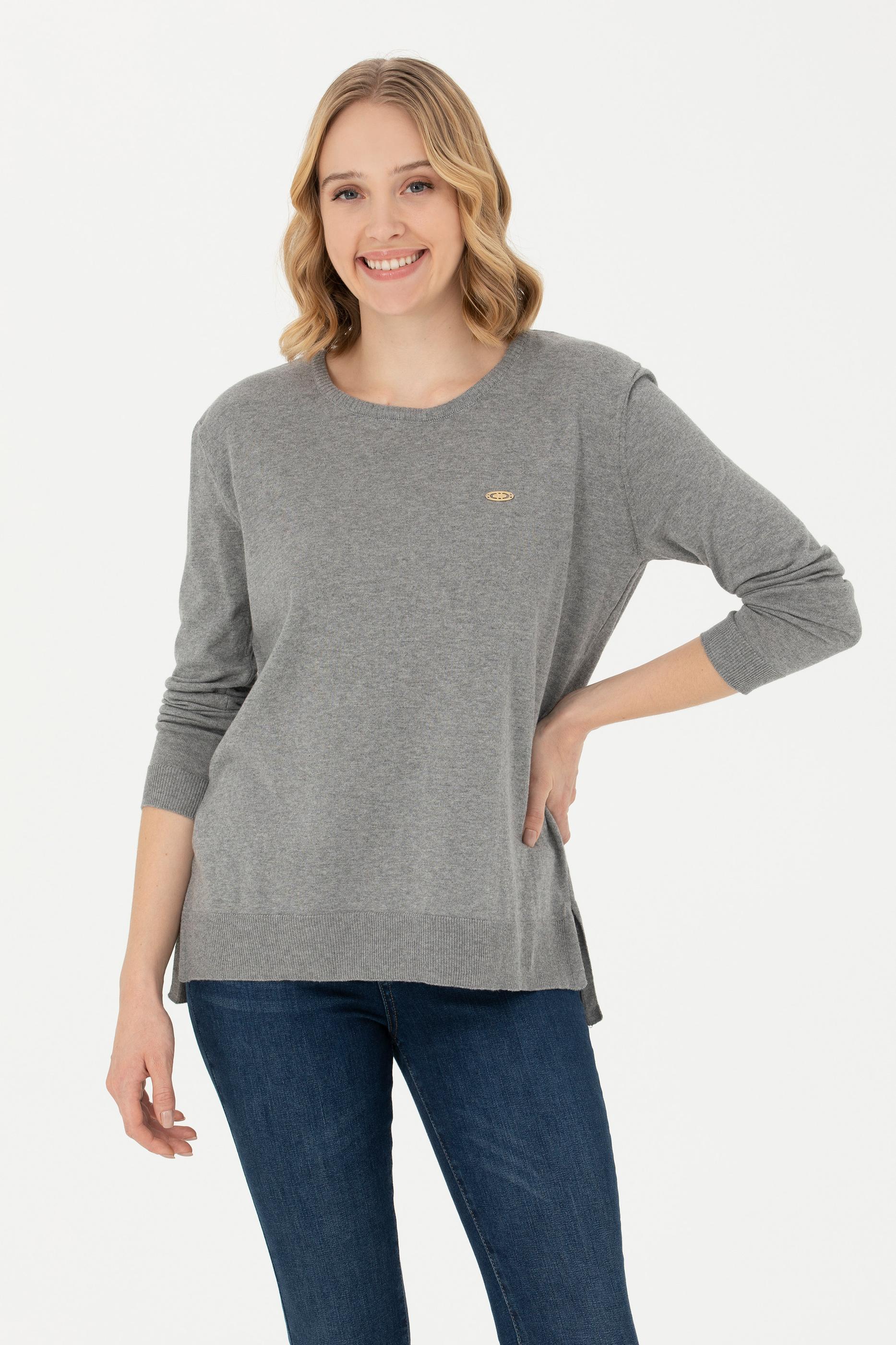 Kadın Gri Melanj Bisiklet Yaka Basic Kazak