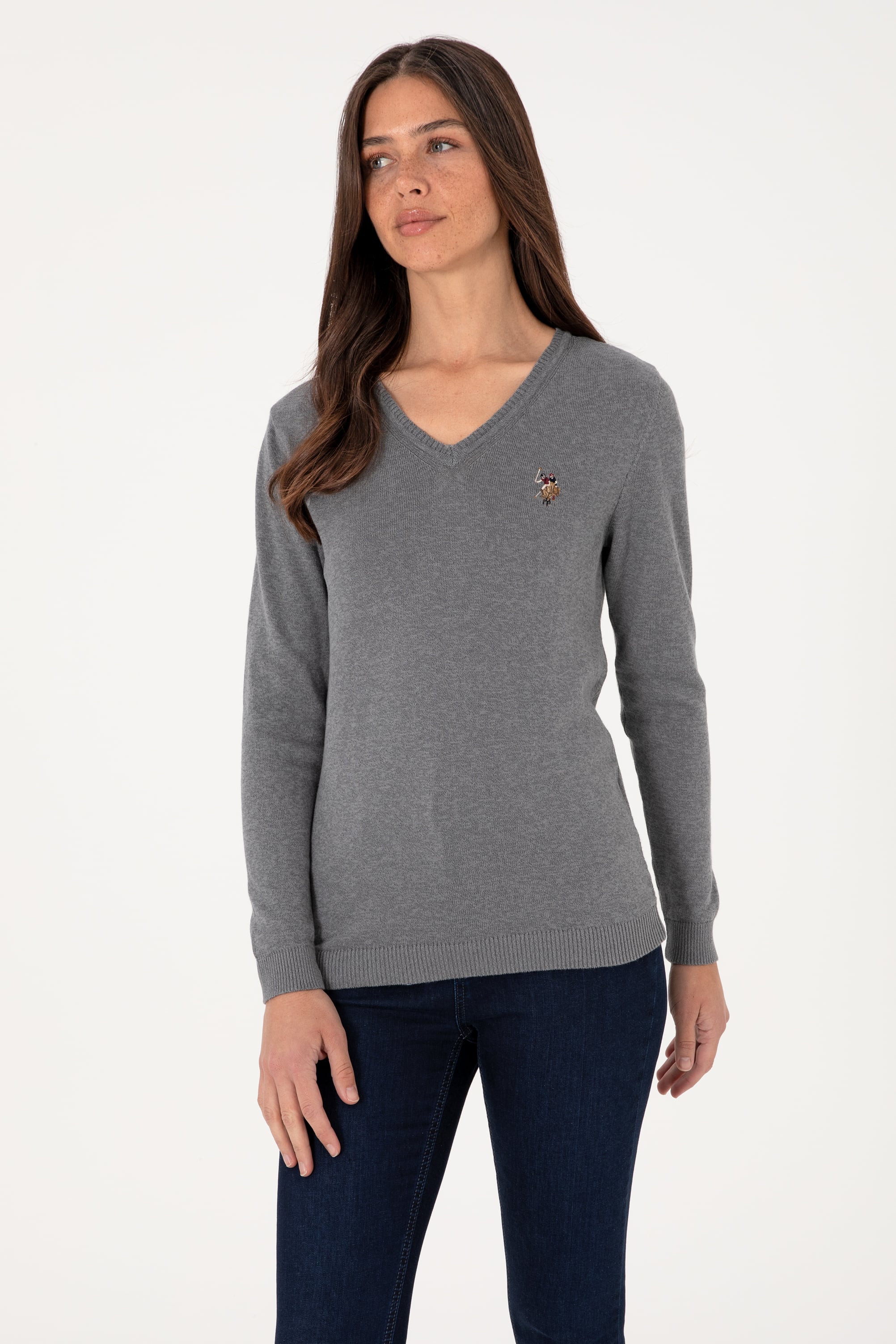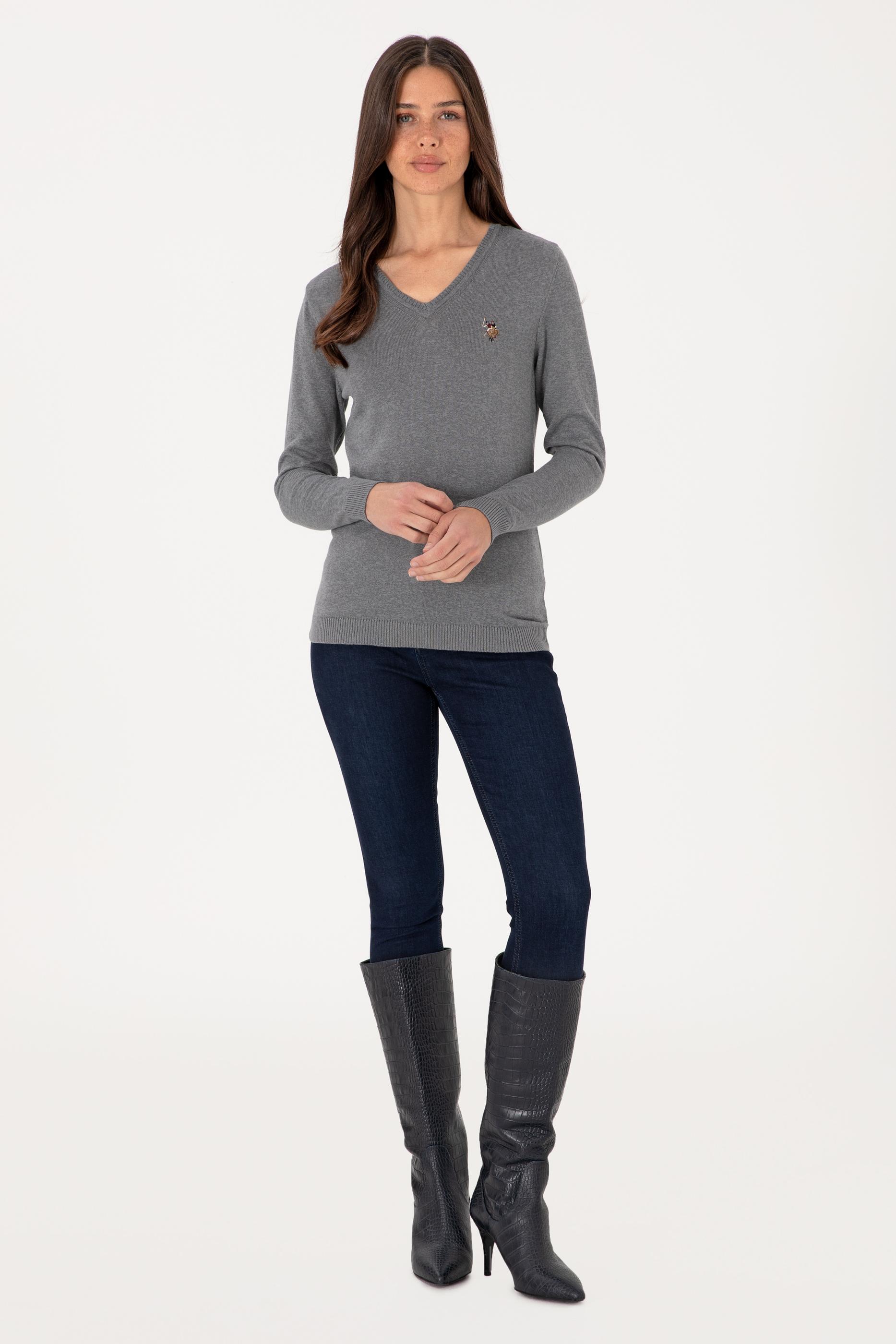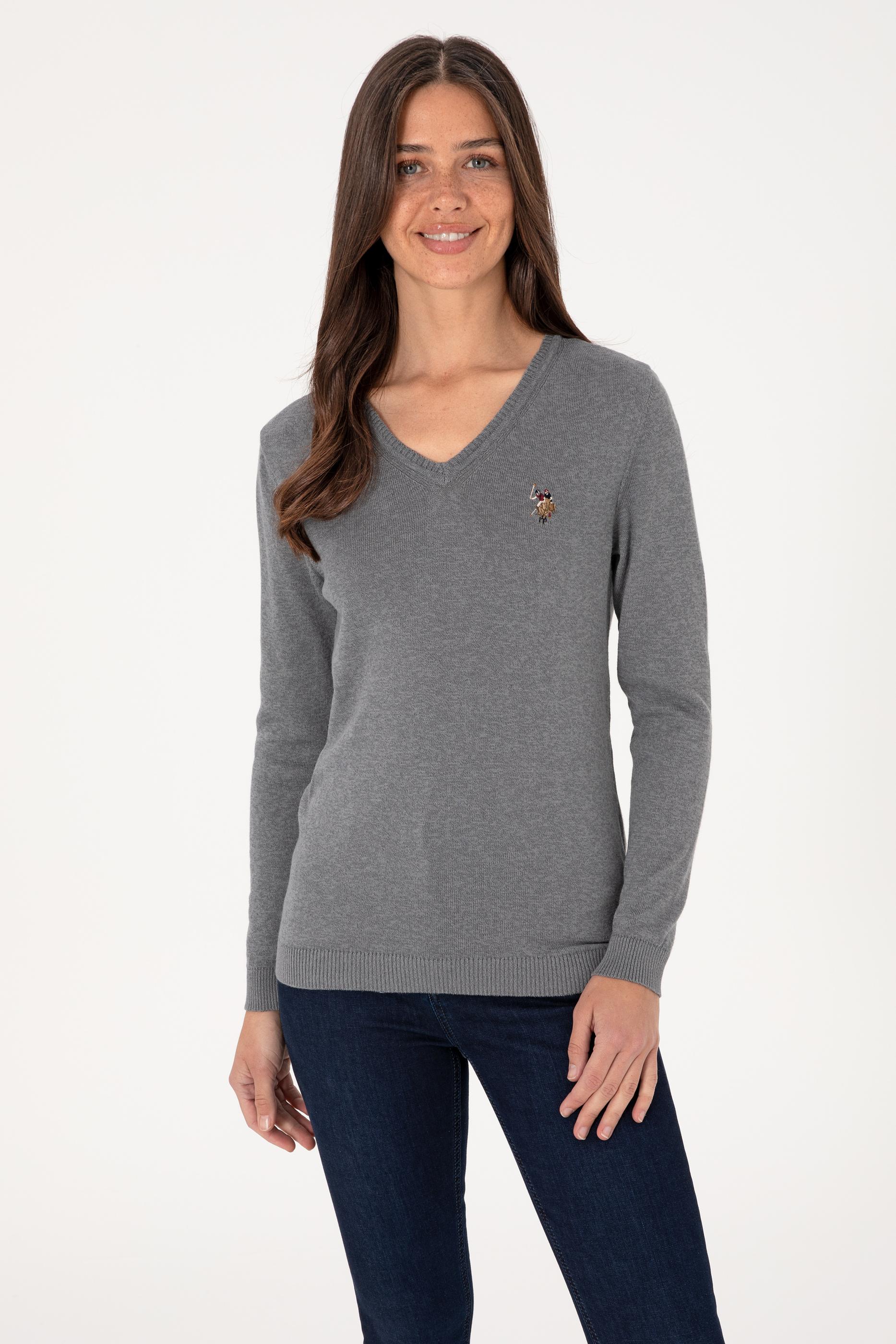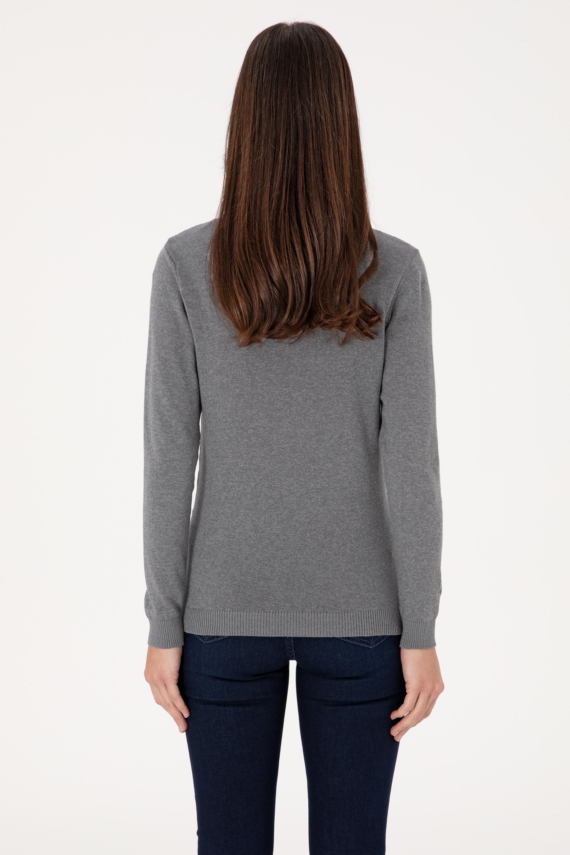Kadın Gri Melanj Basic Kazak