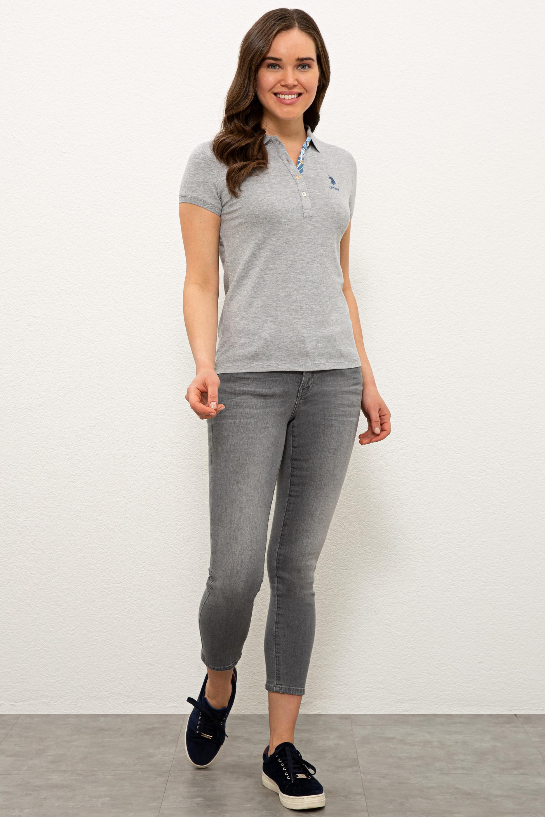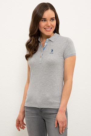 "name": "Kadın Gri Melanj Basic Polo Yaka Tişört",