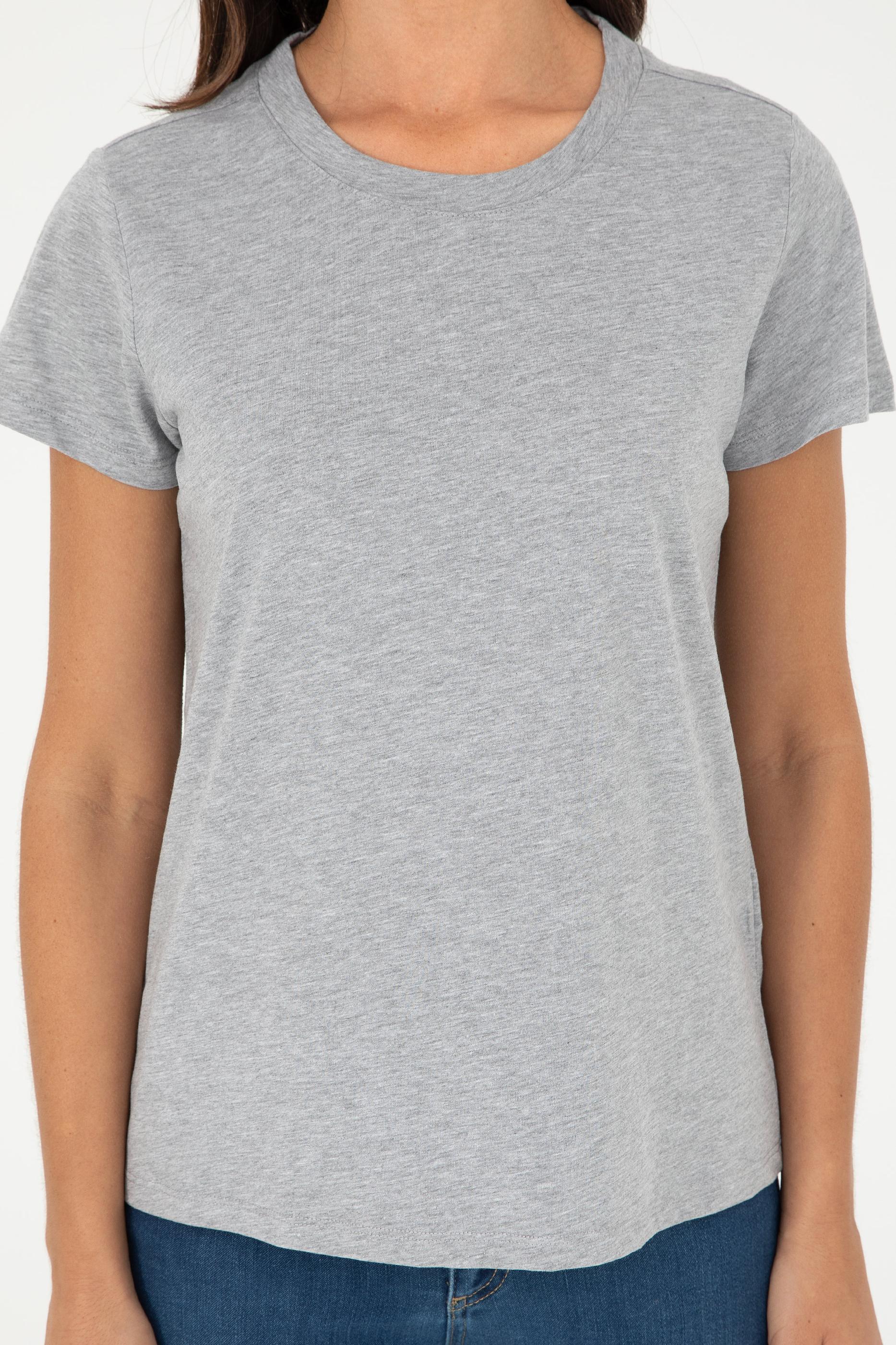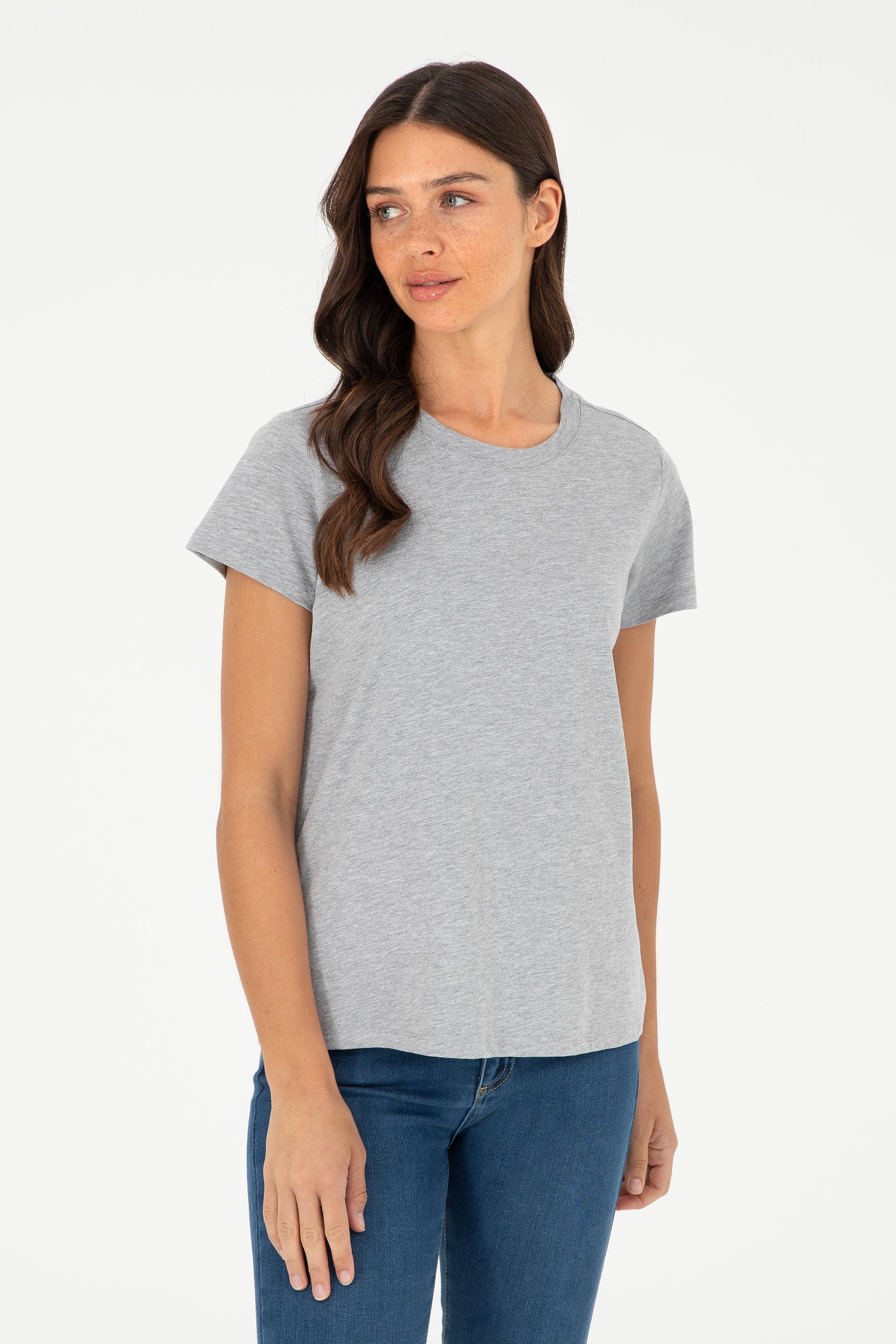 - Kadın Gri Melanj Bisiklet Yaka Basic Tişört